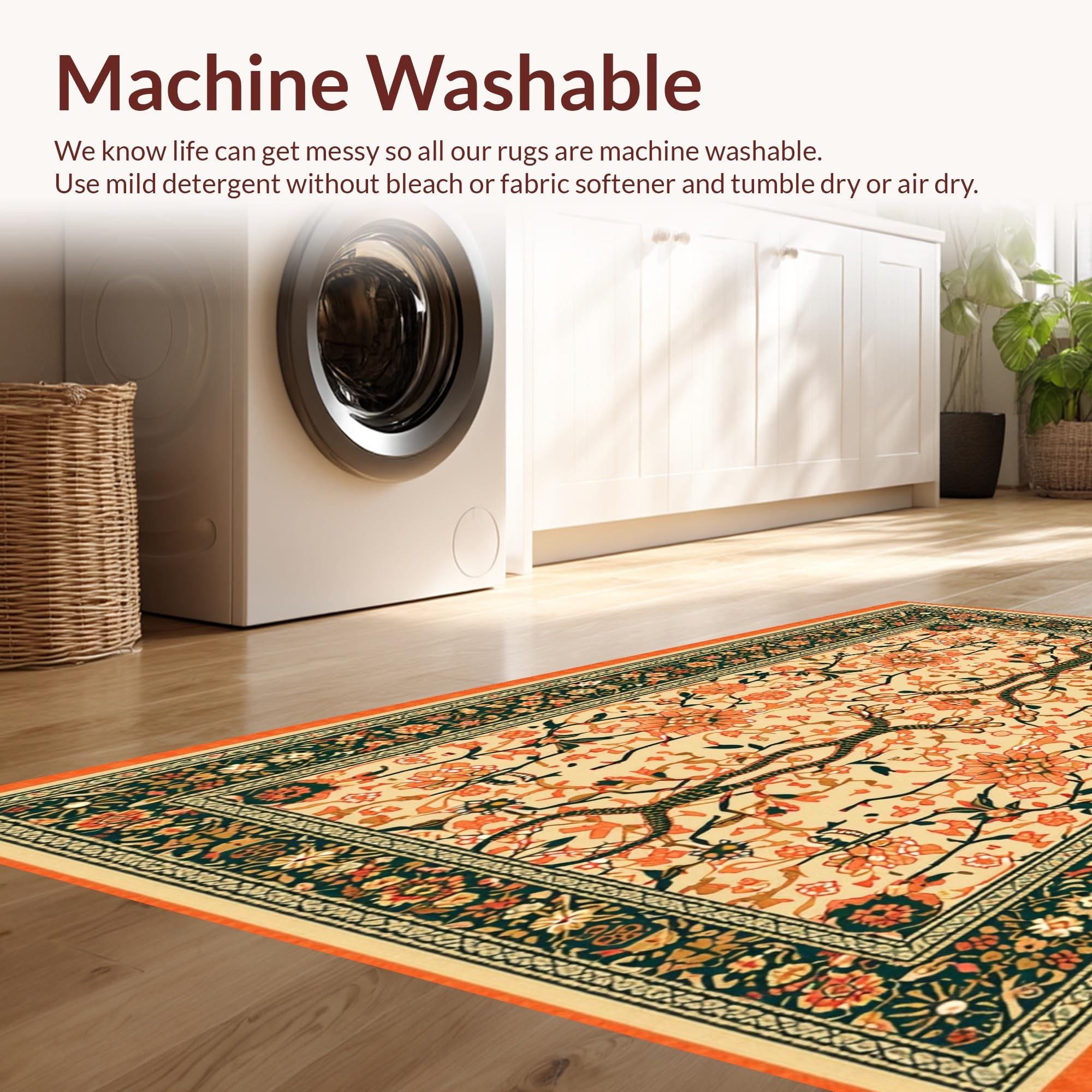 - Machine Washable: Our rugs can be easily thrown in the wash machine.
