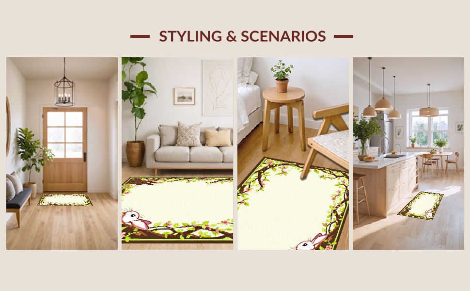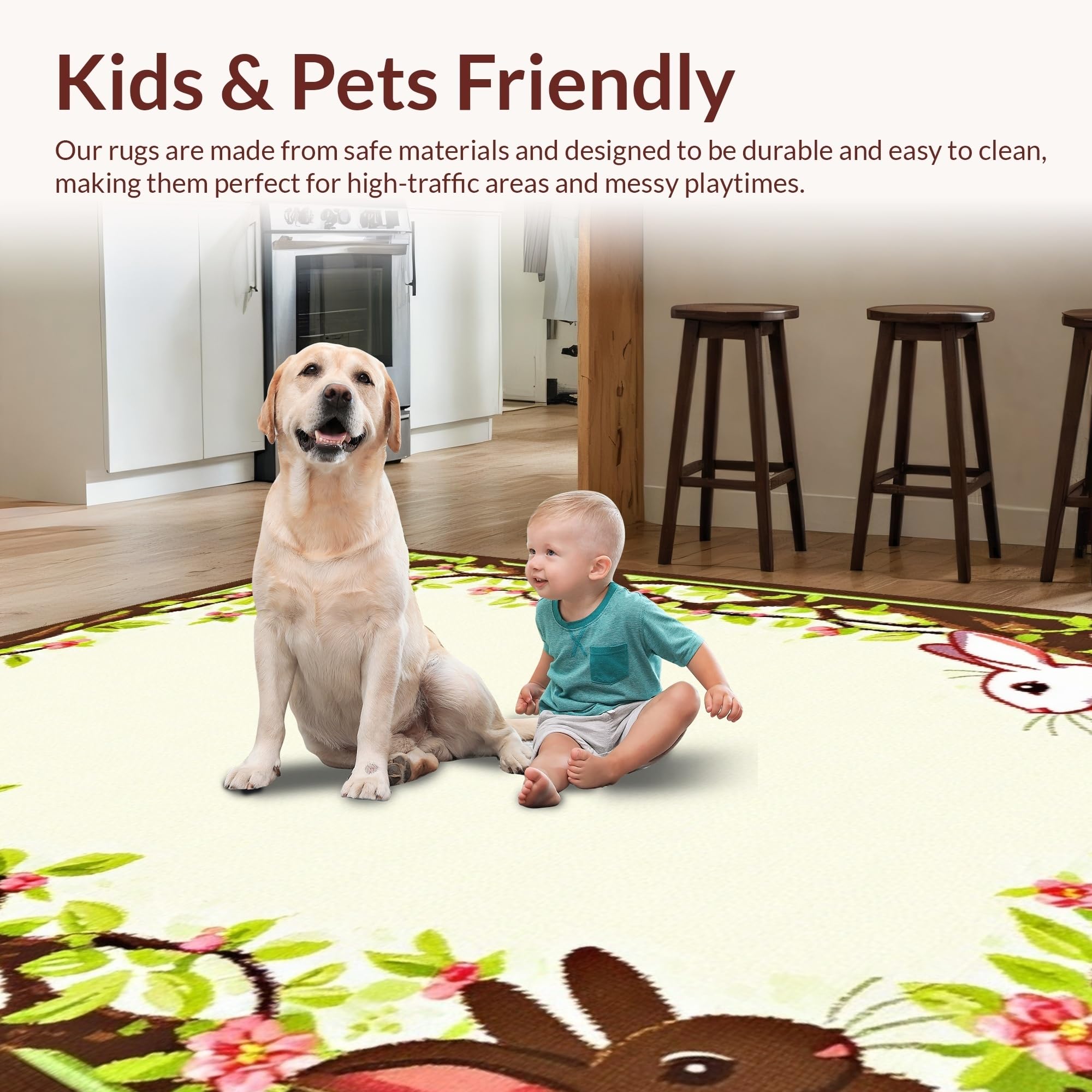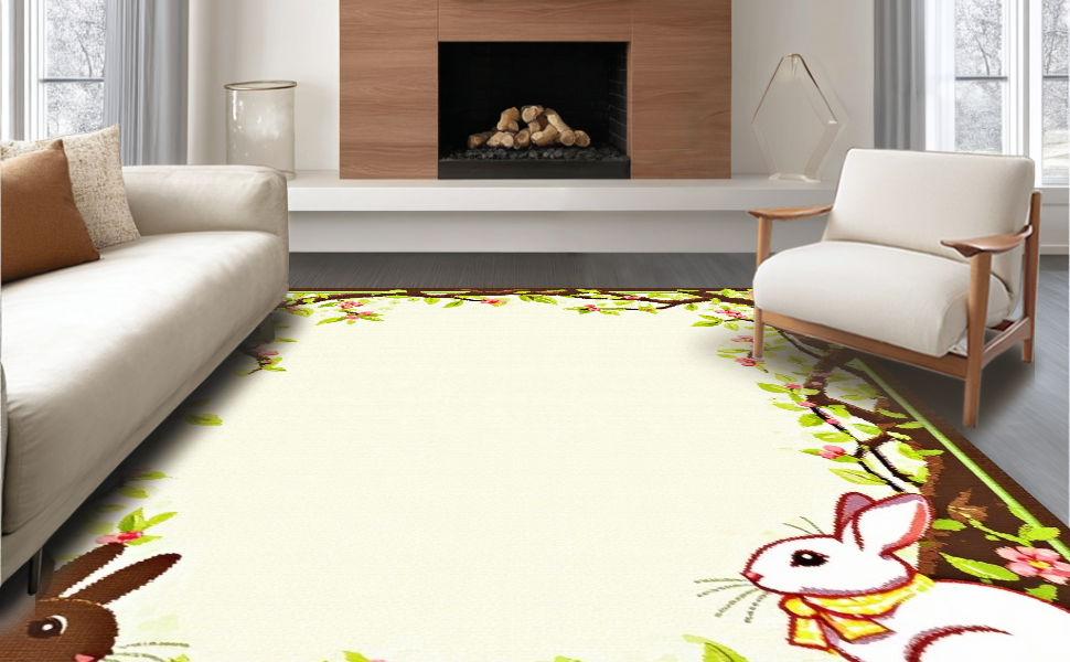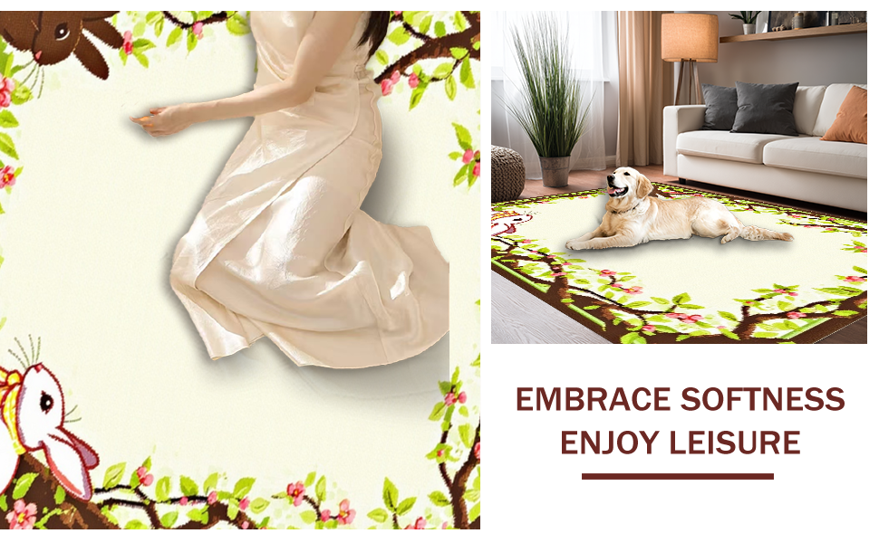 Ultra Soft Area Rug, Non Slip, Stain Resistant, Washable Area Rugs for Living Room, Bedroom, Colorful Flower Blossom Design(Ivory) Overview: