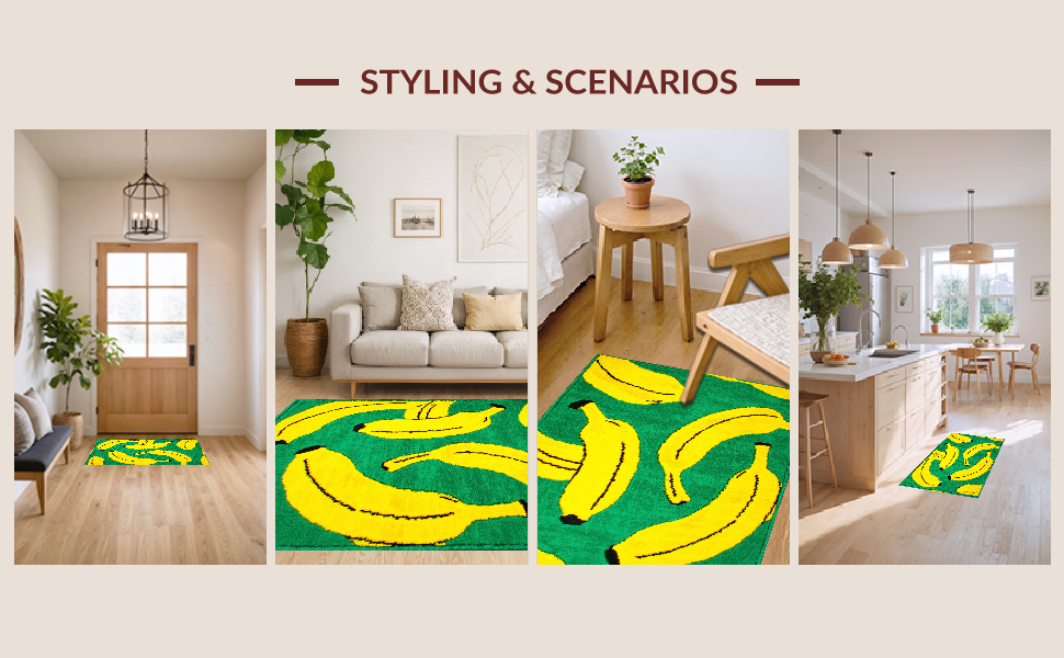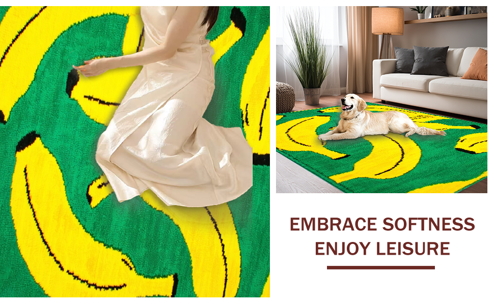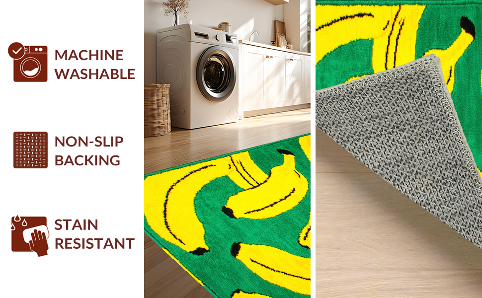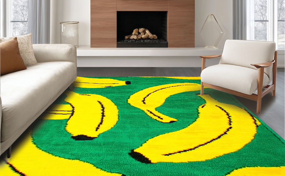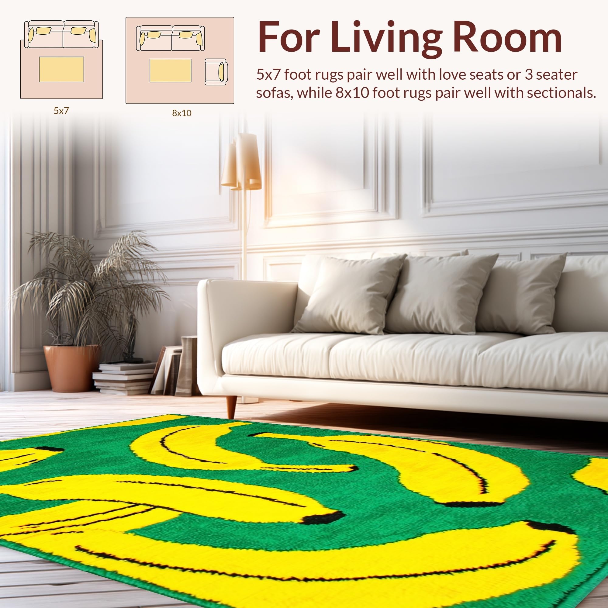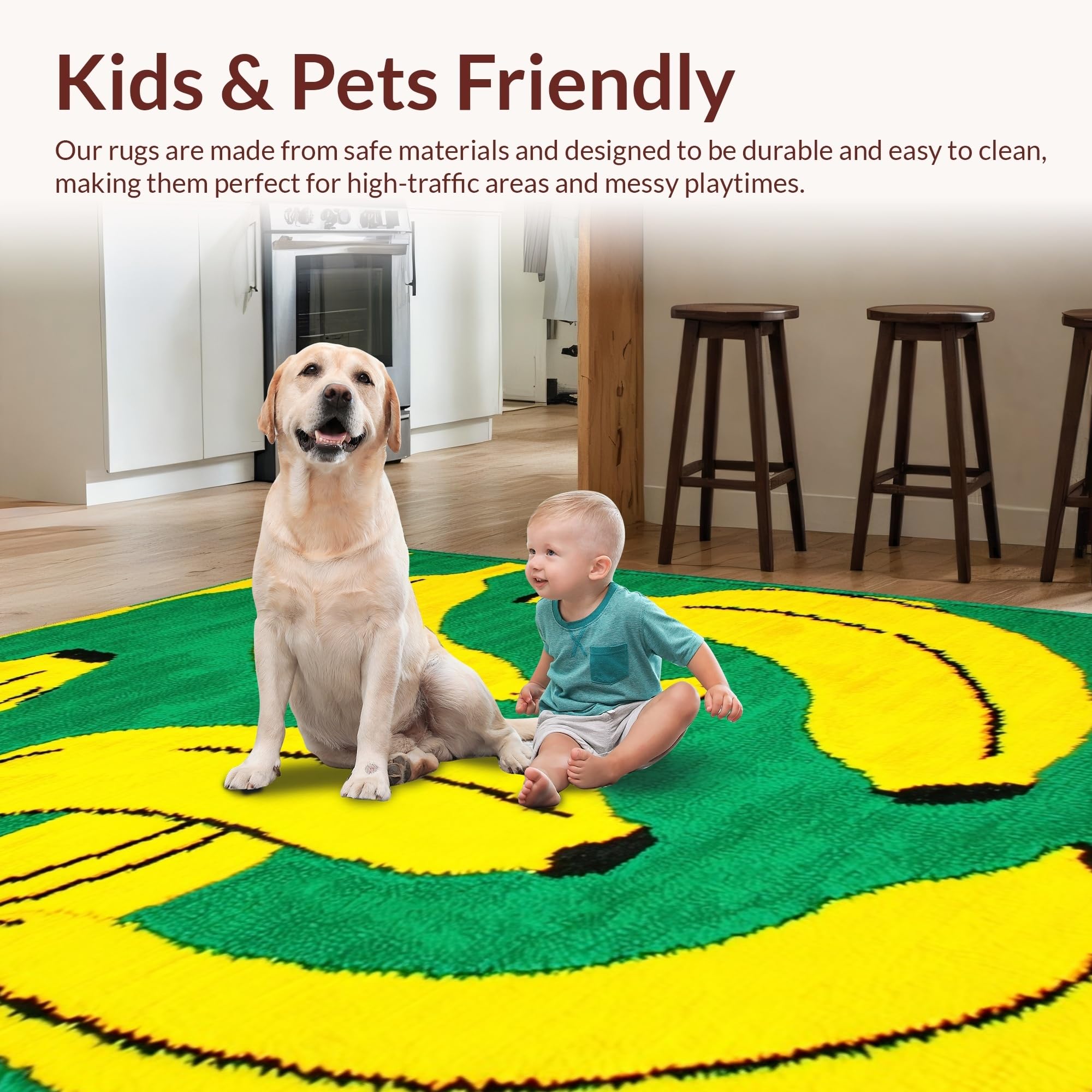 Ultra Soft Area Rug, Non Slip, Stain Resistant, Washable Area Rugs for Living Room, Bedroom, Colorful Fun Fruit Inspired Art(Green) Overview: