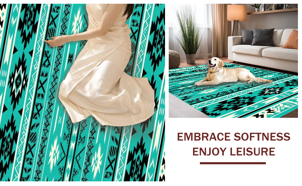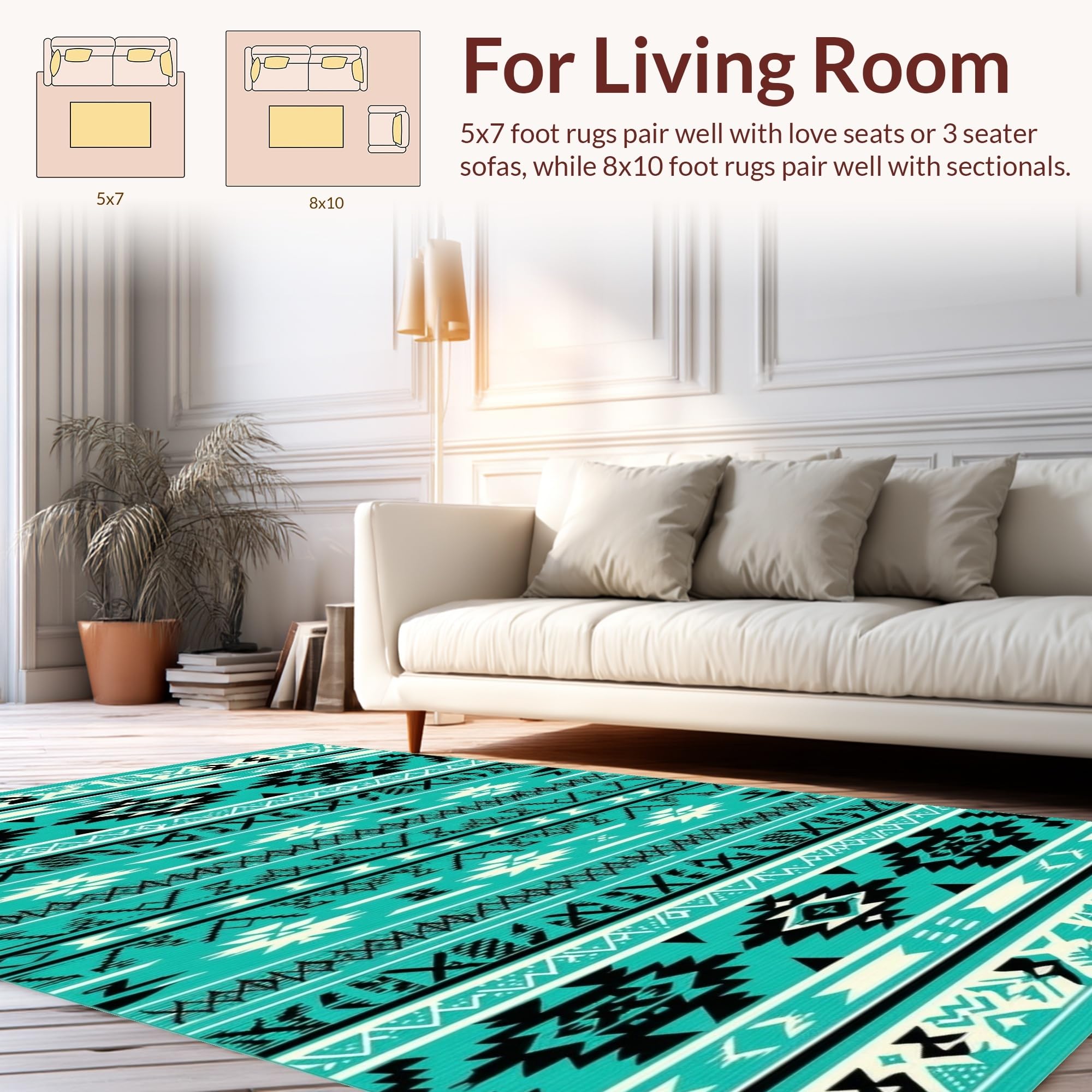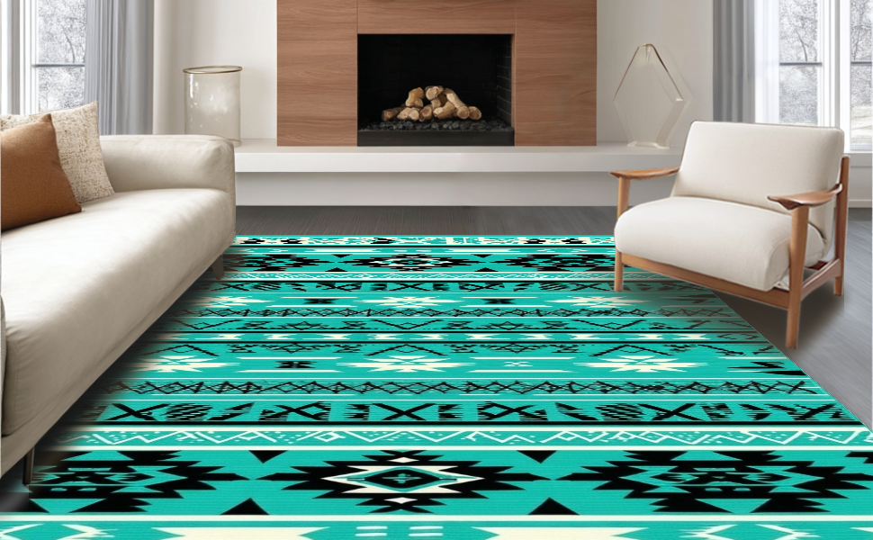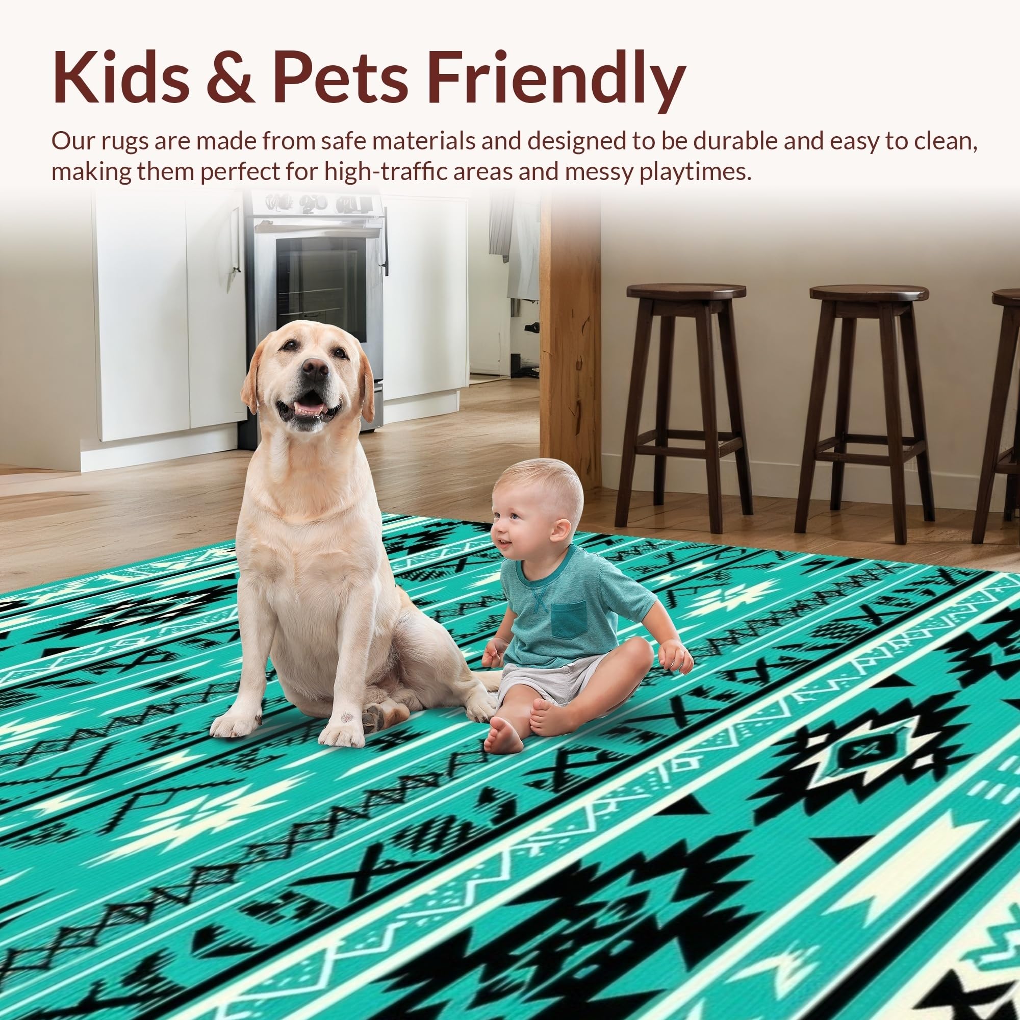Ultra Soft Area Rug, Non Slip, Stain Resistant, Washable Area Rugs for Living Room, Bedroom, Colorful Geometric Outdoor Aesthetic(Green) Overview: