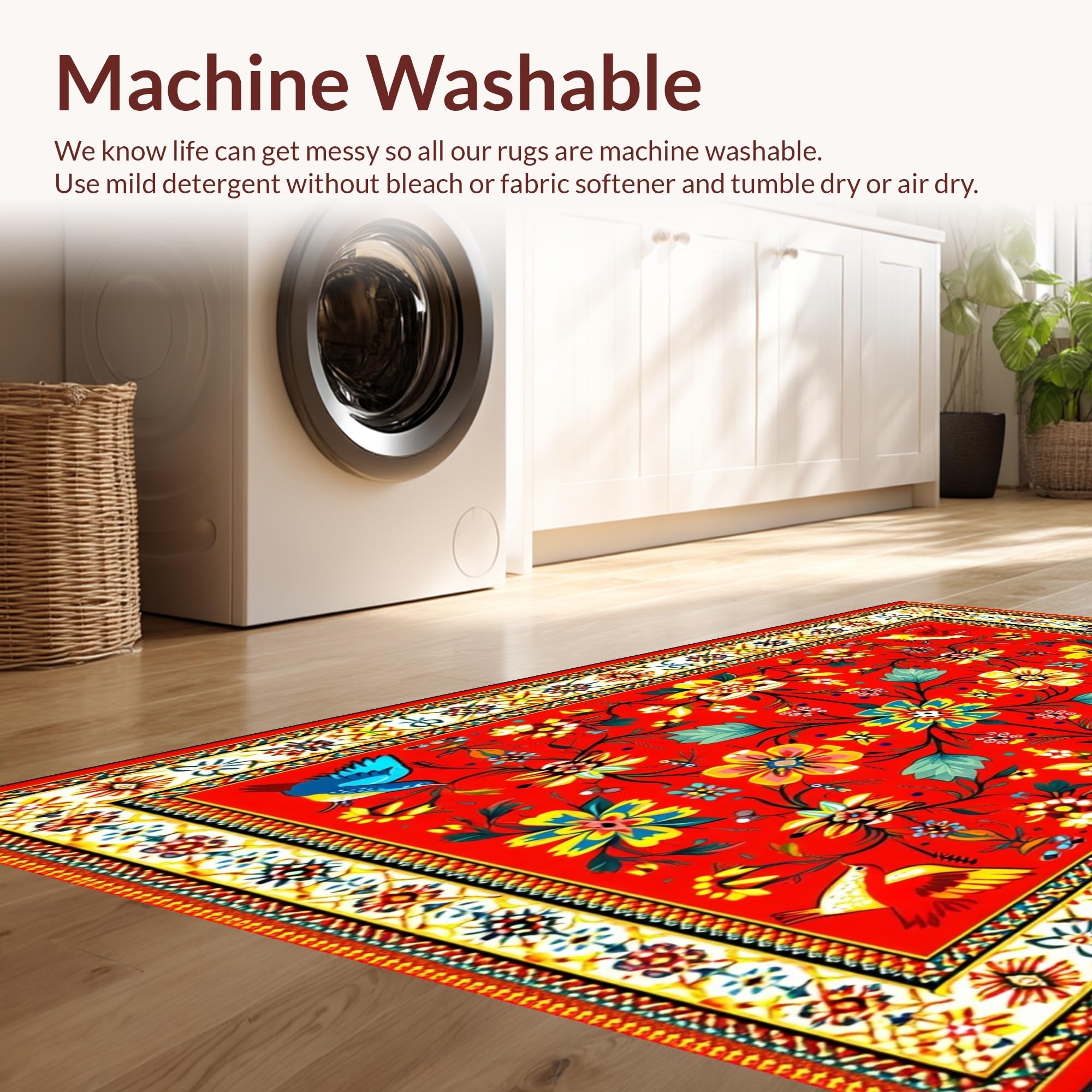 - Machine Washable: Our rugs can be easily thrown in the wash machine.