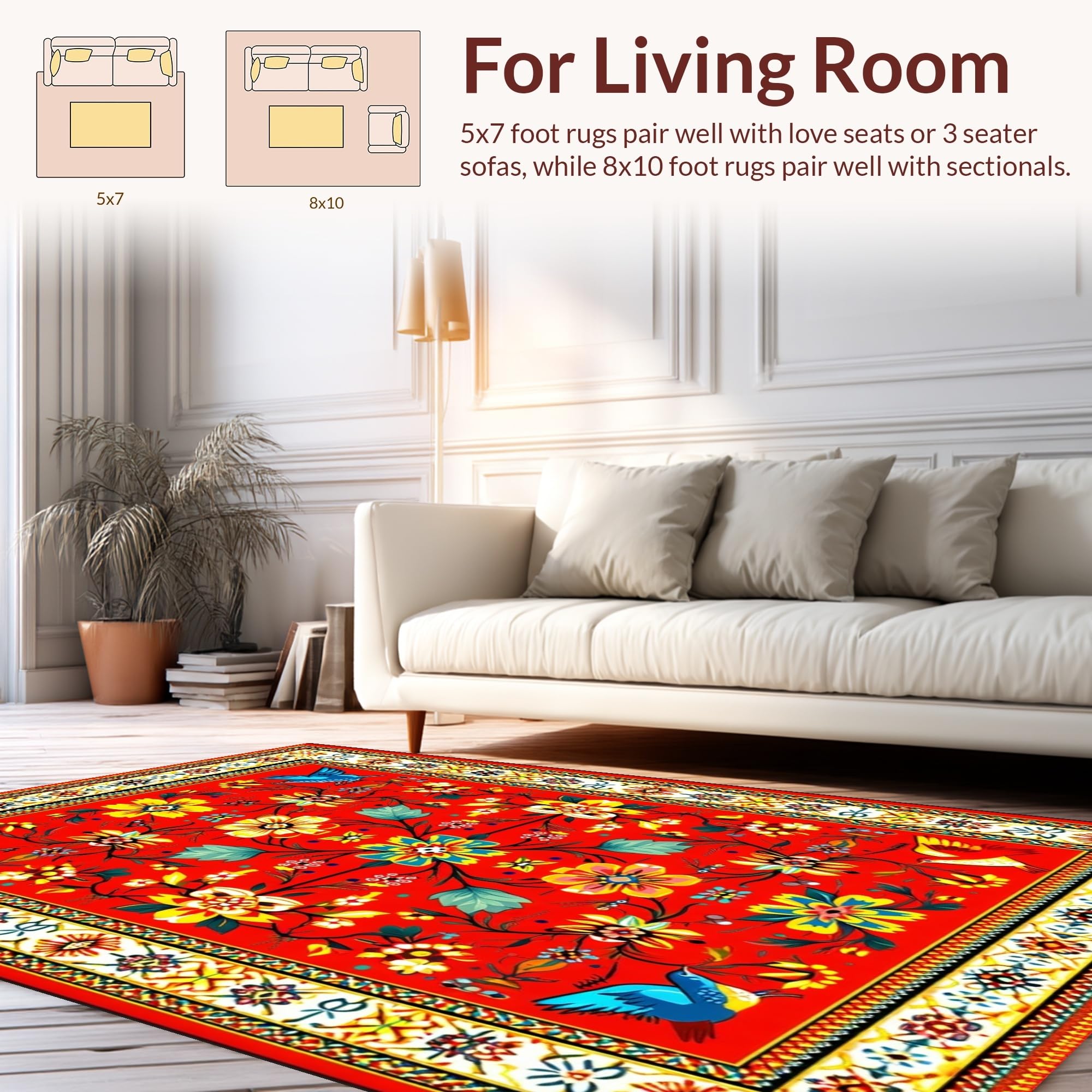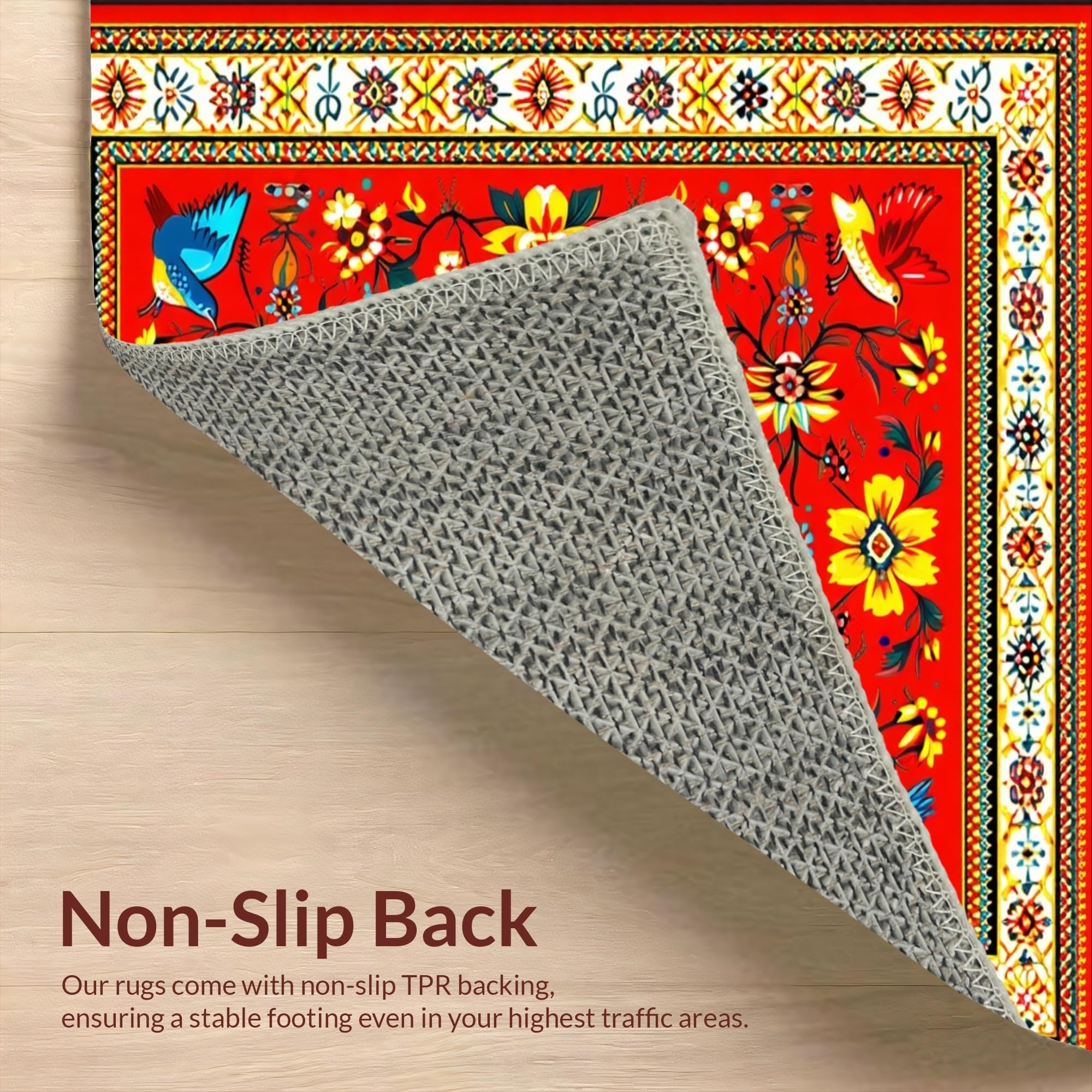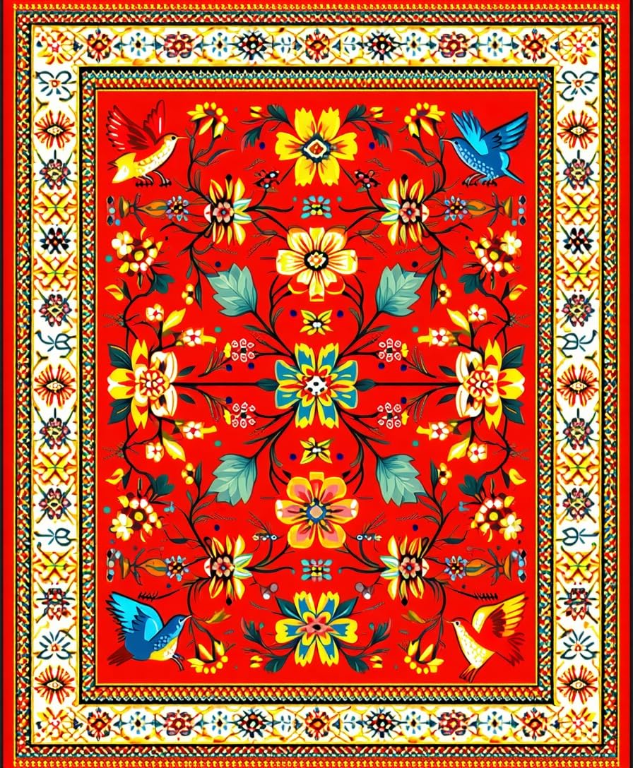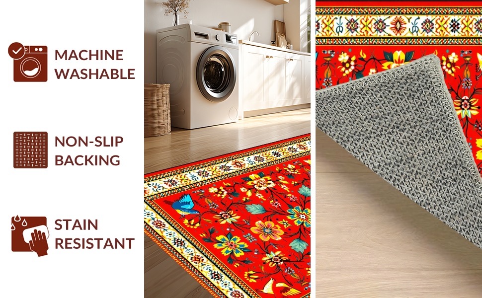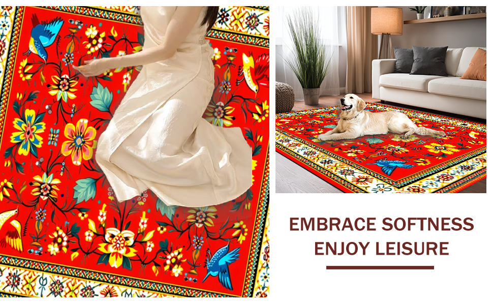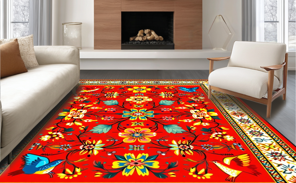 Ultra Soft Area Rug, Non Slip, Stain Resistant, Washable Area Rugs for Living Room, Bedroom, Colorful Handcrafted Traditional Aesthetics(Red) Overview: