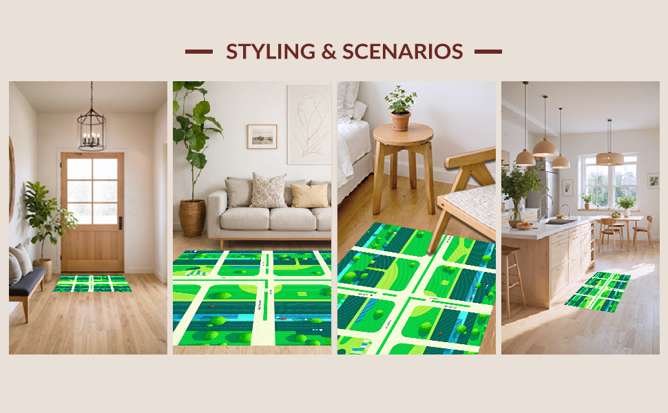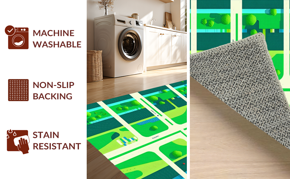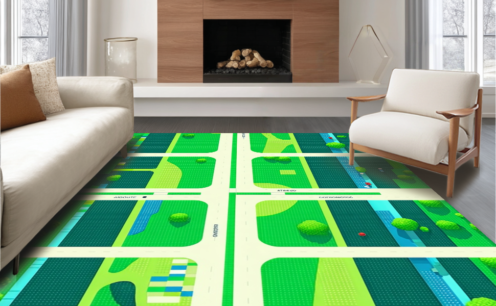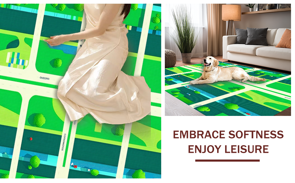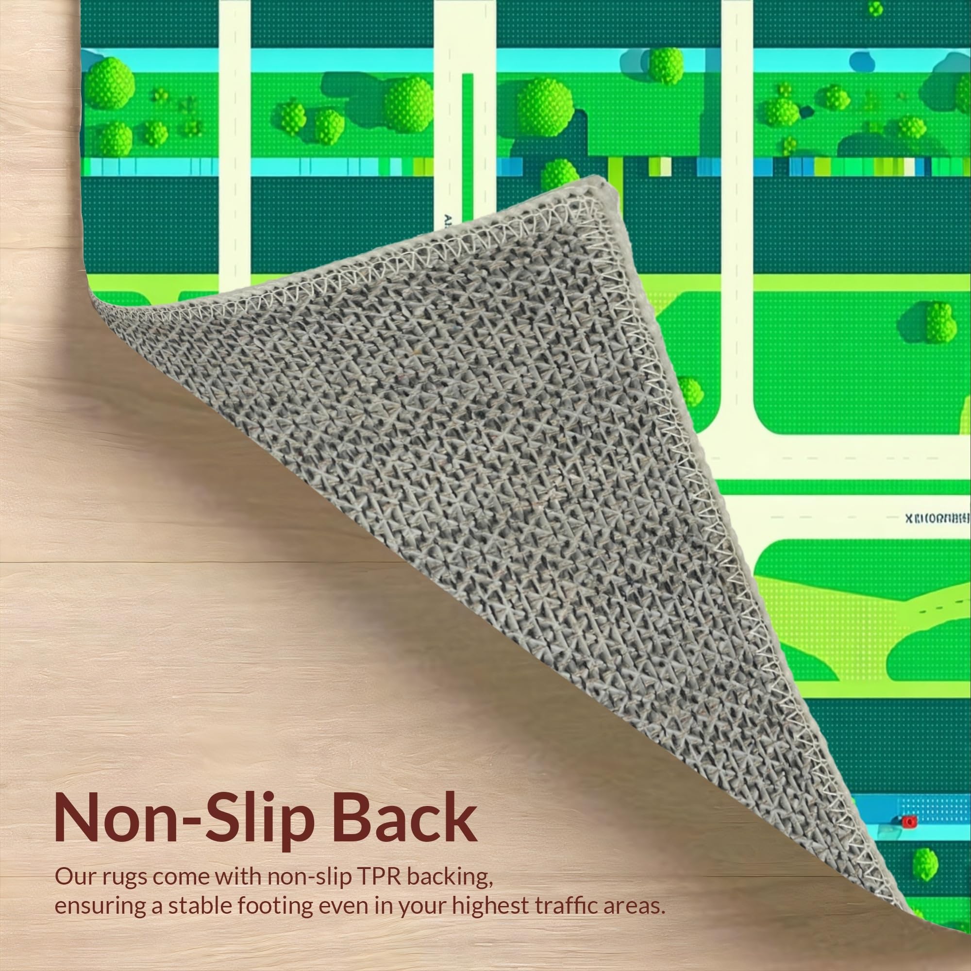 Ultra Soft Area Rug, Non Slip, Stain Resistant, Washable Area Rugs for Living Room, Bedroom, Colorful Interactive City Grid Pattern(Green) Overview: