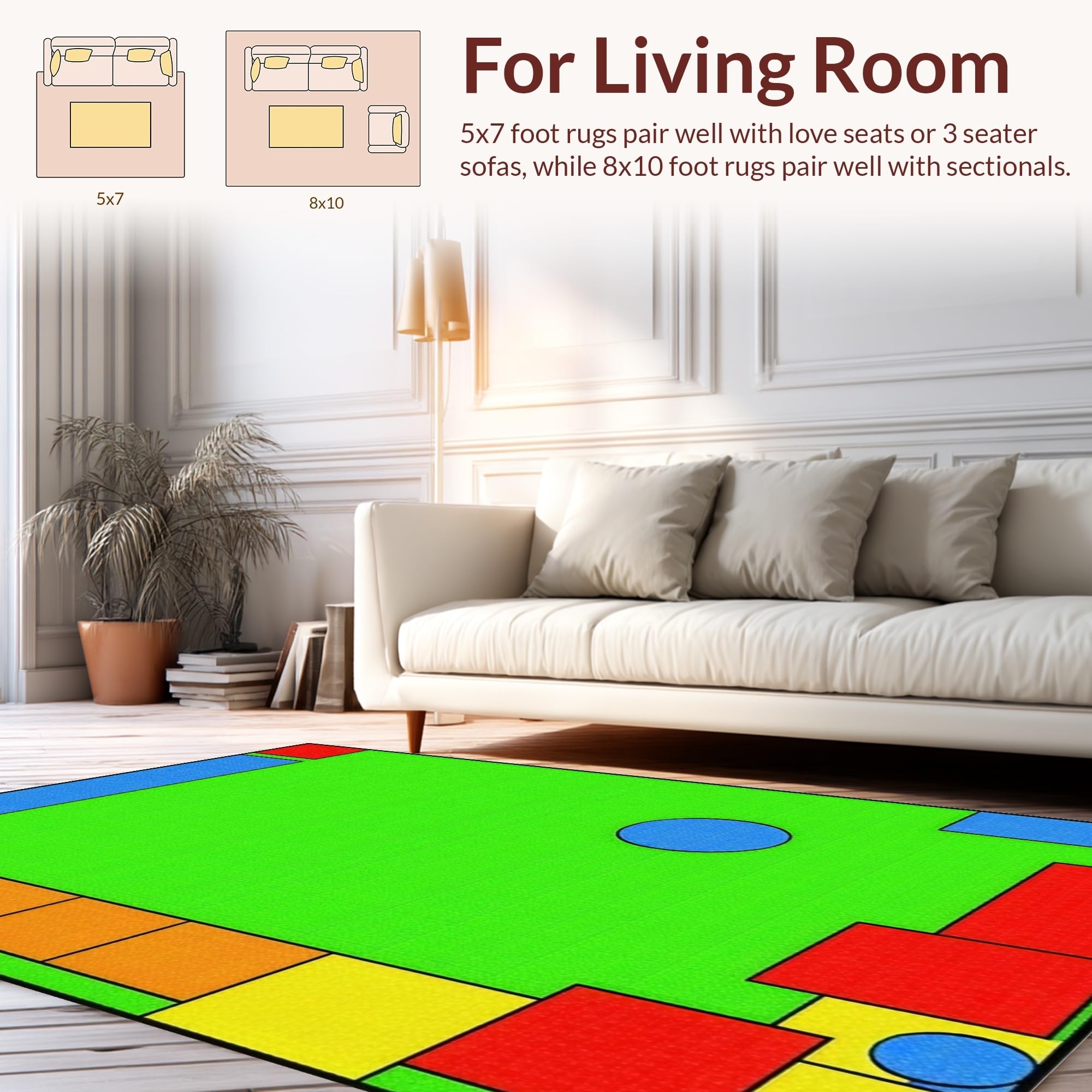 Ultra Soft Area Rug, Non Slip, Stain Resistant, Washable Area Rugs for Living Room, Bedroom, Colorful Learning Adventure Rug(Green) Overview: