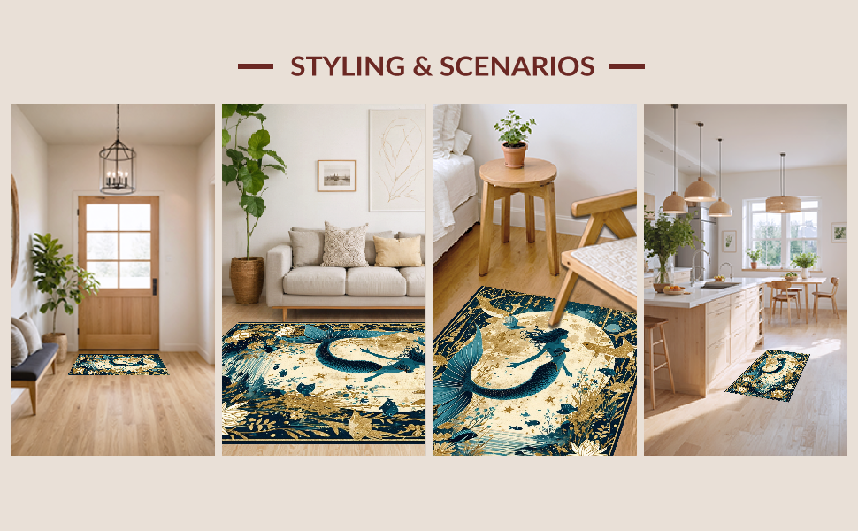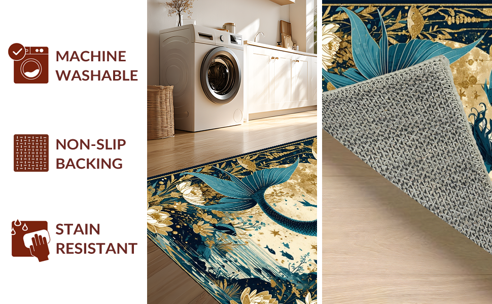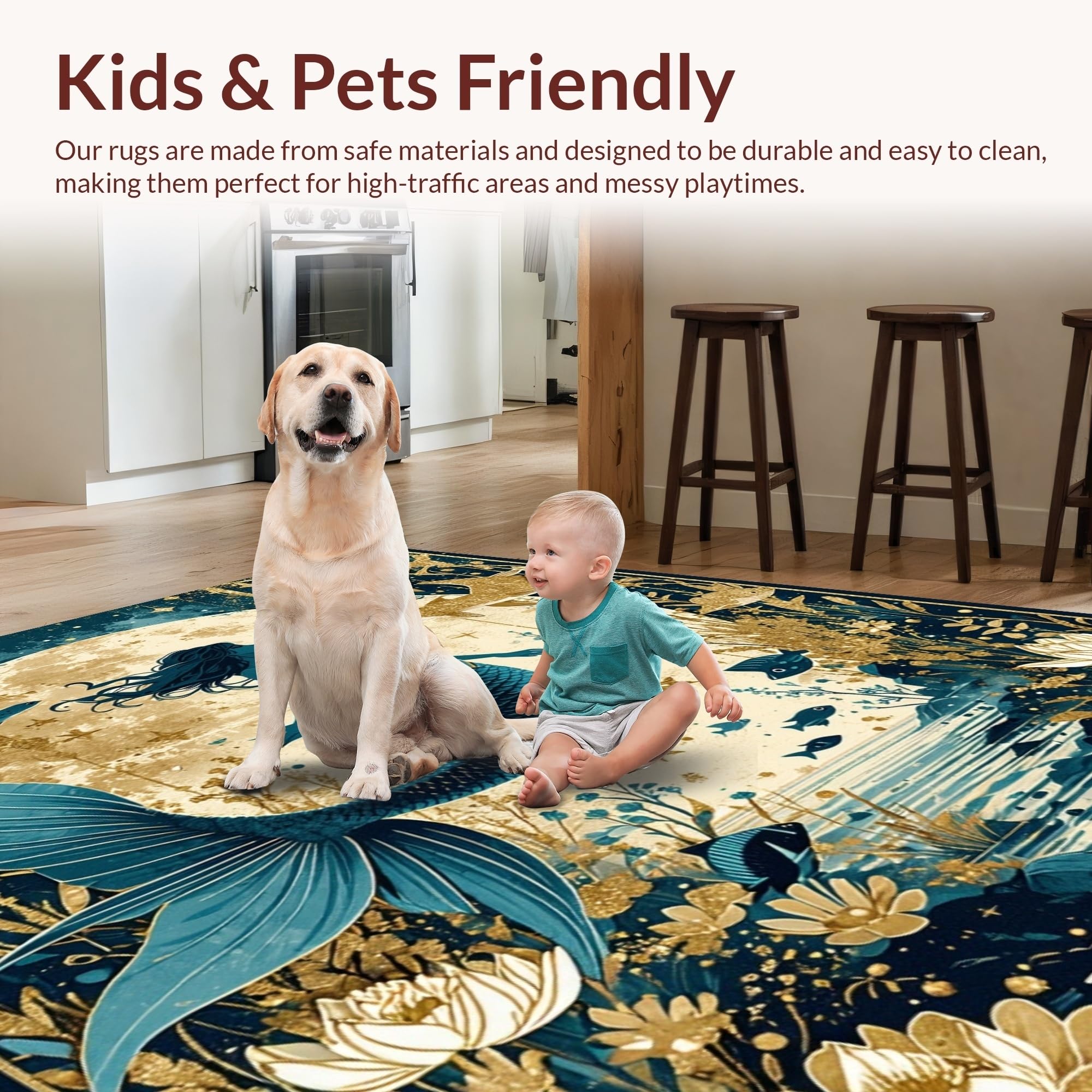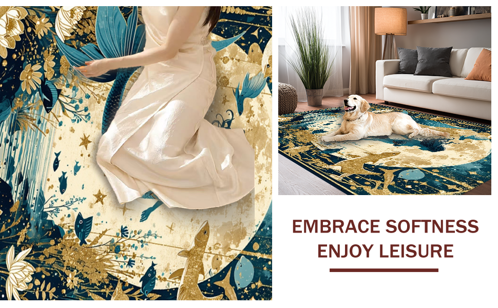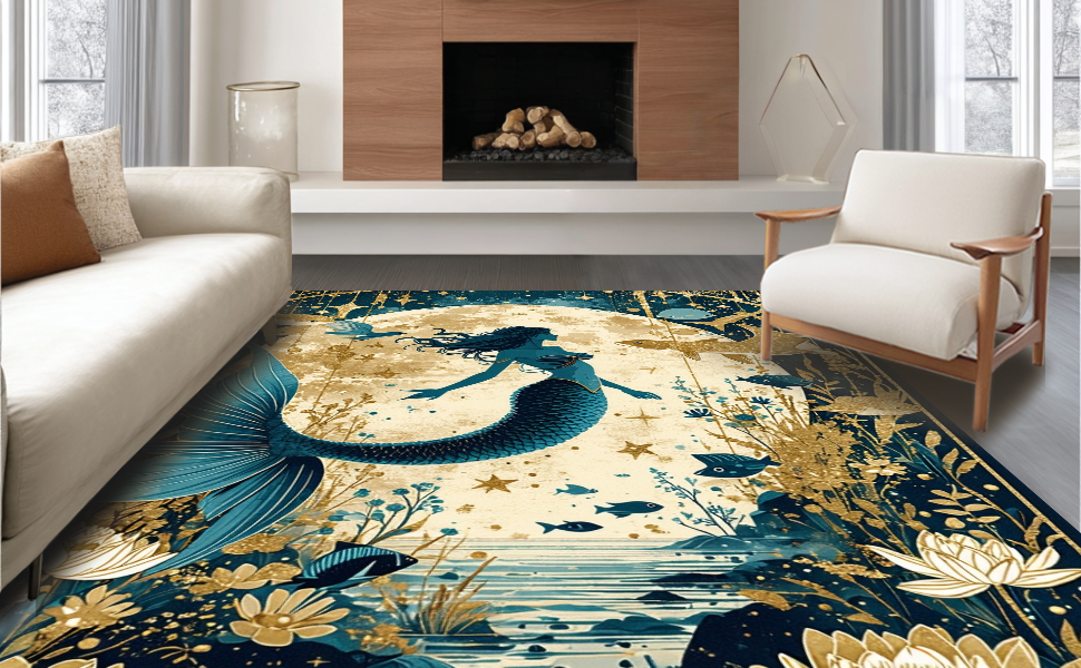 Ultra Soft Area Rug, Non Slip, Stain Resistant, Washable Area Rugs for Living Room, Bedroom, Colorful Mermaid Dreamscape Design(Blue) Overview: