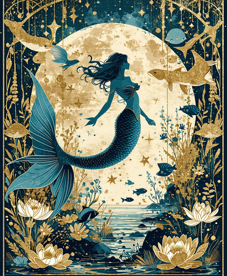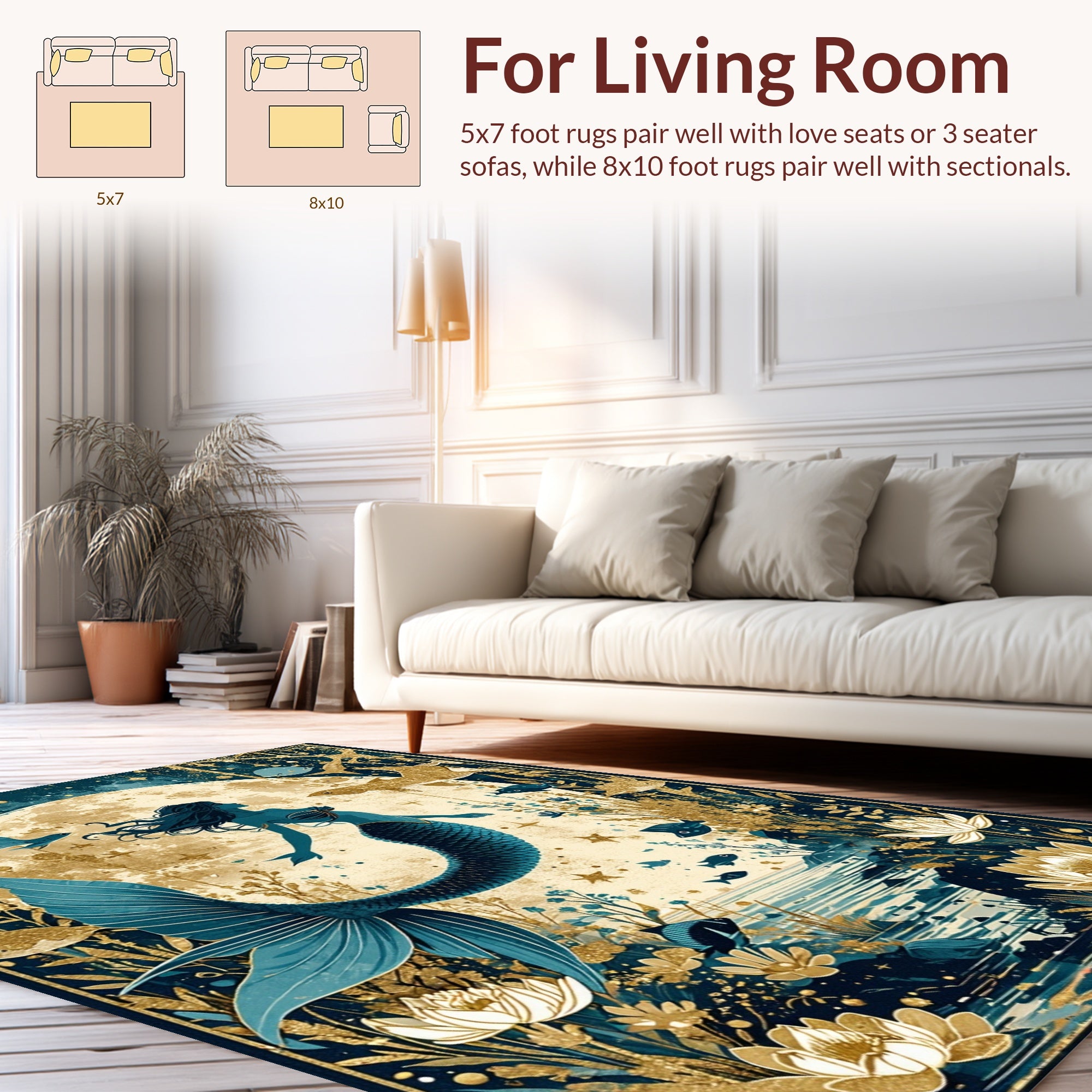 Flatwoven High Traffic Area Rug, Colorful Mermaid Dreamscape Design, Non Slip, Stain Resistant, Washable Area Rugs for Living Room, Bedroom (Blue) Overview: