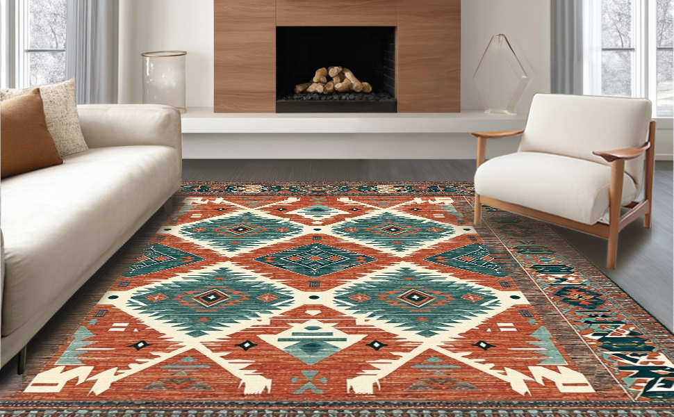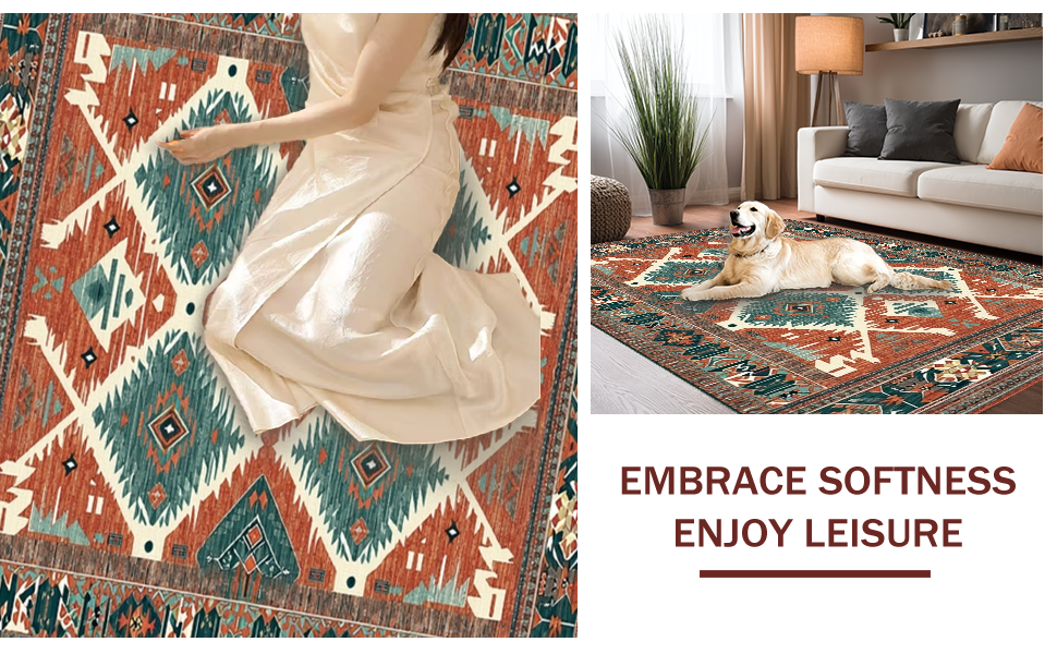 Ultra Soft Area Rug, Non Slip, Stain Resistant, Washable Area Rugs for Living Room, Bedroom, Colorful Modern Lattice Design(Red) Overview: