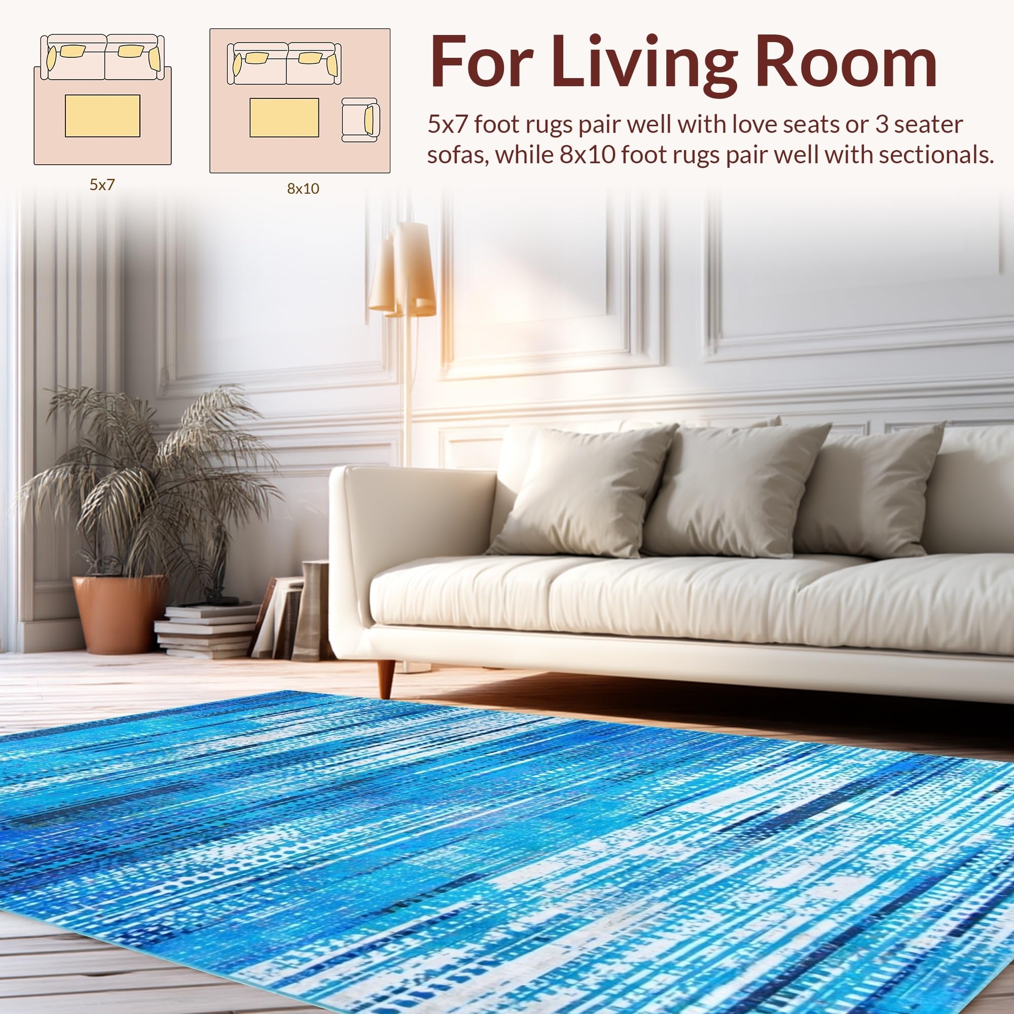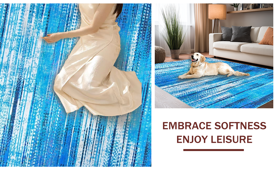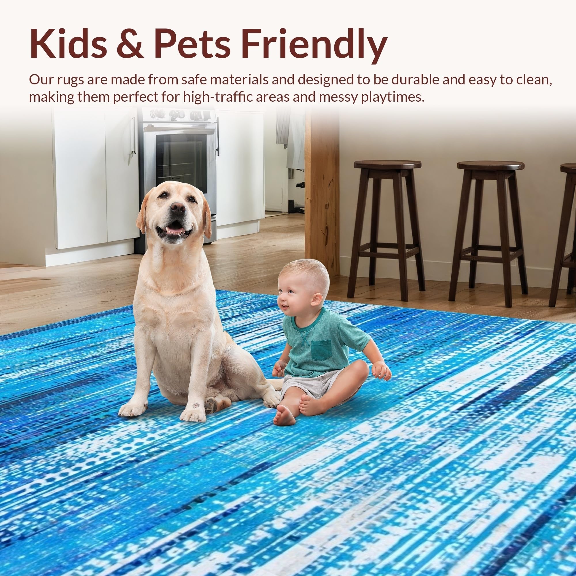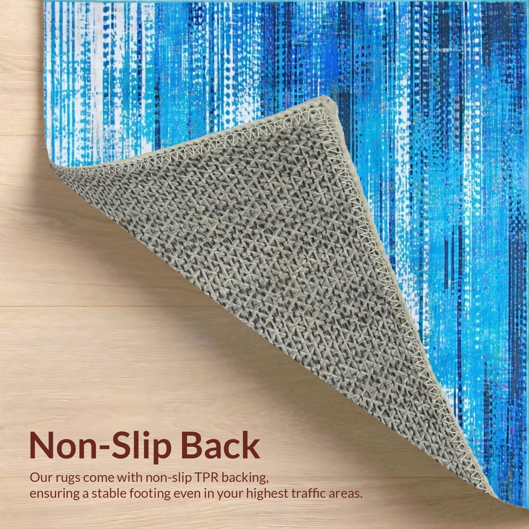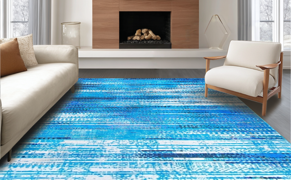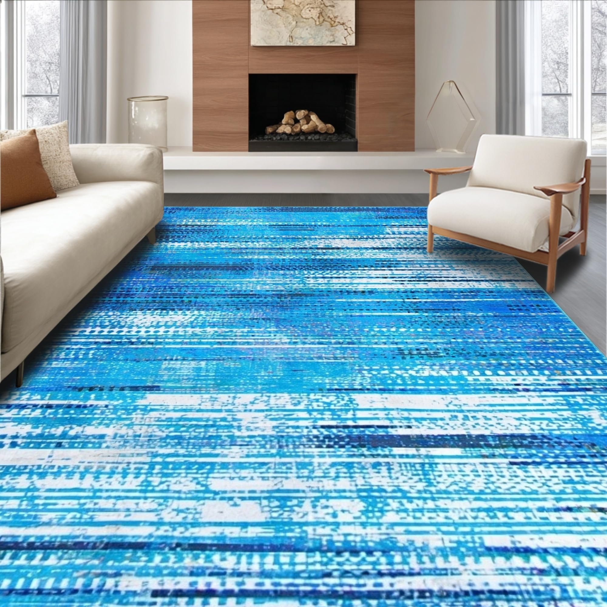 Ultra Soft Area Rug, Non Slip, Stain Resistant, Washable Area Rugs for Living Room, Bedroom, Colorful Modern Tiled Motif(Blue) Overview: