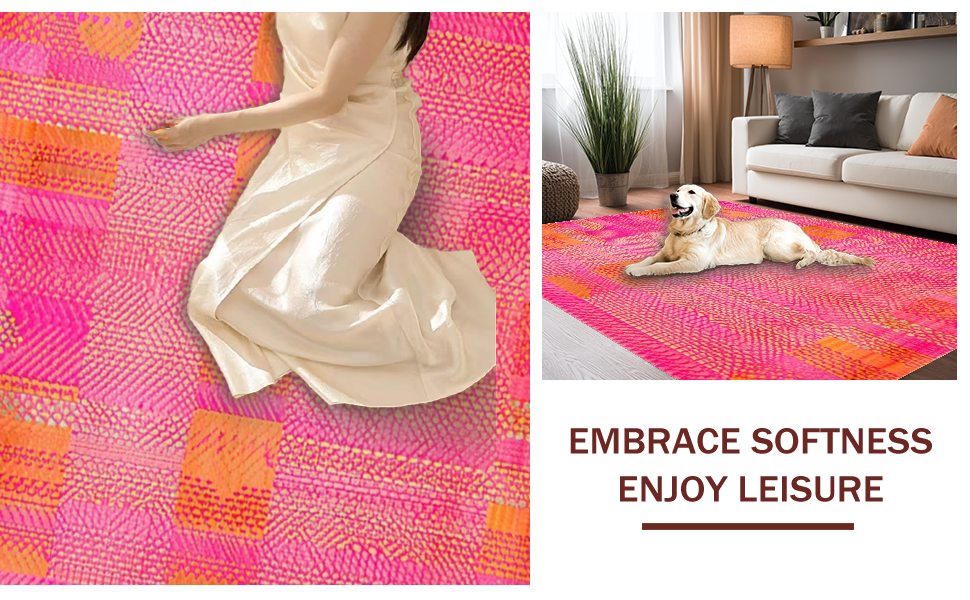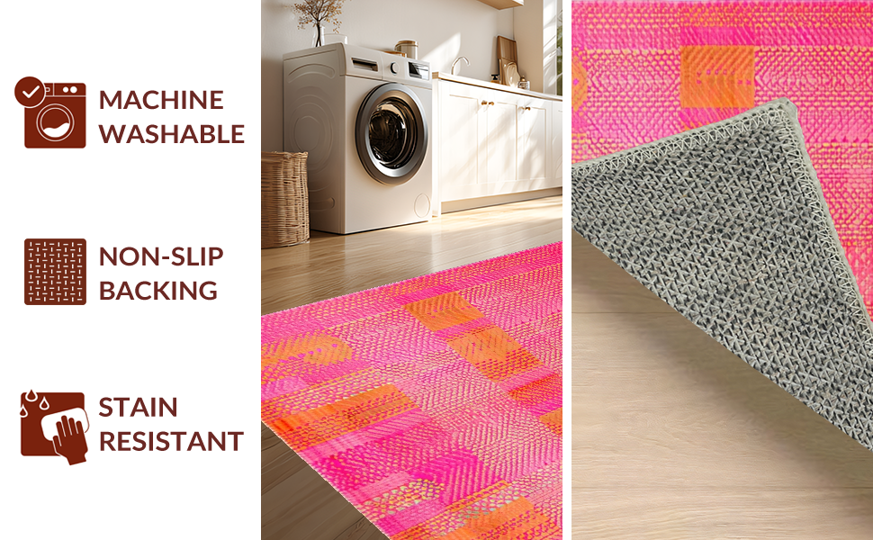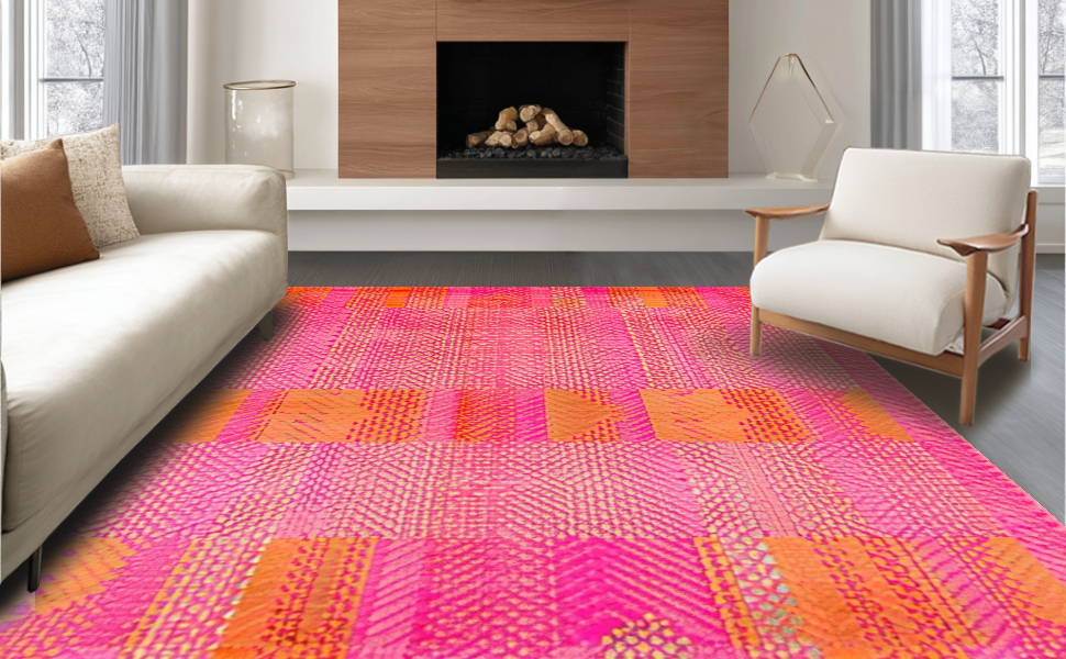 Ultra Soft Area Rug, Non Slip, Stain Resistant, Washable Area Rugs for Living Room, Bedroom, Colorful Modernist Textured Pattern(Pink) Overview: