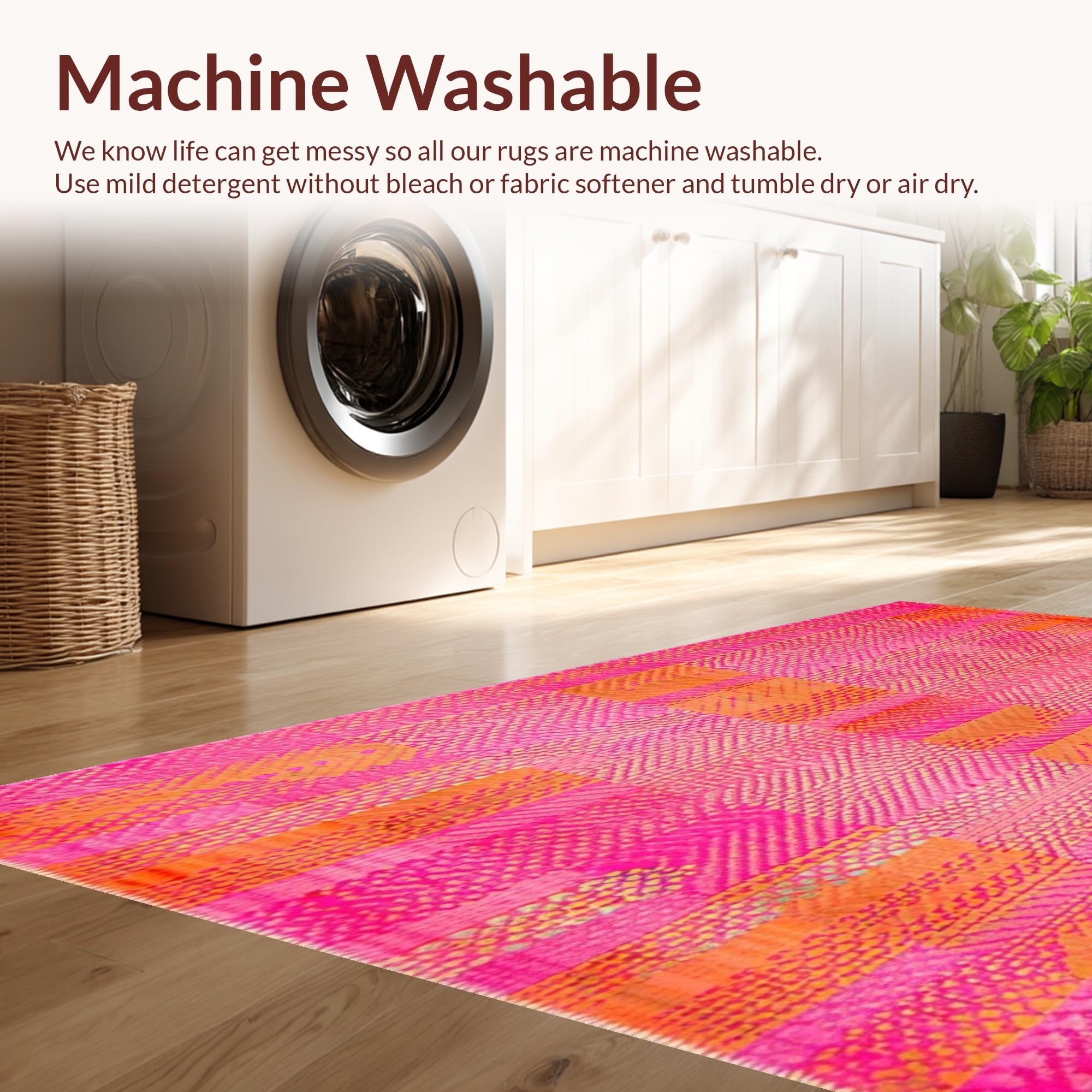 - Machine Washable: Our rugs can be easily thrown in the wash machine.