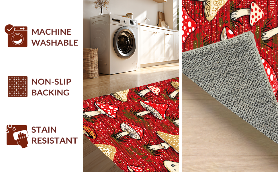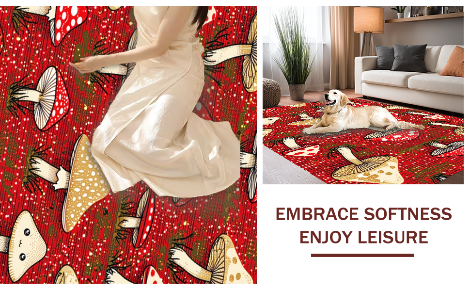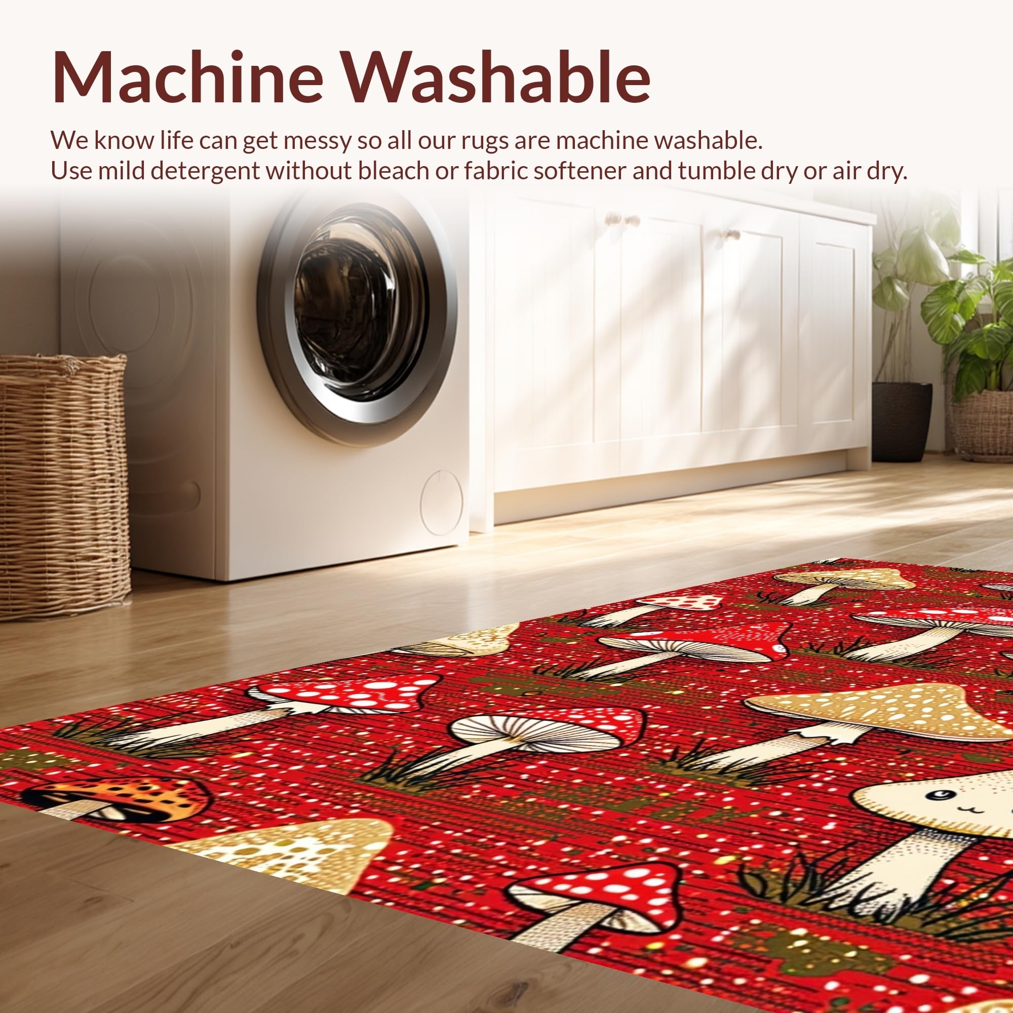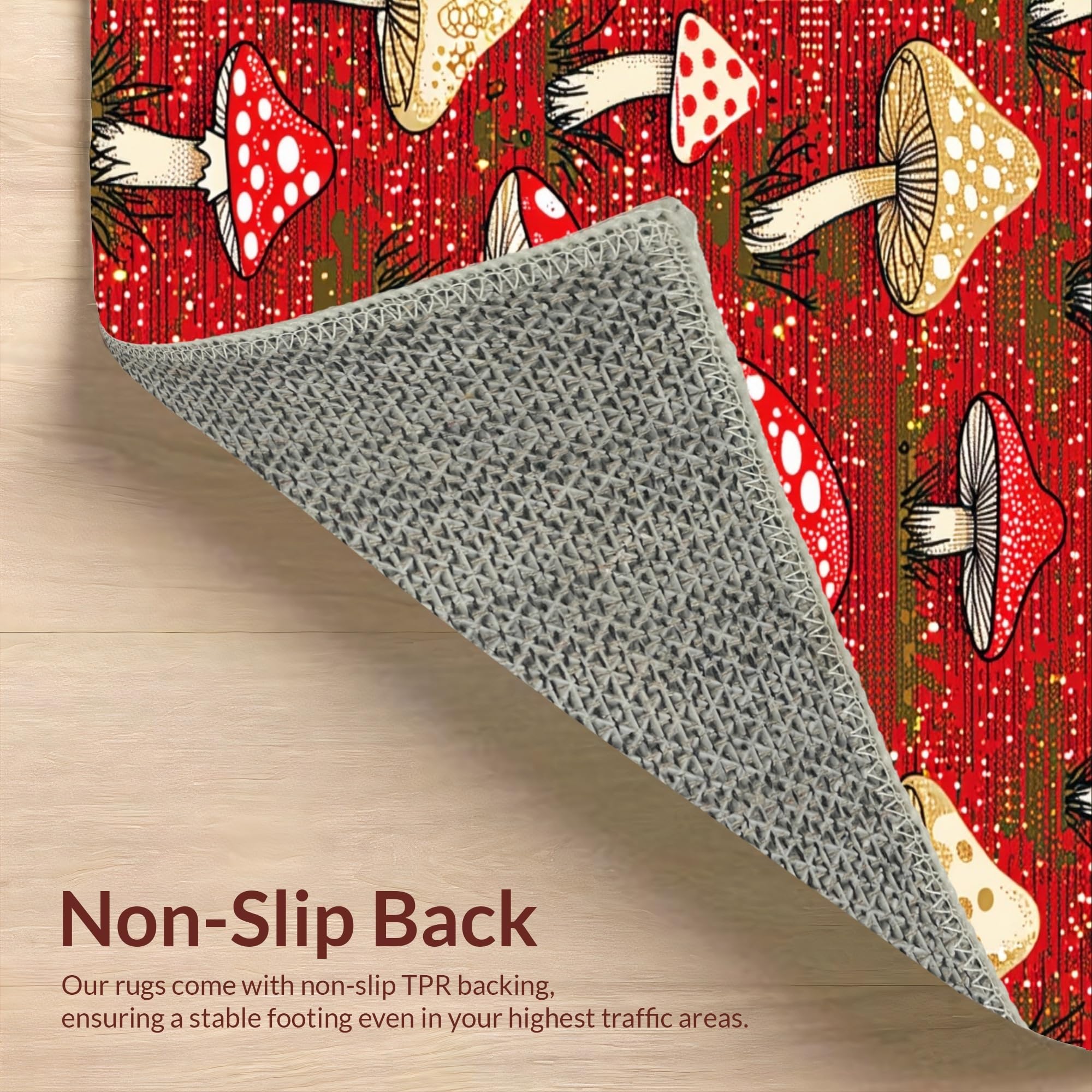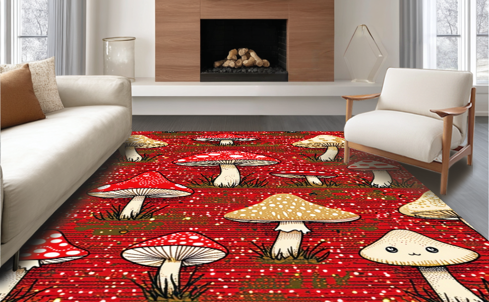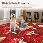 Ultra Soft Area Rug, Non Slip, Stain Resistant, Washable Area Rugs for Living Room, Bedroom, Colorful Mushroom Print with Cheer(Red) Overview: