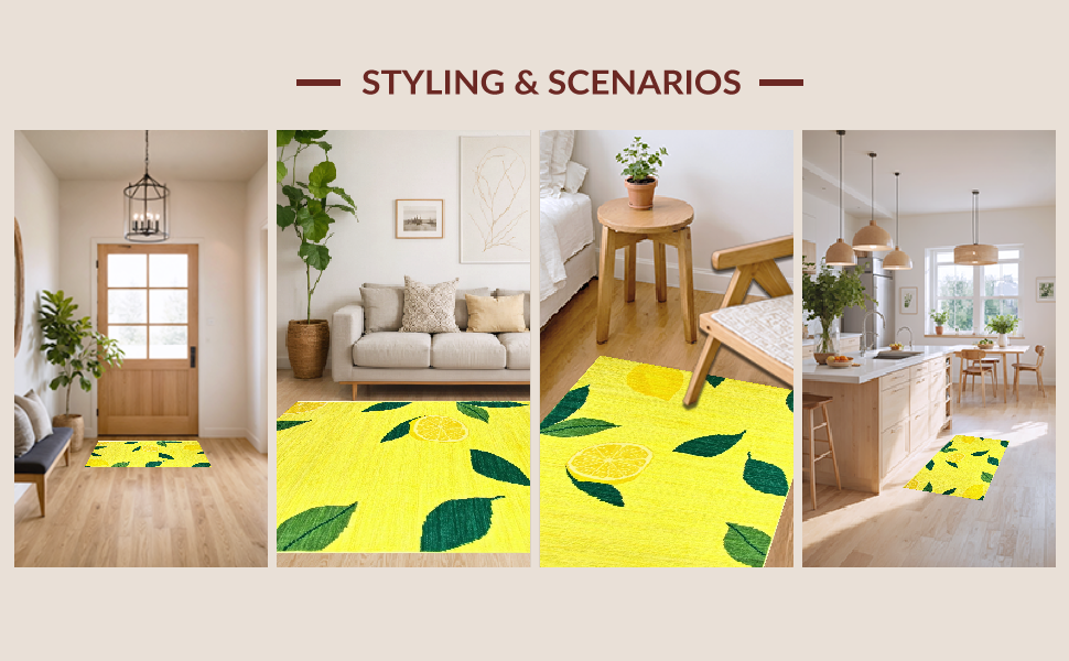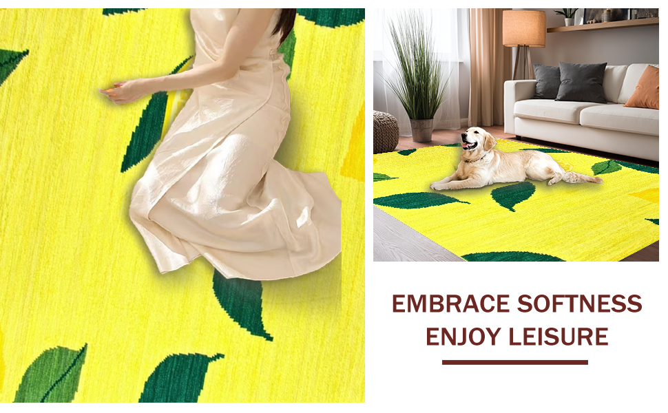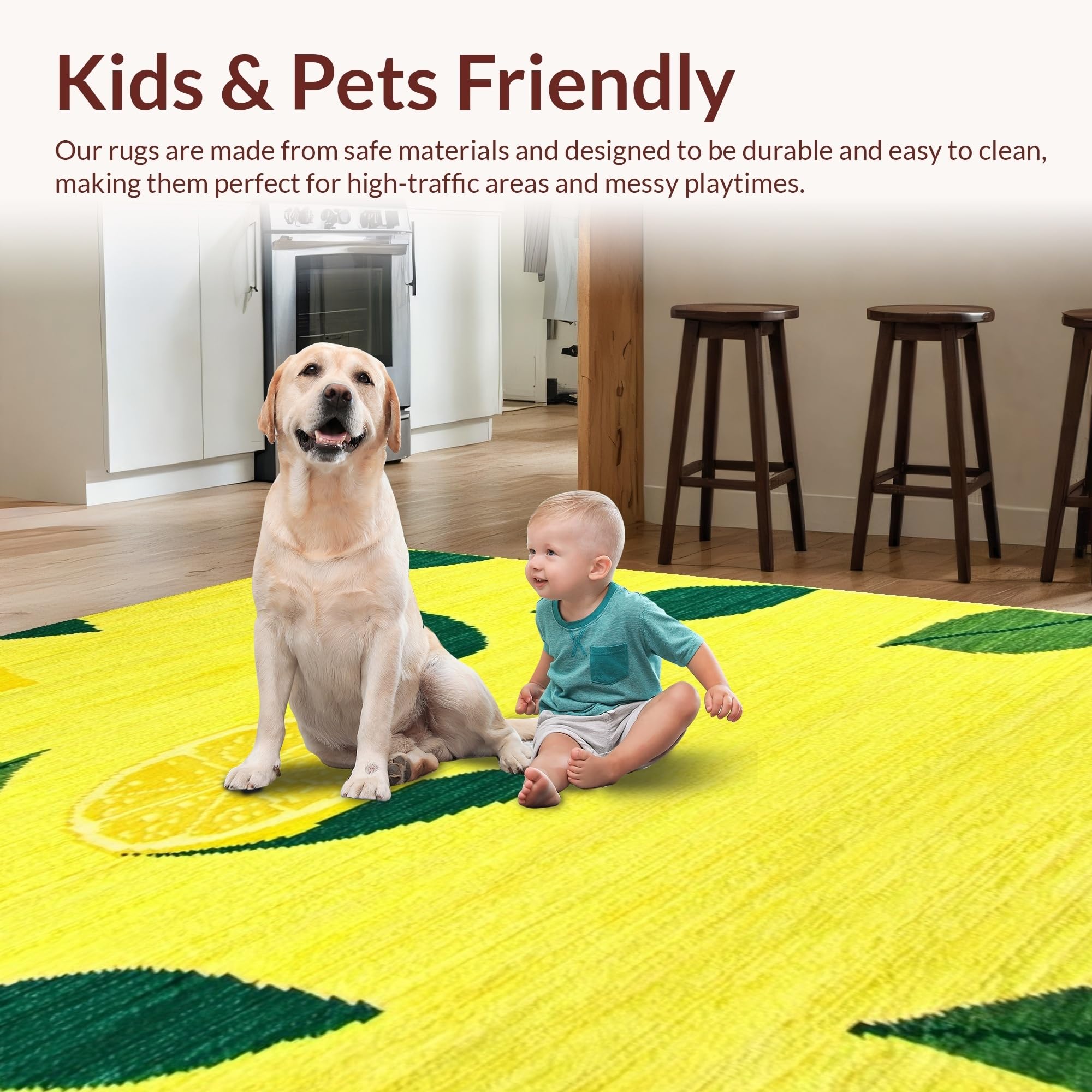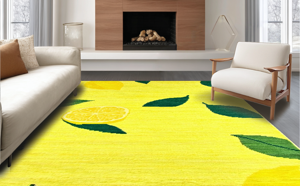 Ultra Soft Area Rug, Non Slip, Stain Resistant, Washable Area Rugs for Living Room, Bedroom, Colorful Nature-Inspired Detail(Yellow) Overview: