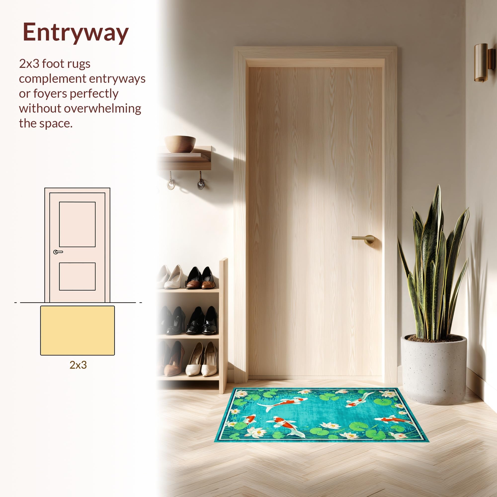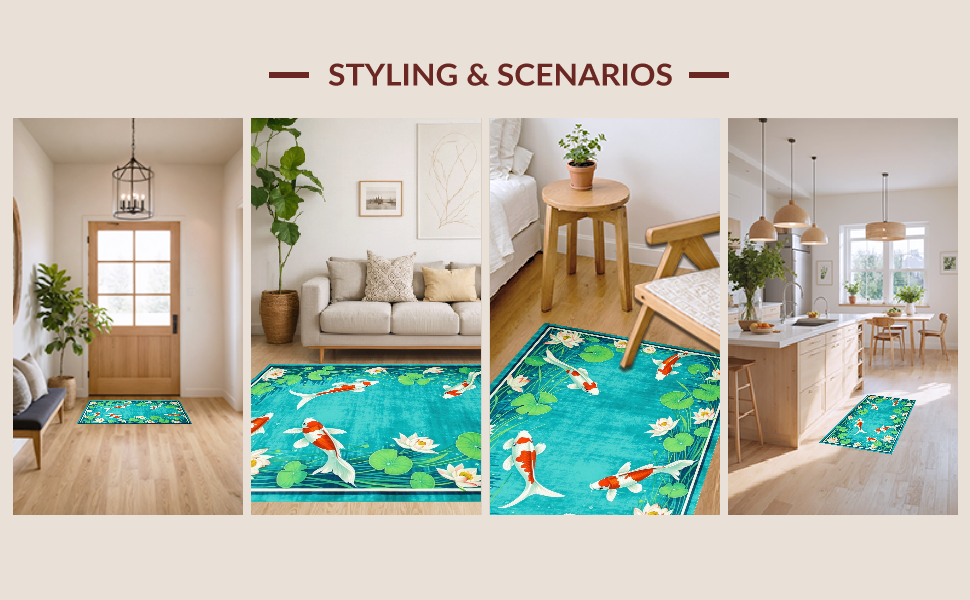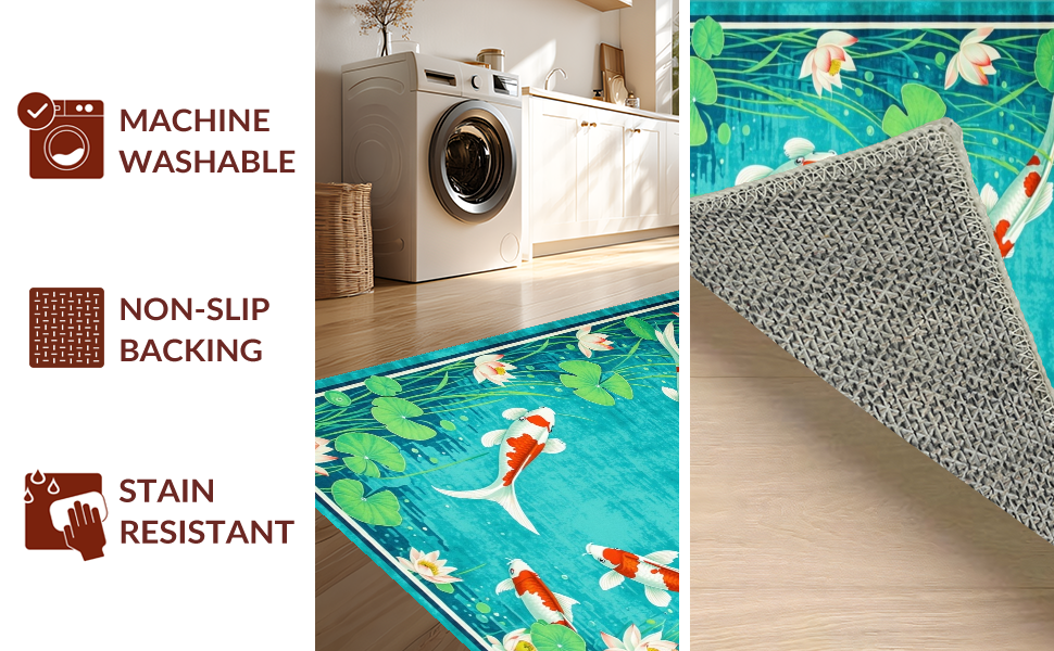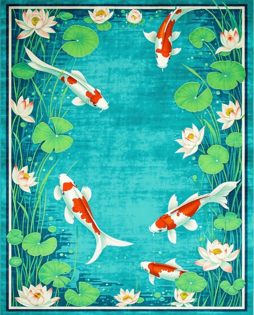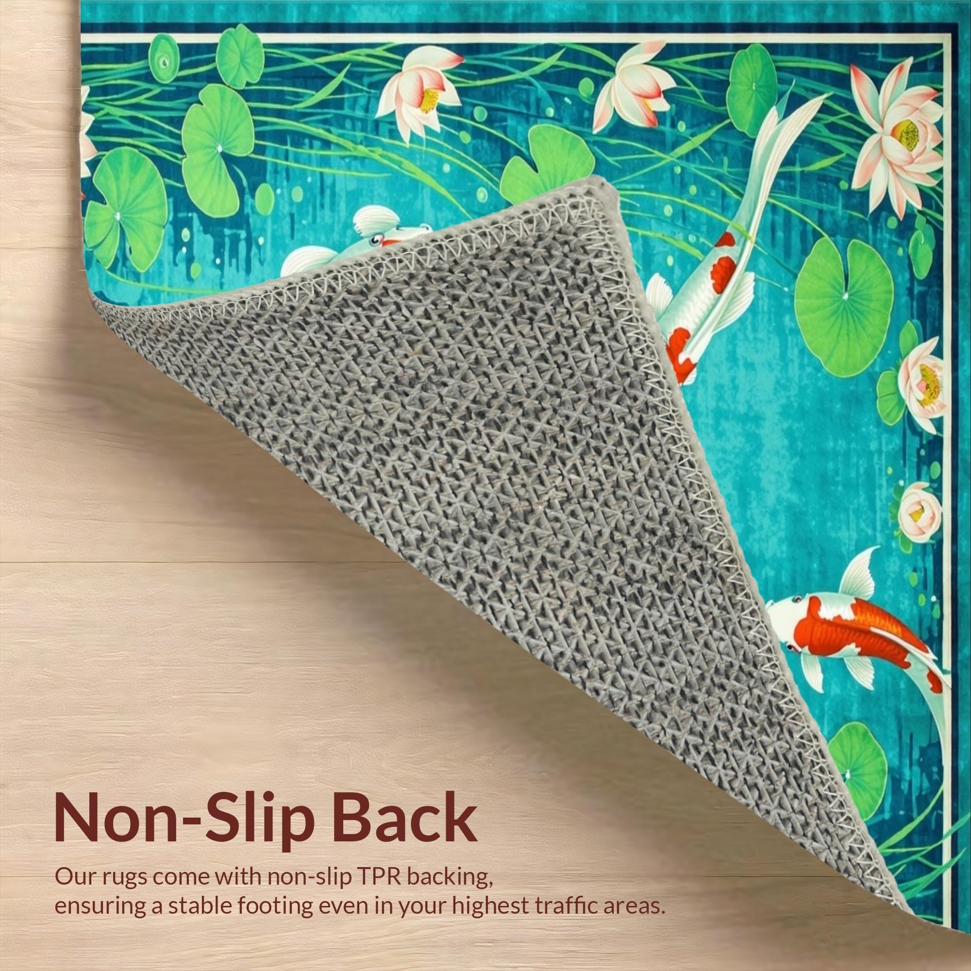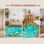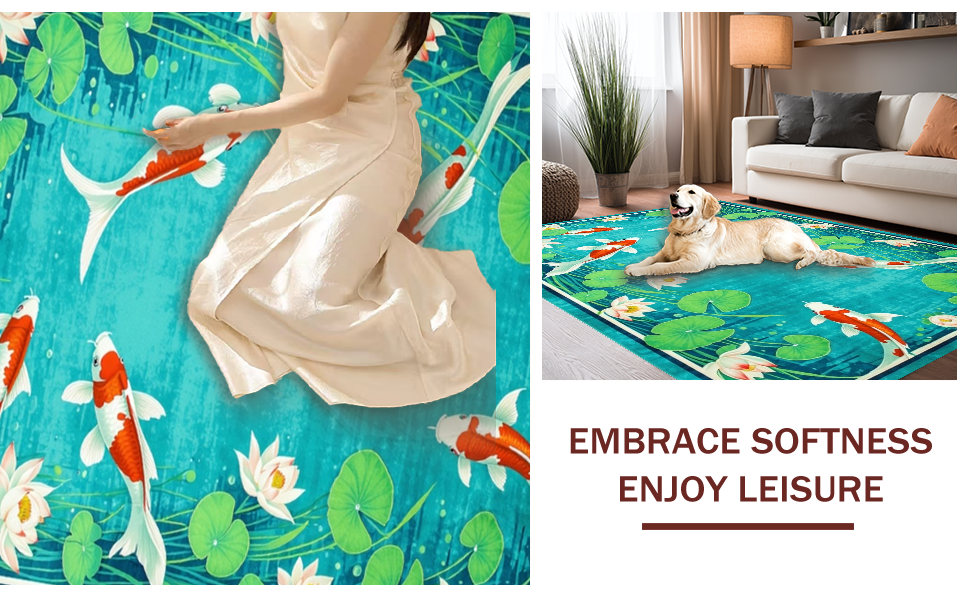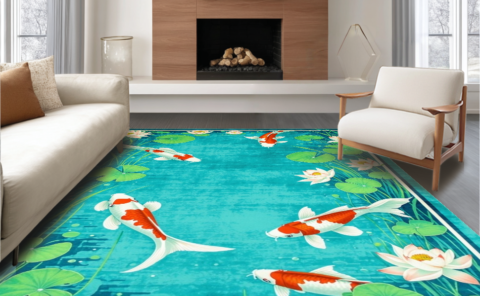 Ultra Soft Area Rug, Non Slip, Stain Resistant, Washable Area Rugs for Living Room, Bedroom, Colorful Nature-Inspired Koi Design(Blue) Overview: