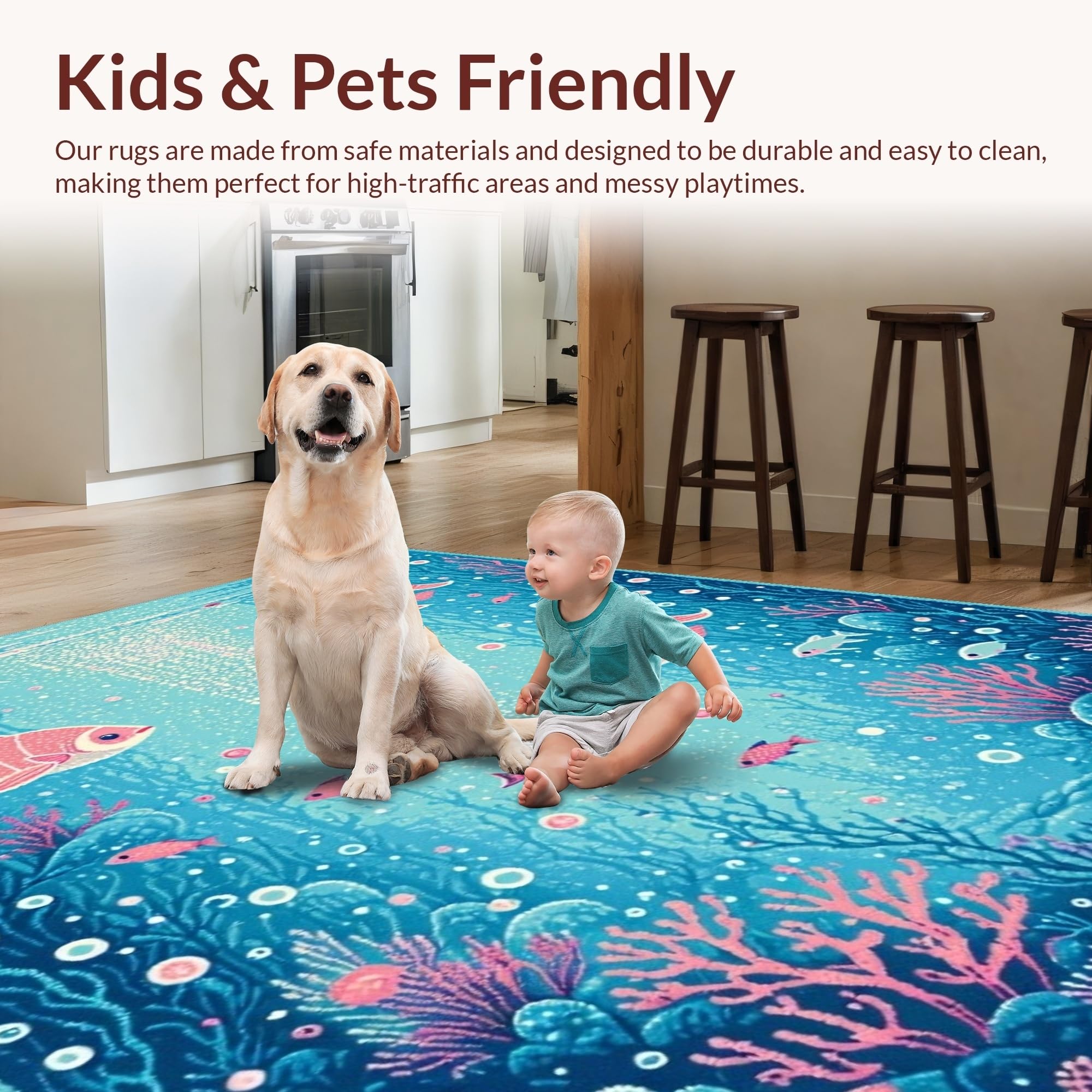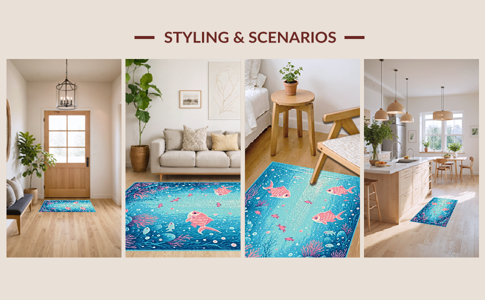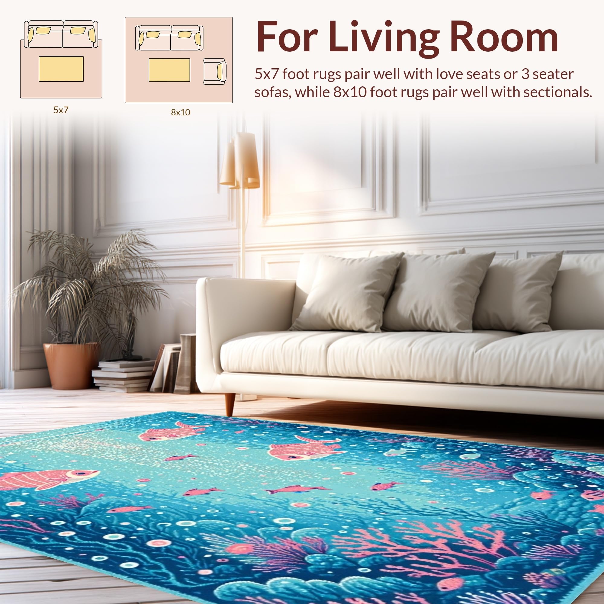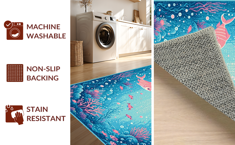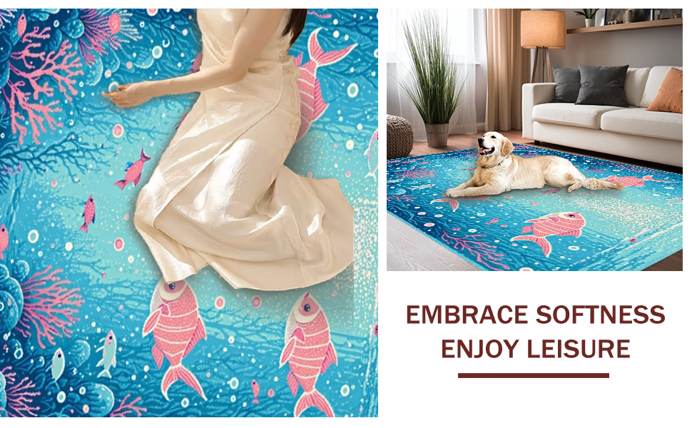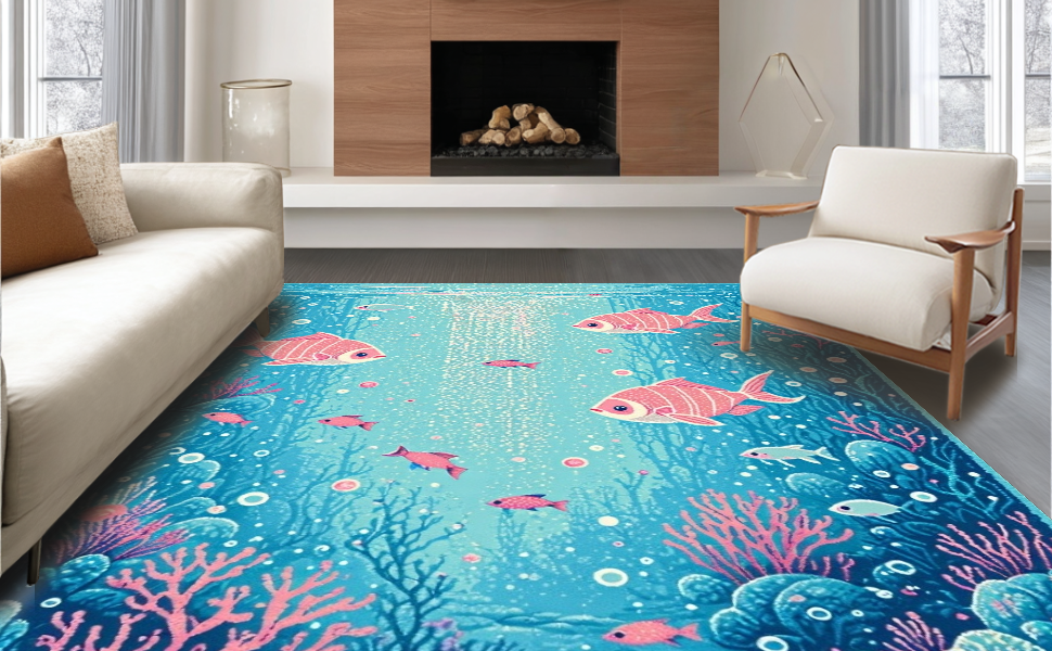 Ultra Soft Area Rug, Non Slip, Stain Resistant, Washable Area Rugs for Living Room, Bedroom, Colorful Nautical Fantasy Motif(Blue) Overview: