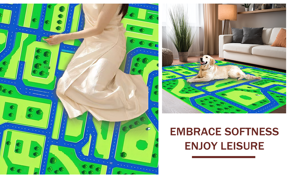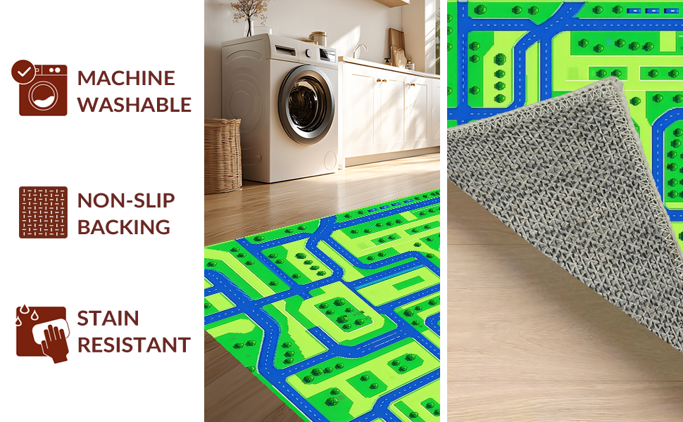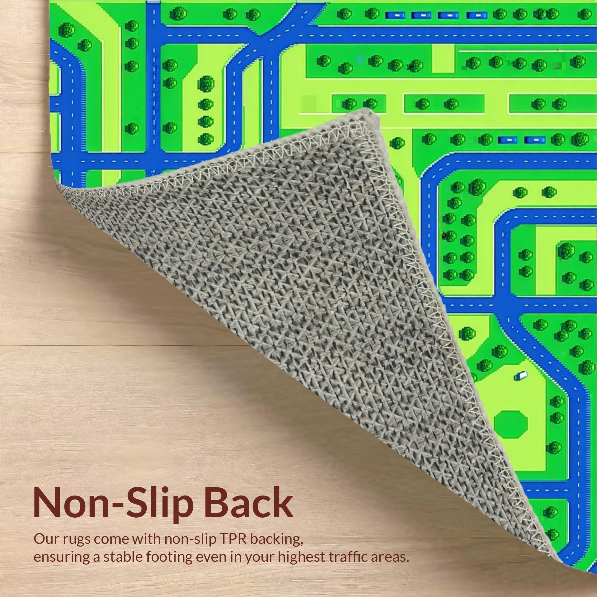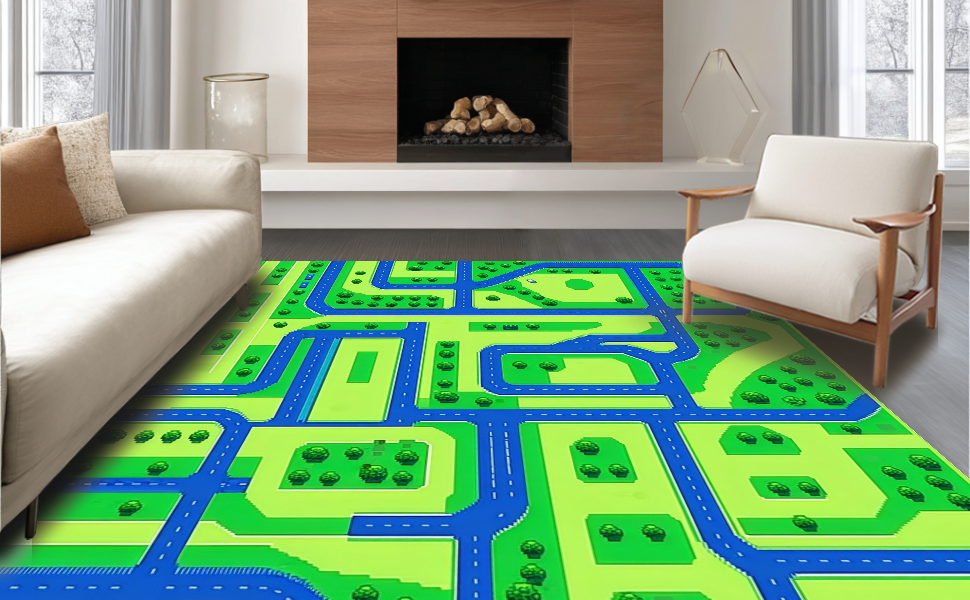 Ultra Soft Area Rug, Non Slip, Stain Resistant, Washable Area Rugs for Living Room, Bedroom, Colorful Neighborhood Exploration Design Concept(Green) Overview: