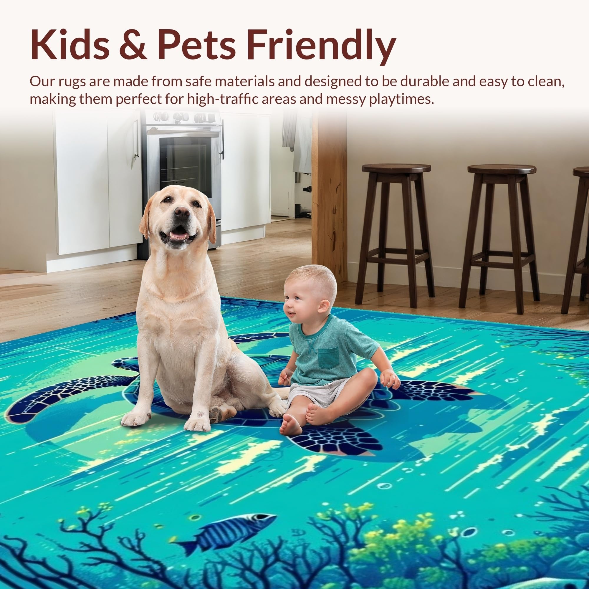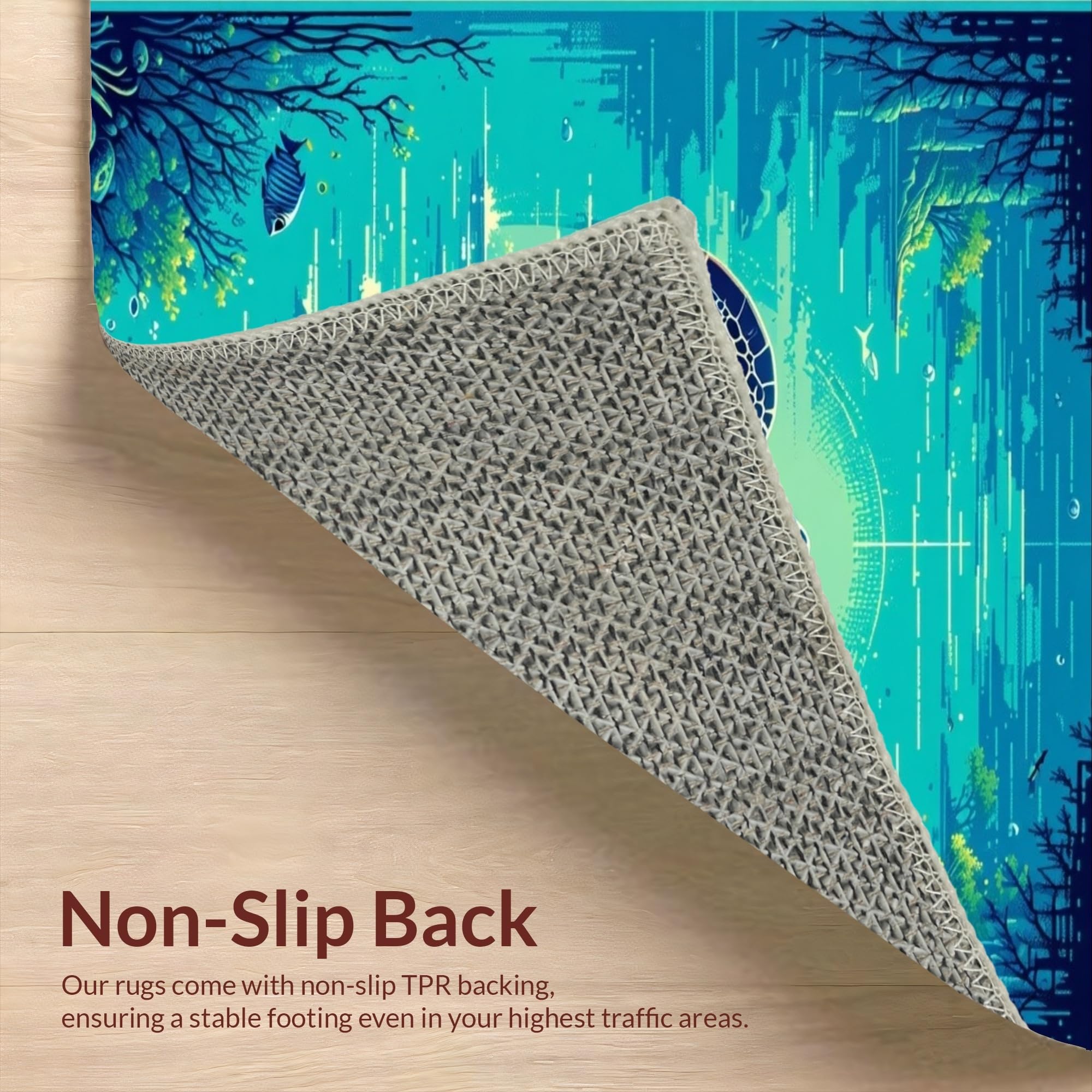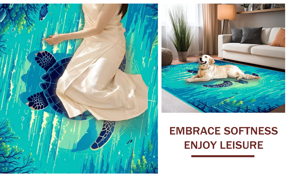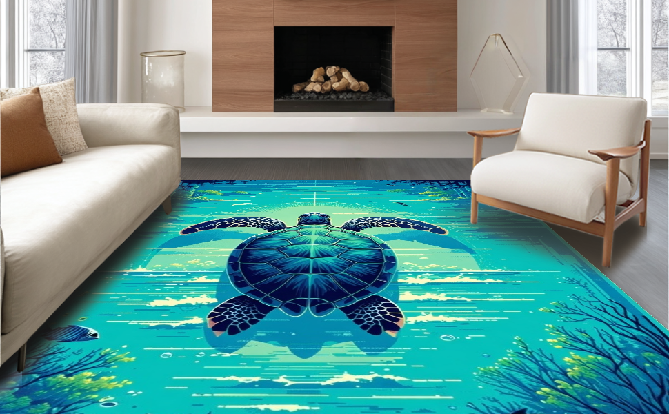 Ultra Soft Area Rug, Non Slip, Stain Resistant, Washable Area Rugs for Living Room, Bedroom, Colorful Ocean Waves Design(Blue) Overview: