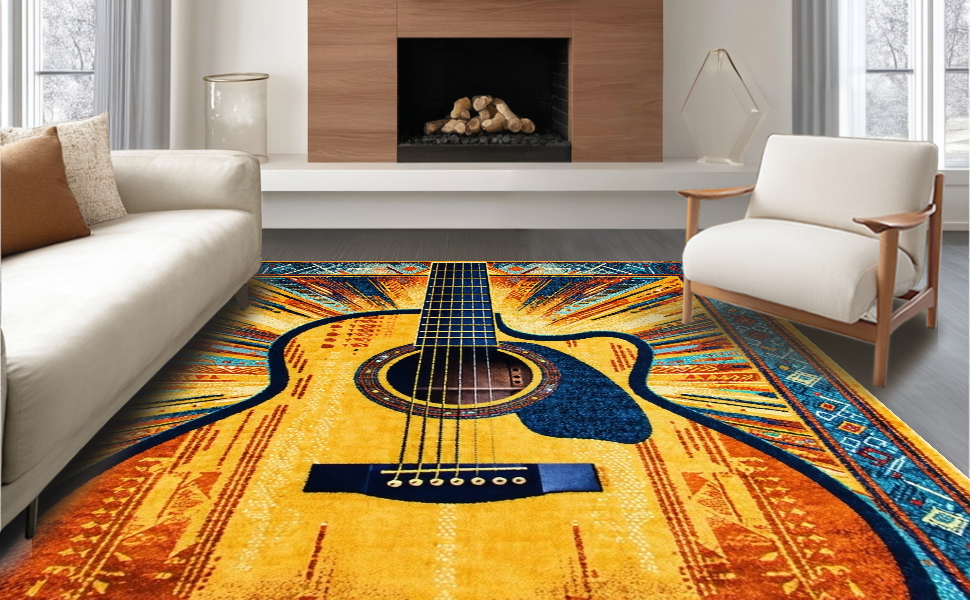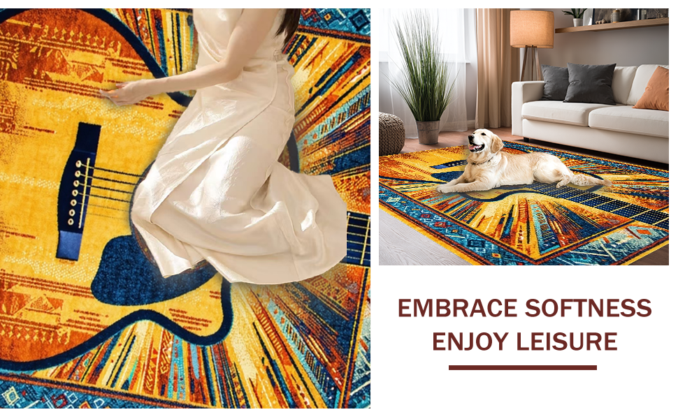 Ultra Soft Area Rug, Non Slip, Stain Resistant, Washable Area Rugs for Living Room, Bedroom, Colorful Oil Painting Design(Gold) Overview: