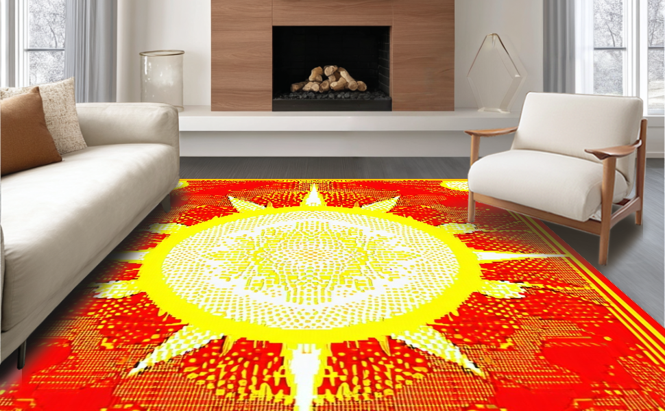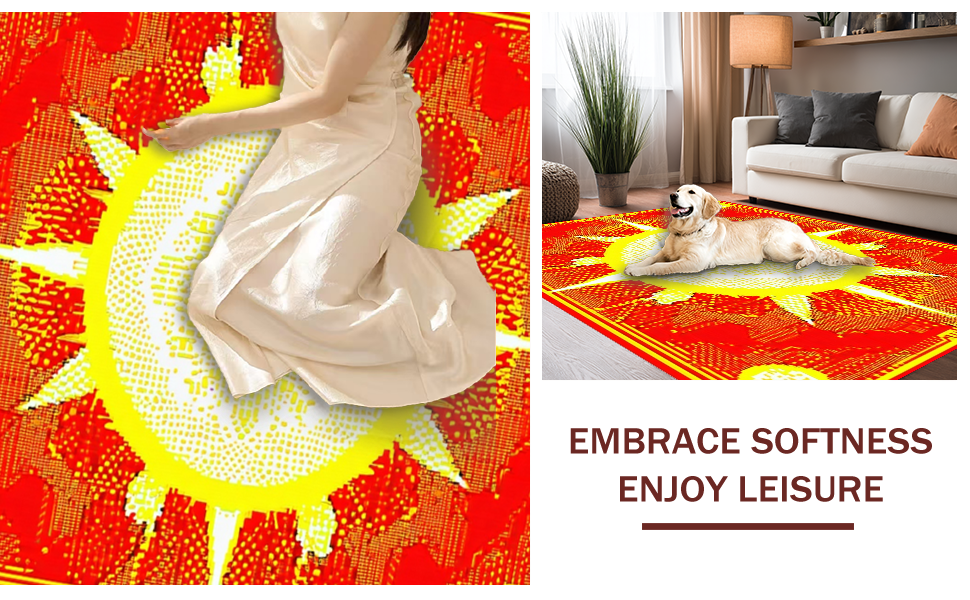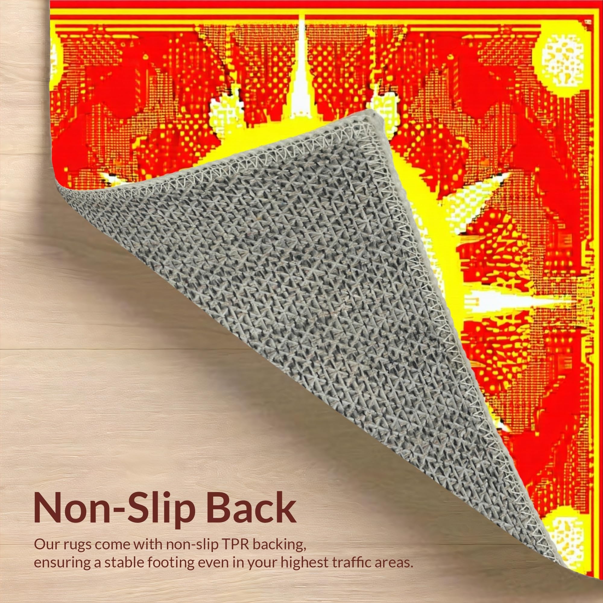 Ultra Soft Area Rug, Non Slip, Stain Resistant, Washable Area Rugs for Living Room, Bedroom, Colorful Organic Patterned Floor Art(Red) Overview: