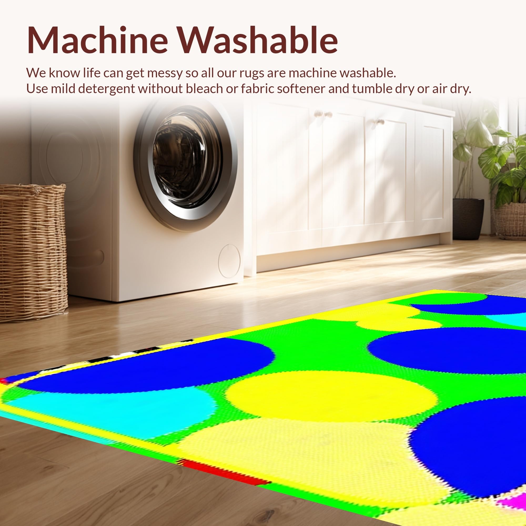 - Machine Washable: Our rugs can be easily thrown in the wash machine.