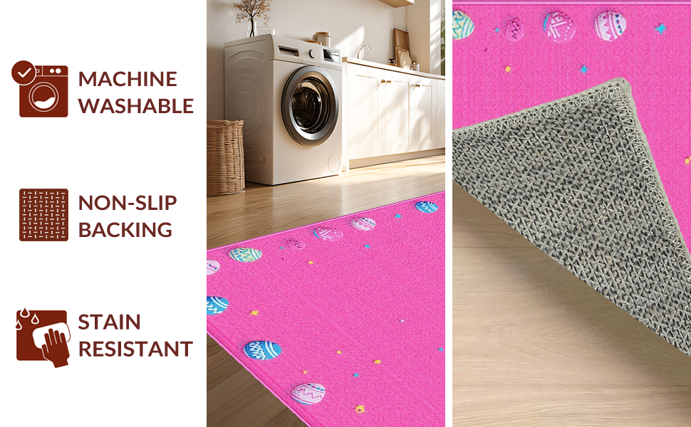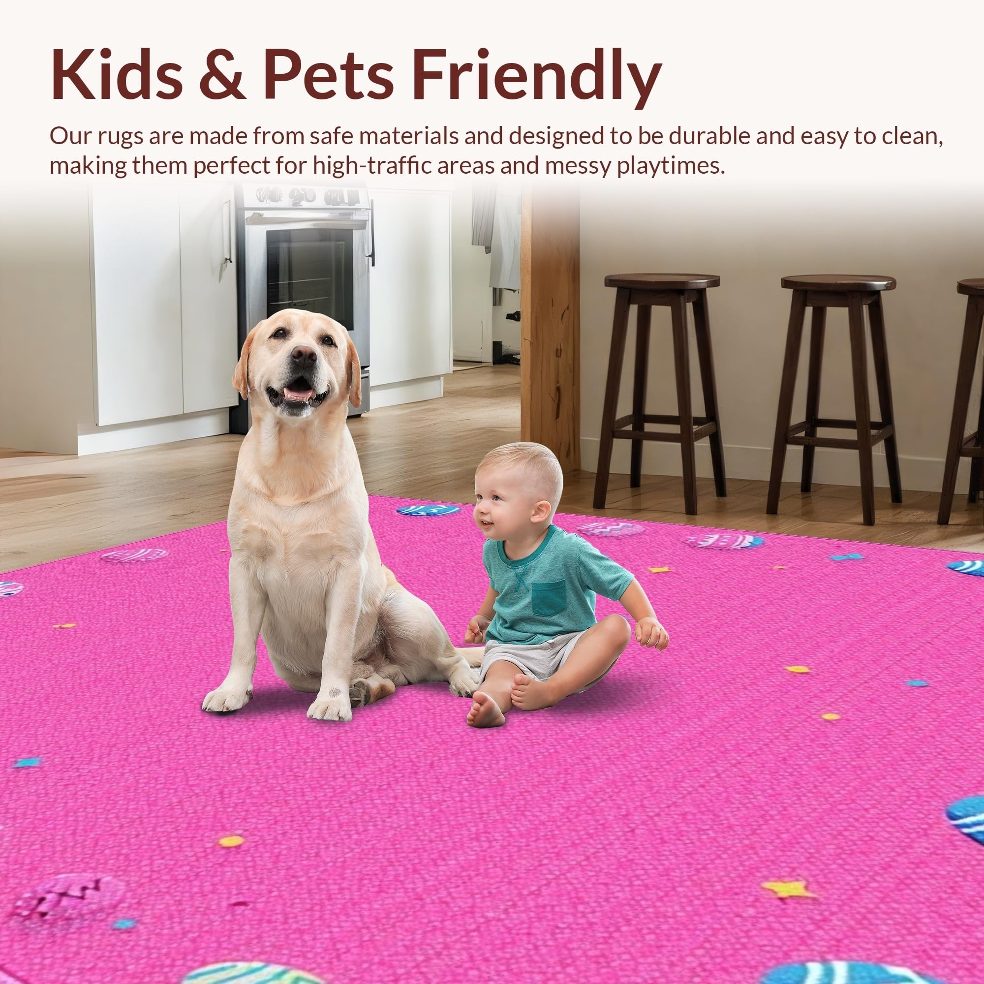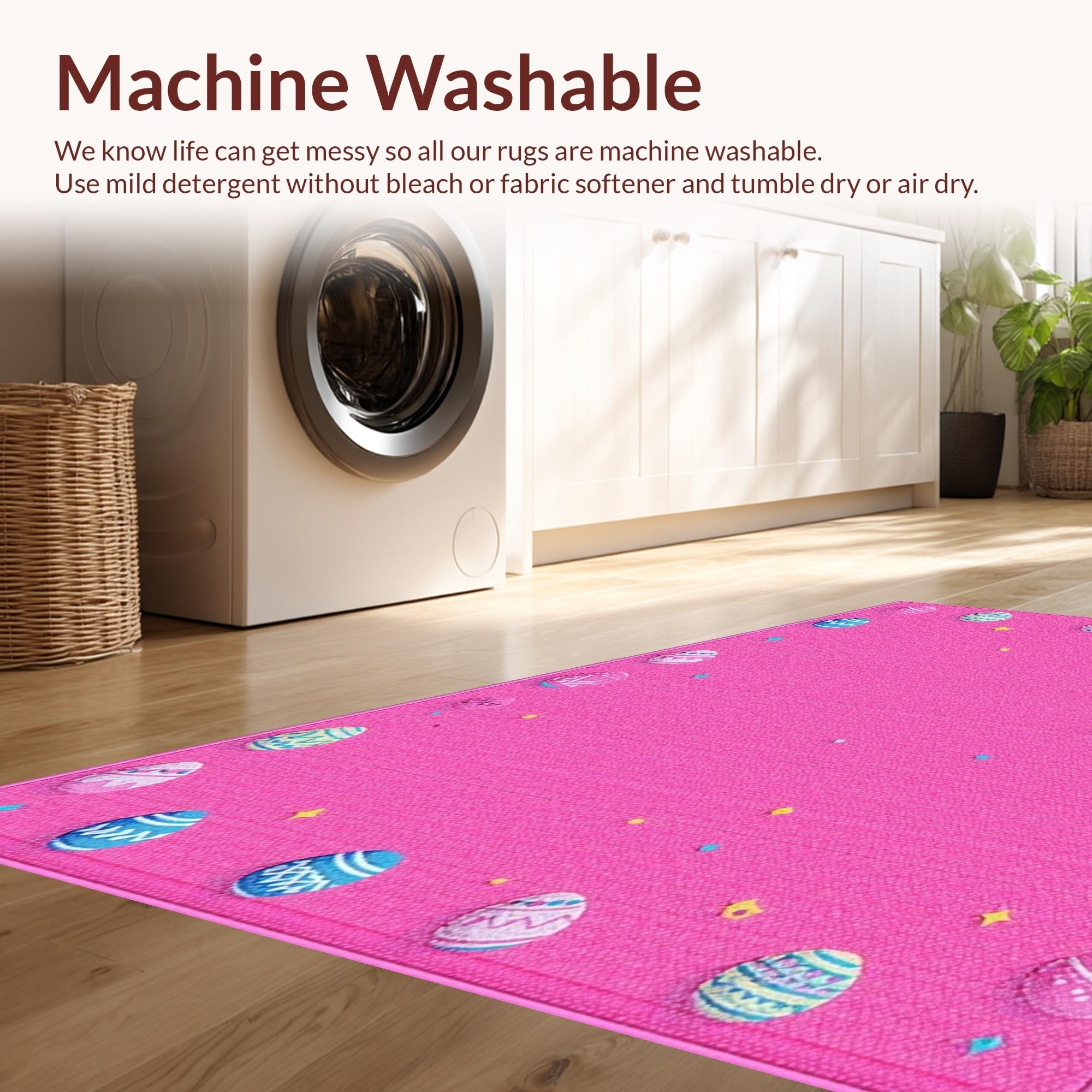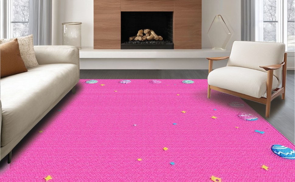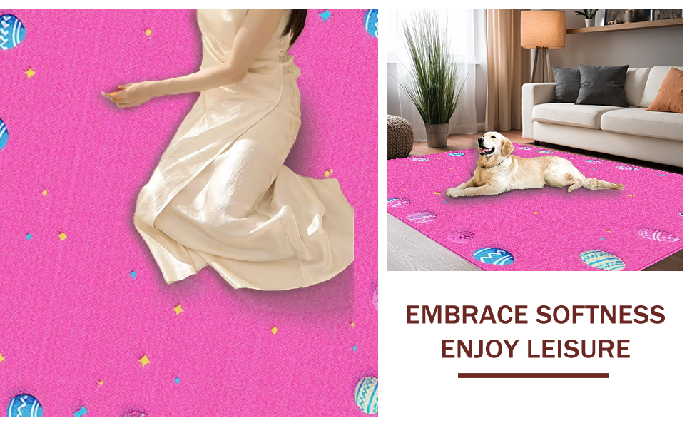 Ultra Soft Area Rug, Non Slip, Stain Resistant, Washable Area Rugs for Living Room, Bedroom, Colorful Playful Egg Motif(Pink) Overview:
