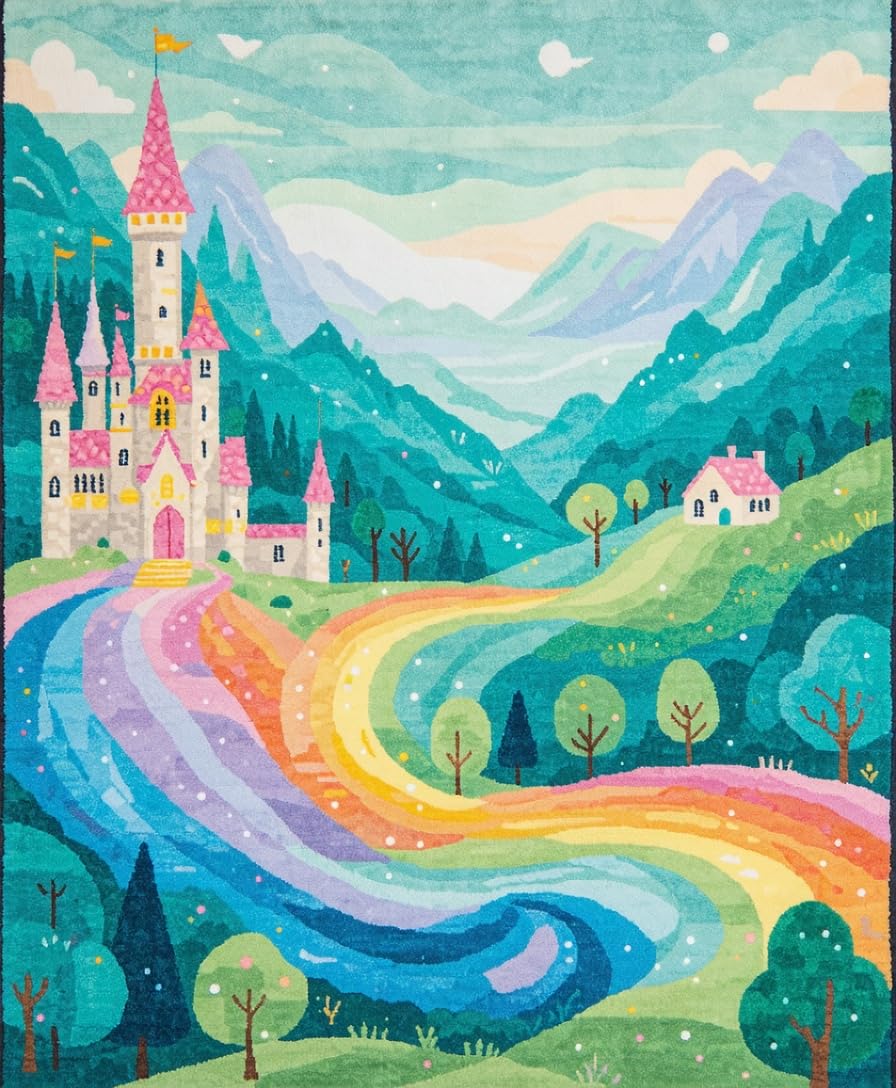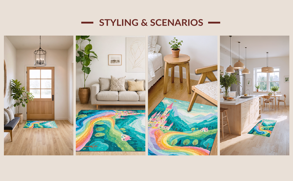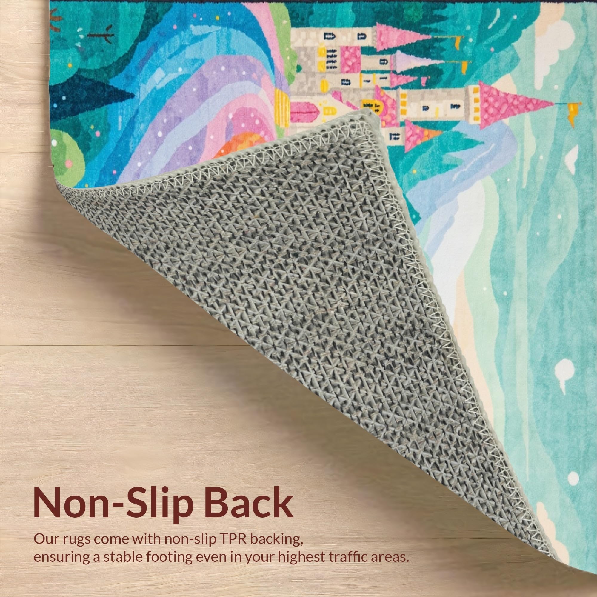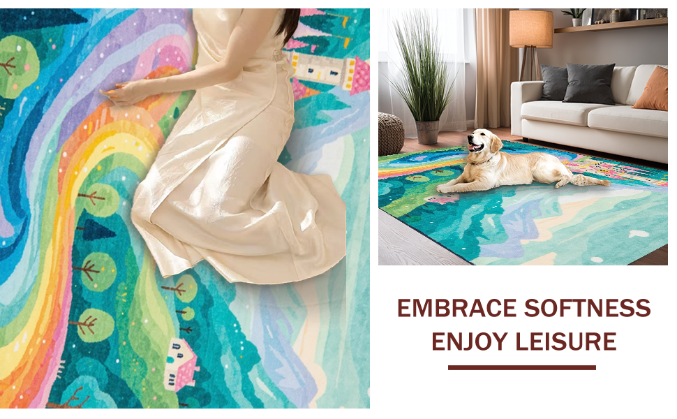 Ultra Soft Area Rug, Non Slip, Stain Resistant, Washable Area Rugs for Living Room, Bedroom, Colorful Rainbow Dreamscape Design(Blue) Overview: