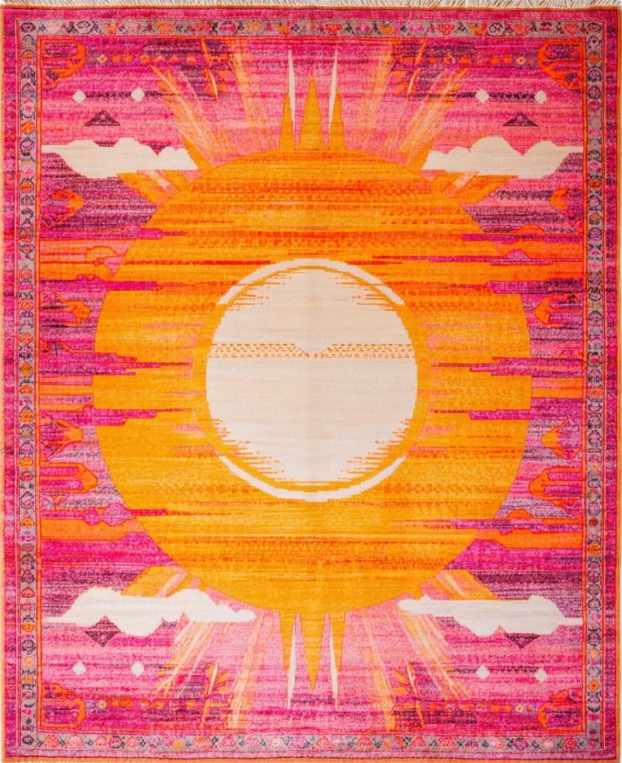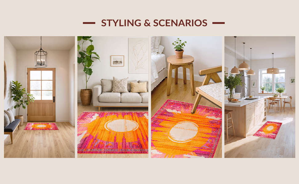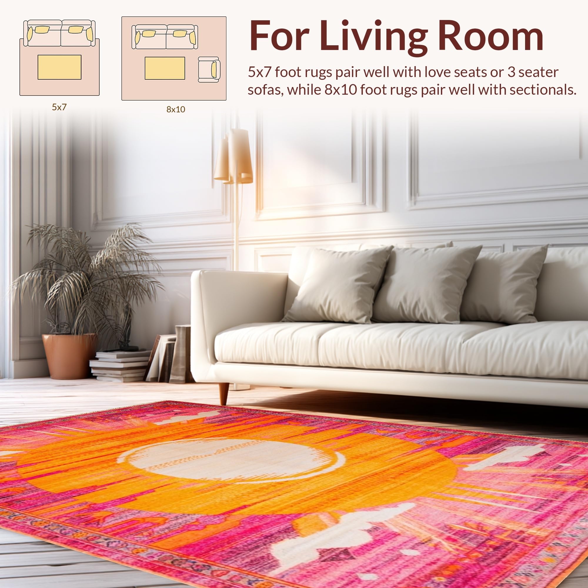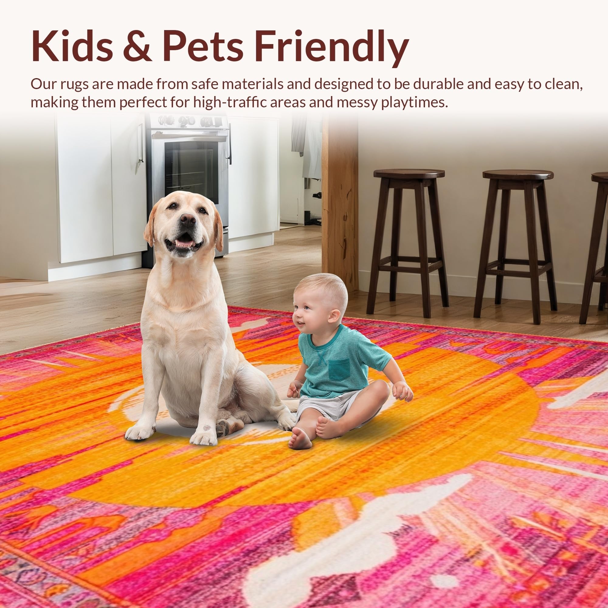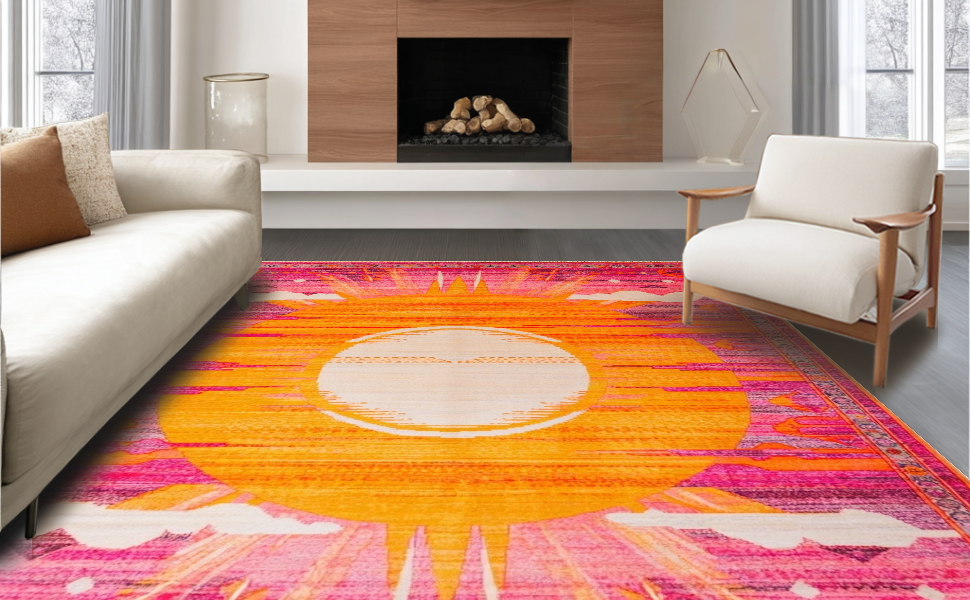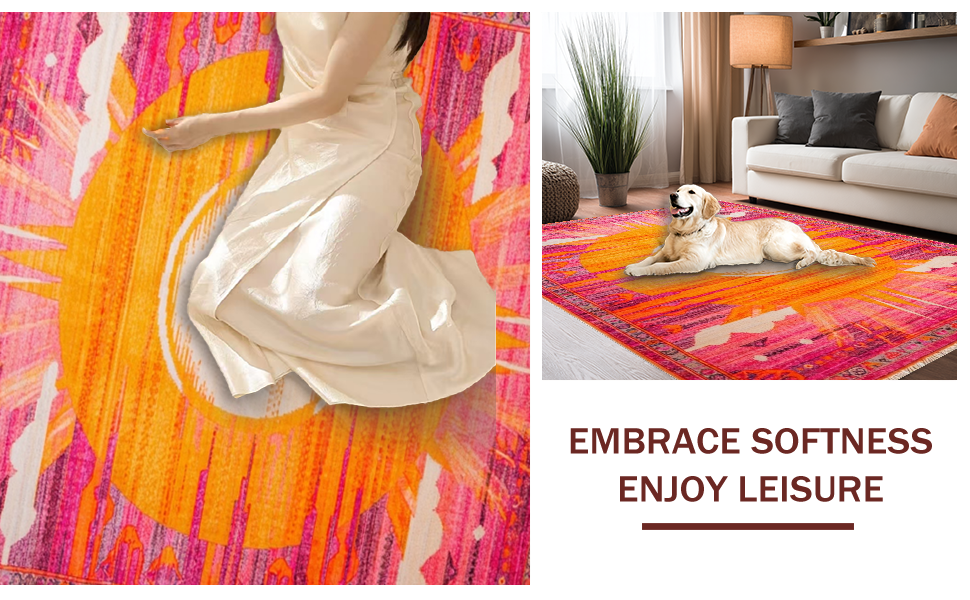 Ultra Soft Area Rug, Non Slip, Stain Resistant, Washable Area Rugs for Living Room, Bedroom, Colorful Retro Geometric Charm(Pink) Overview: