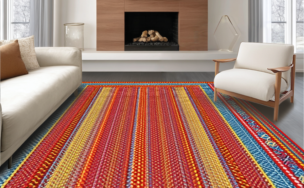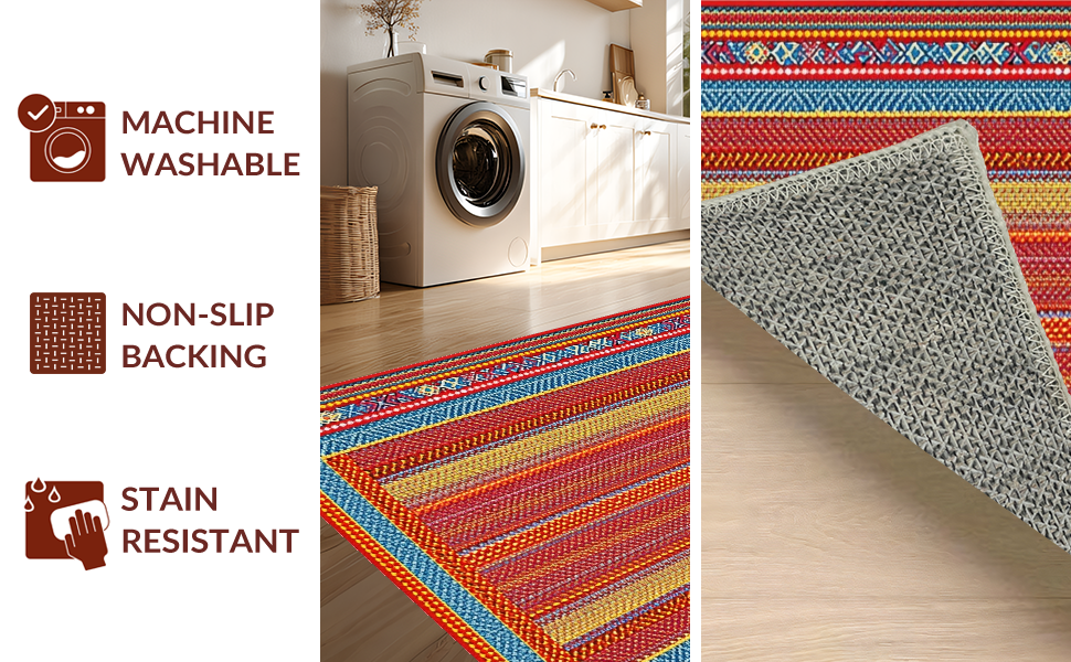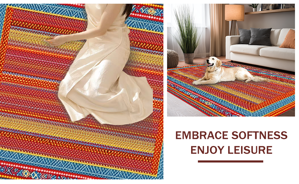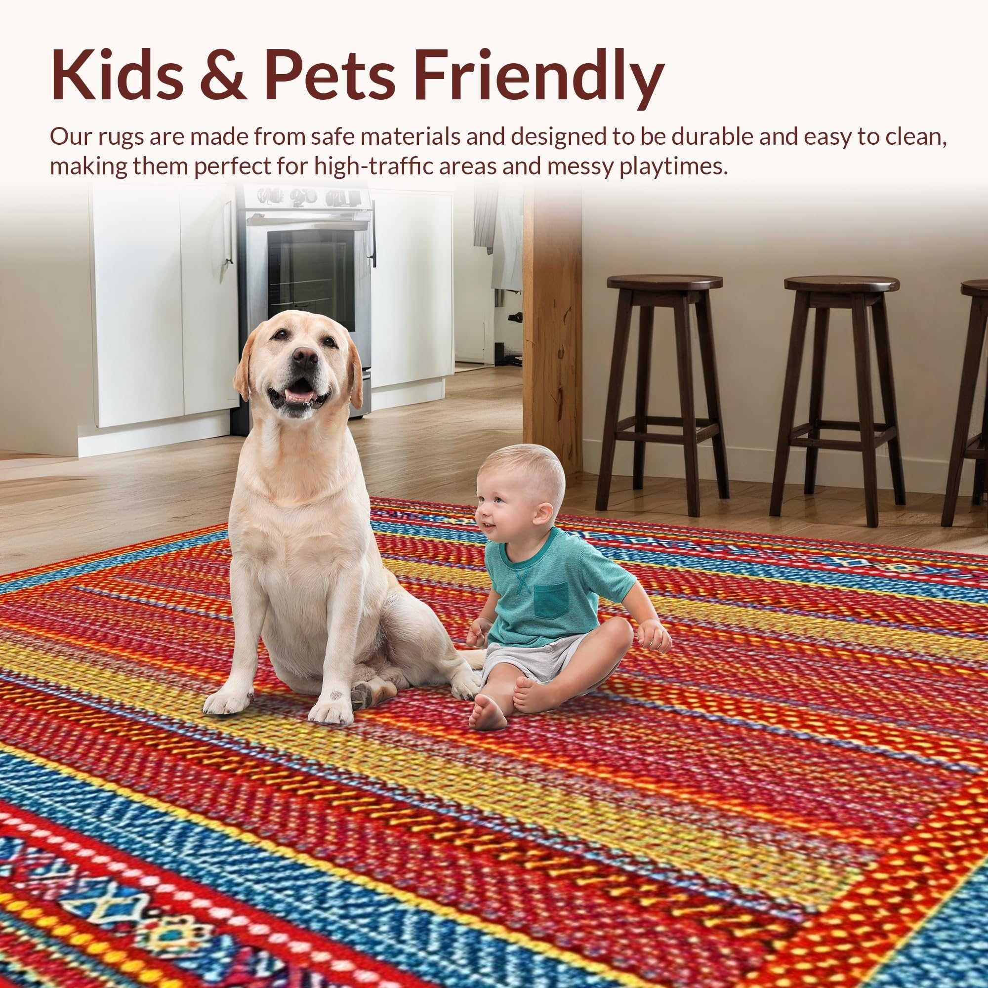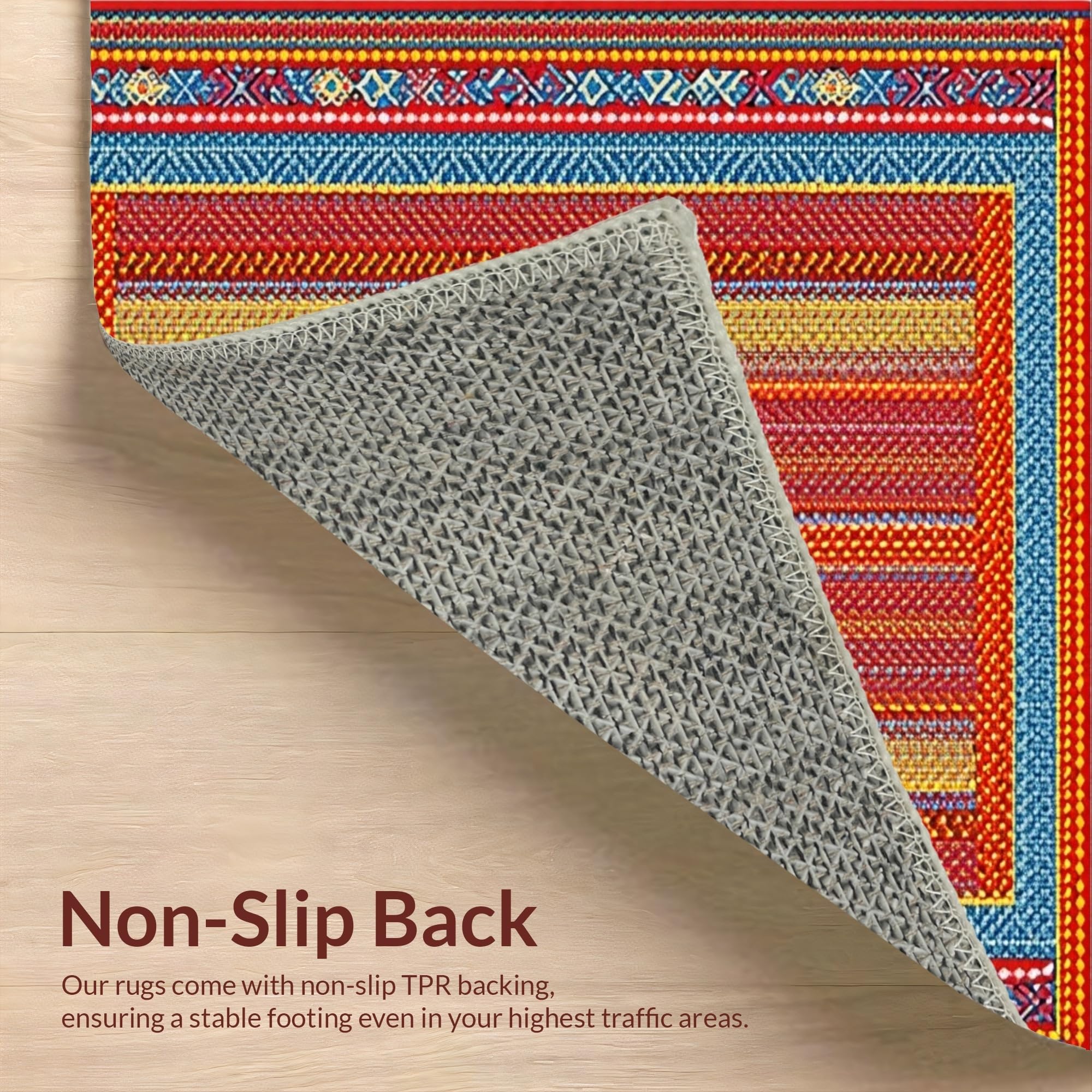 Ultra Soft Area Rug, Non Slip, Stain Resistant, Washable Area Rugs for Living Room, Bedroom, Colorful Rustic Textured Creation(Red) Overview:
