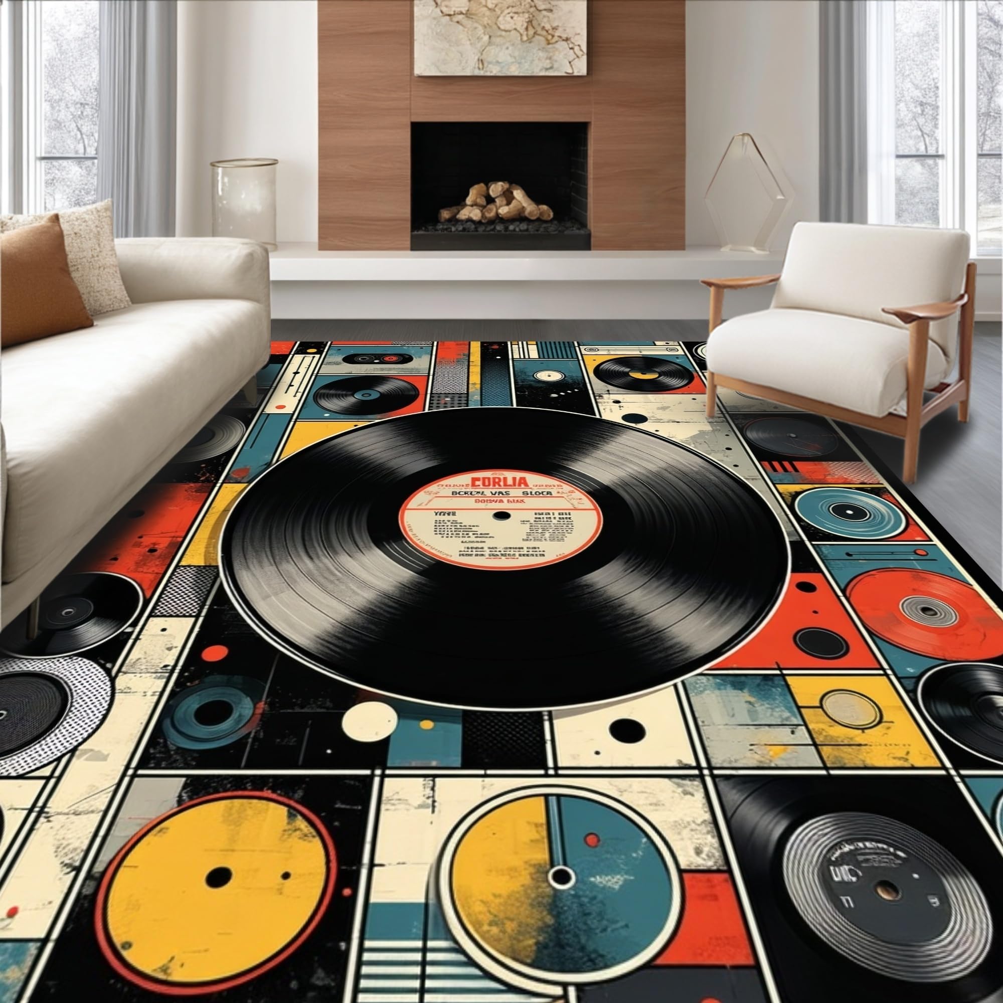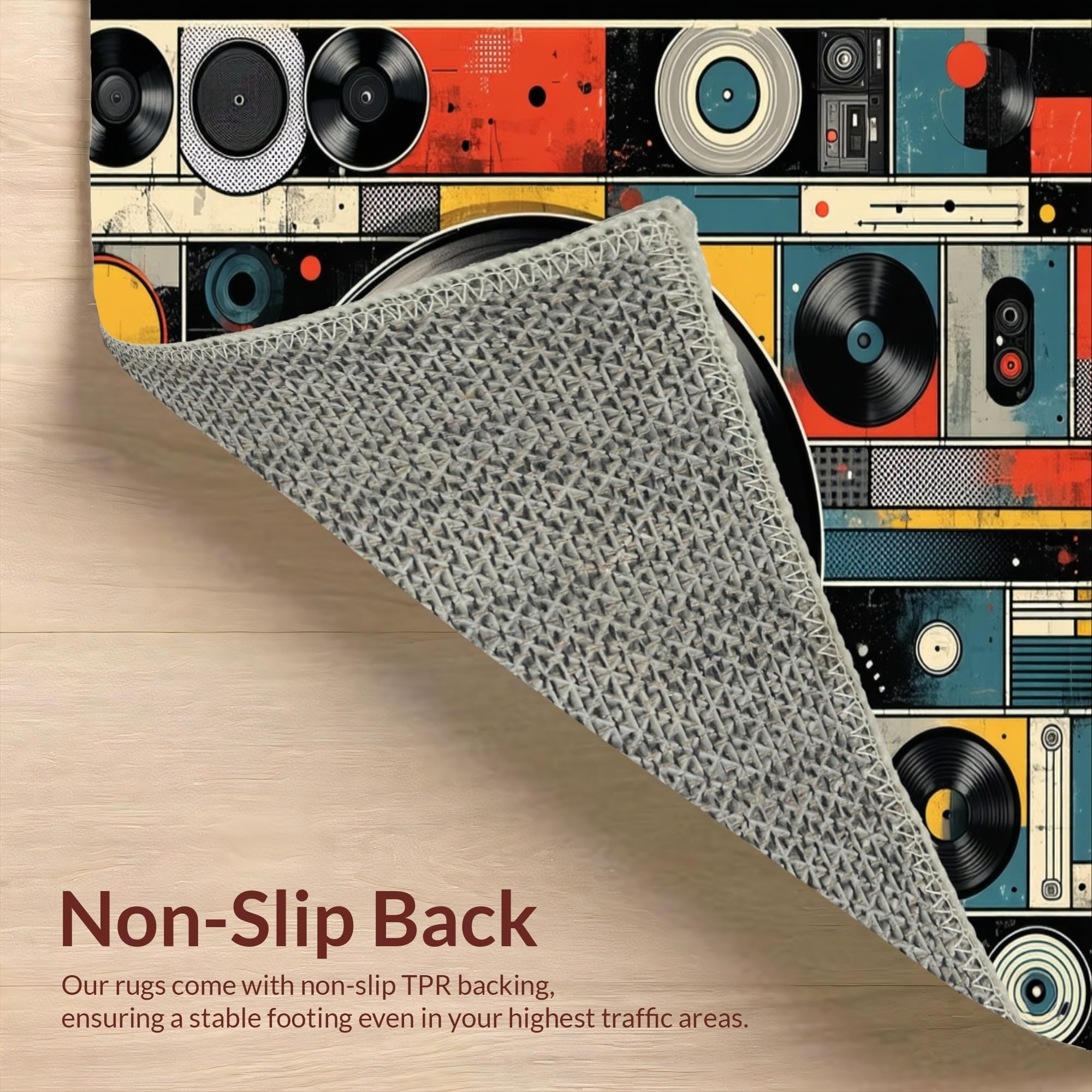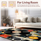 Ultra Soft Area Rug, Non Slip, Stain Resistant, Washable Area Rugs for Living Room, Bedroom, Colorful Semi-Circle Music Motif(Red) Overview: