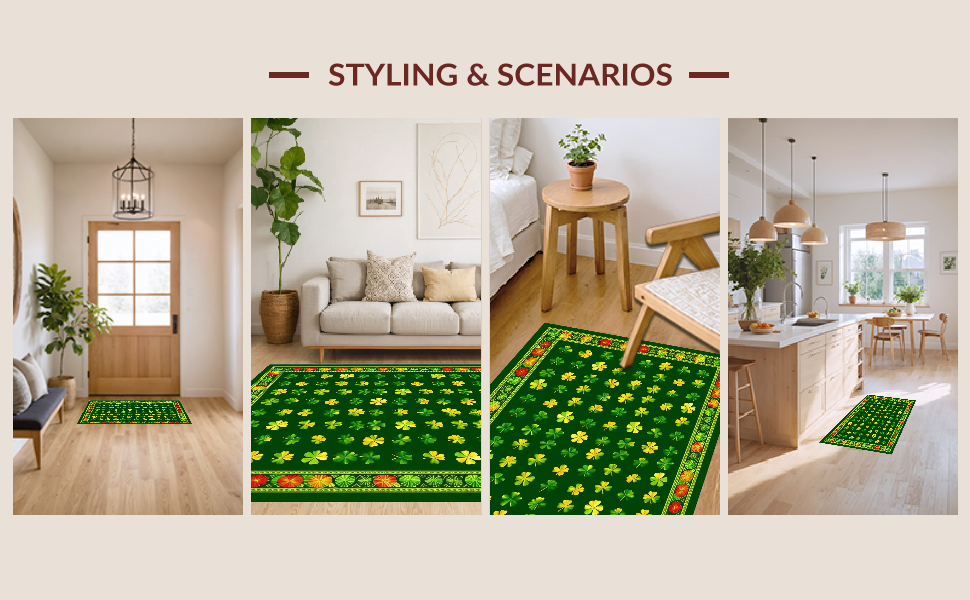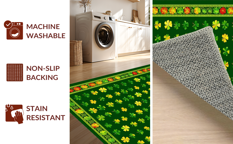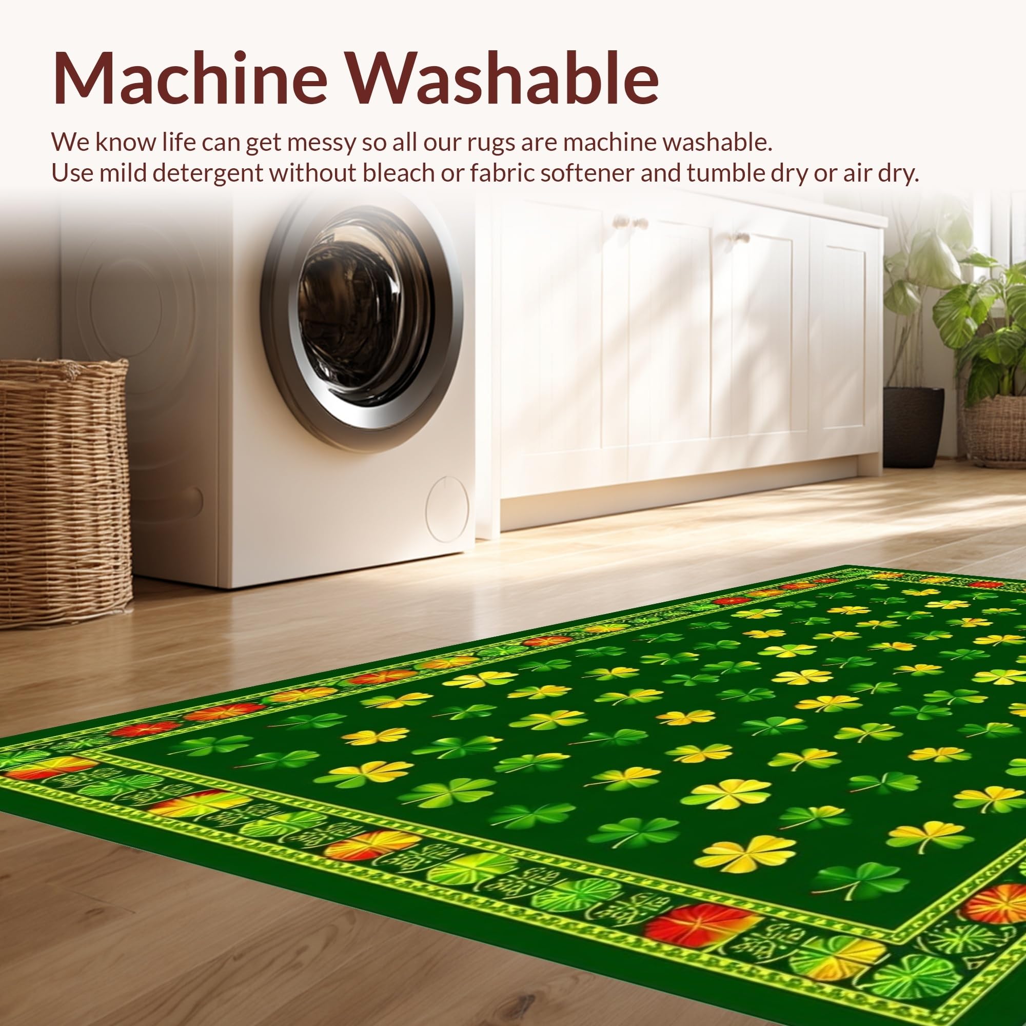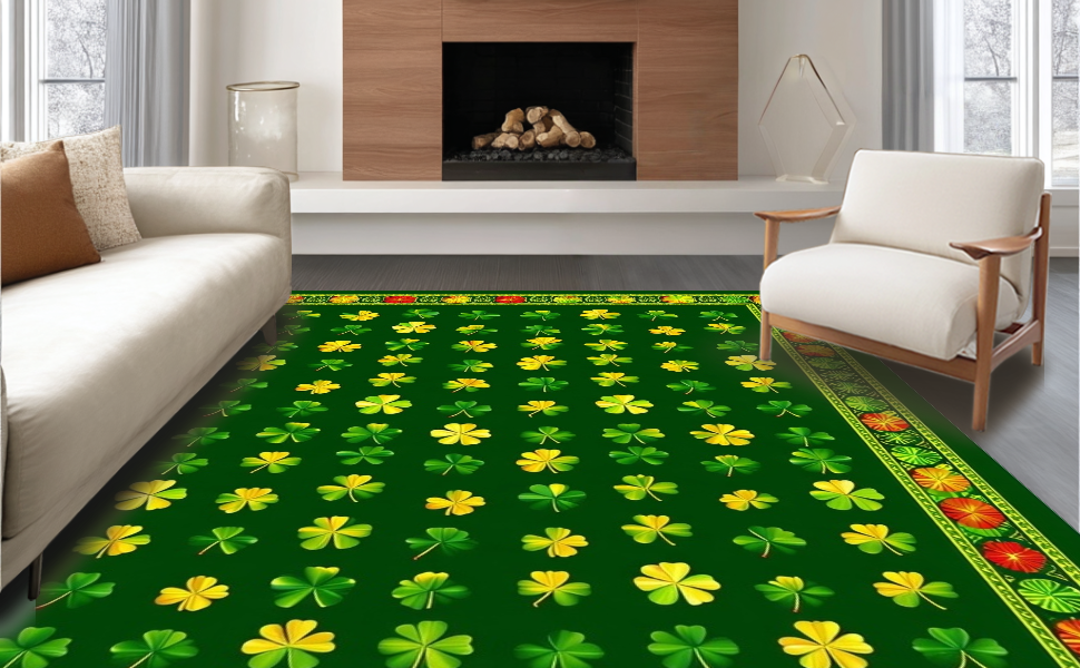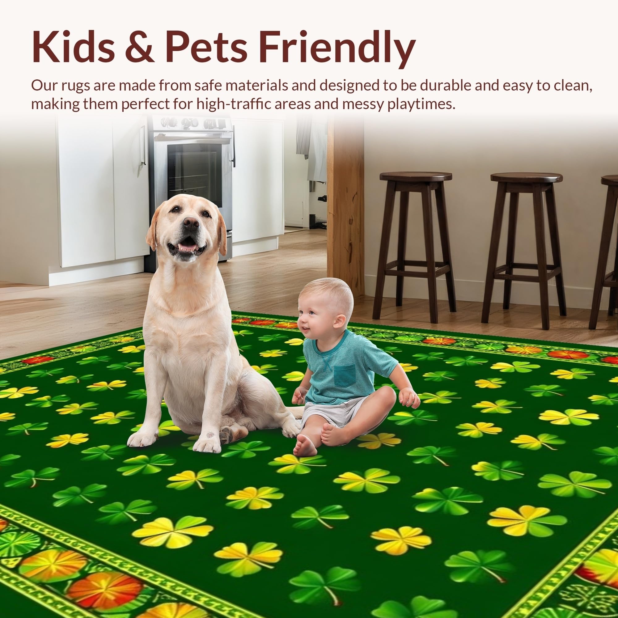 Ultra Soft Area Rug, Non Slip, Stain Resistant, Washable Area Rugs for Living Room, Bedroom, Colorful St. Patrick's Day Imagery(Green) Overview: