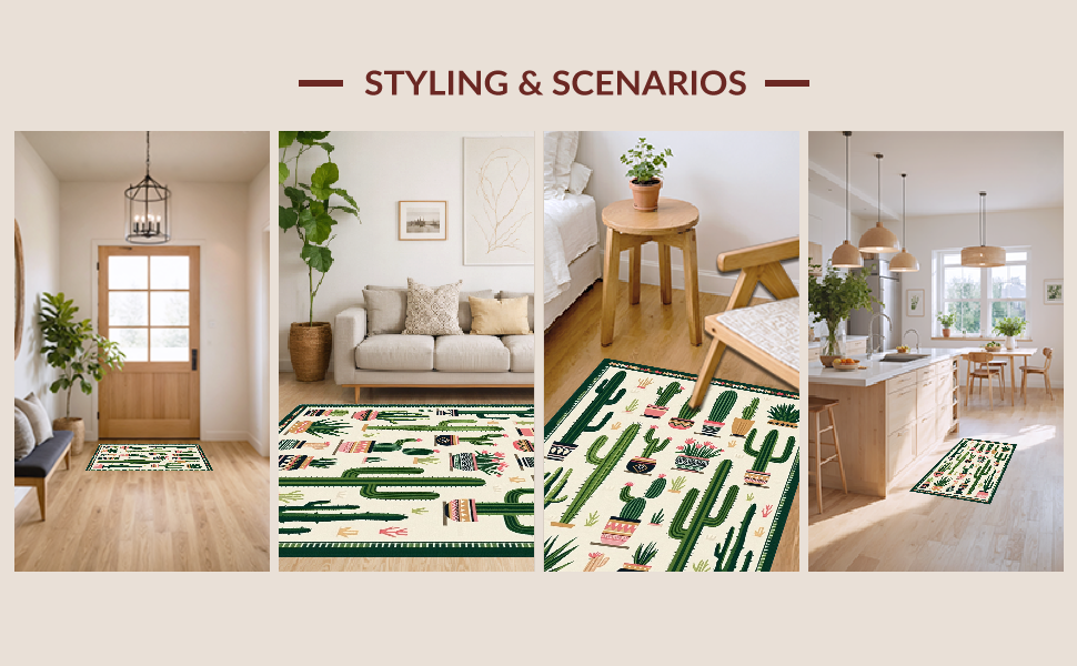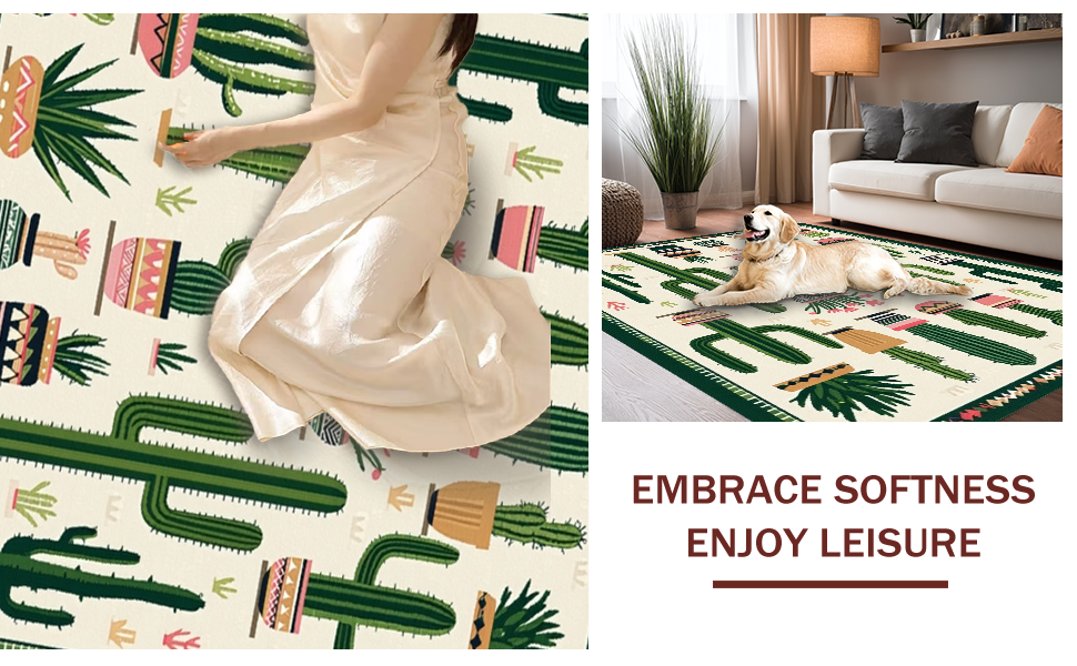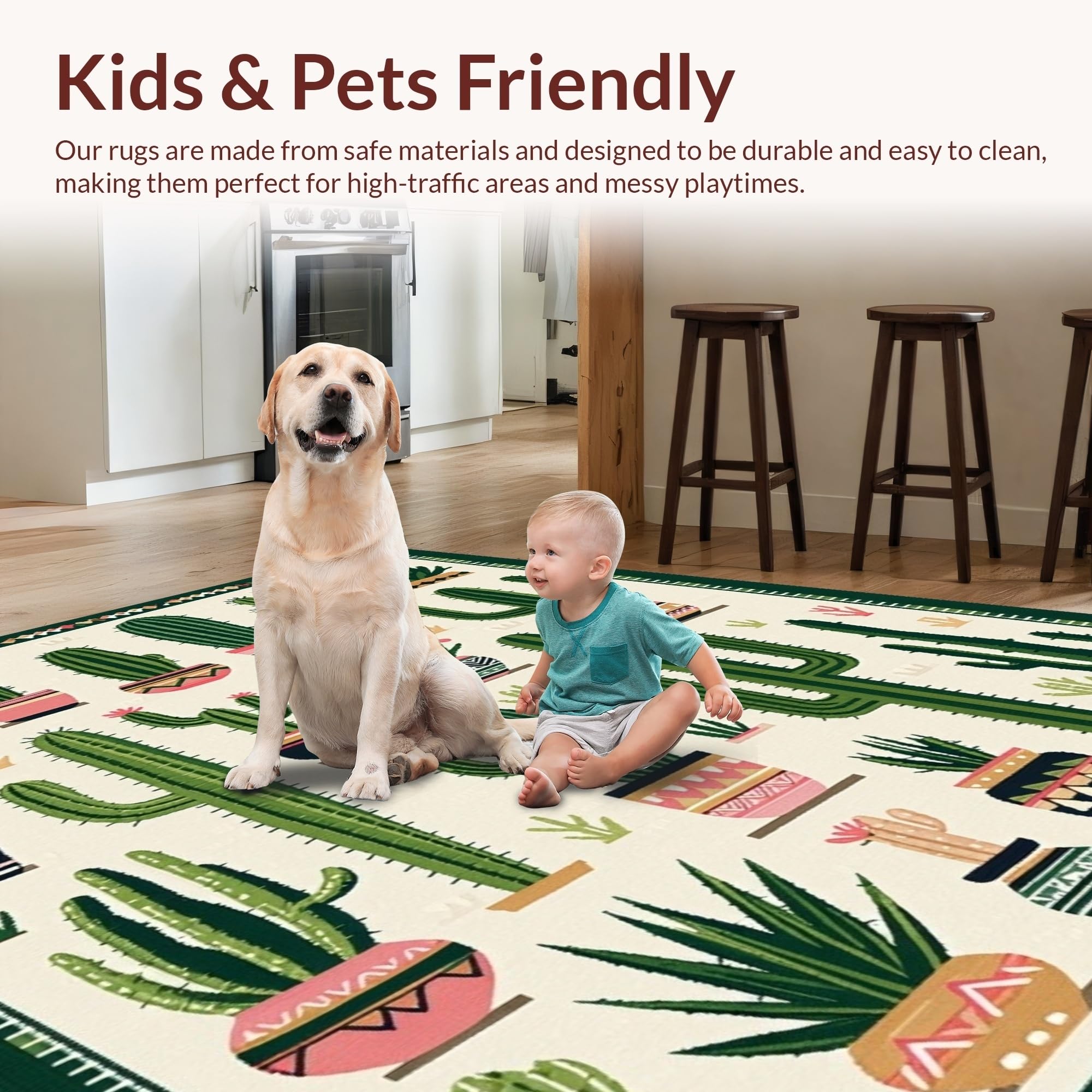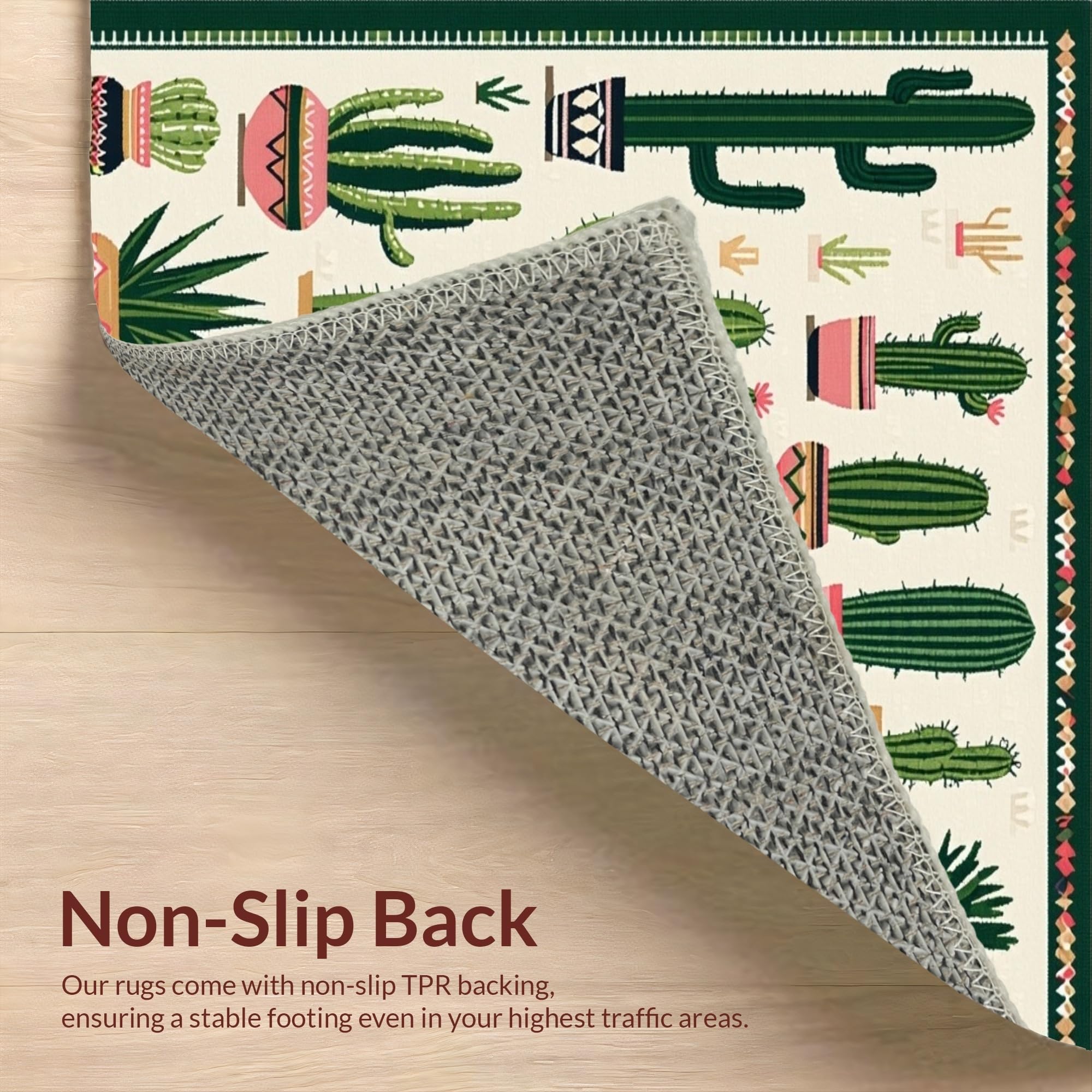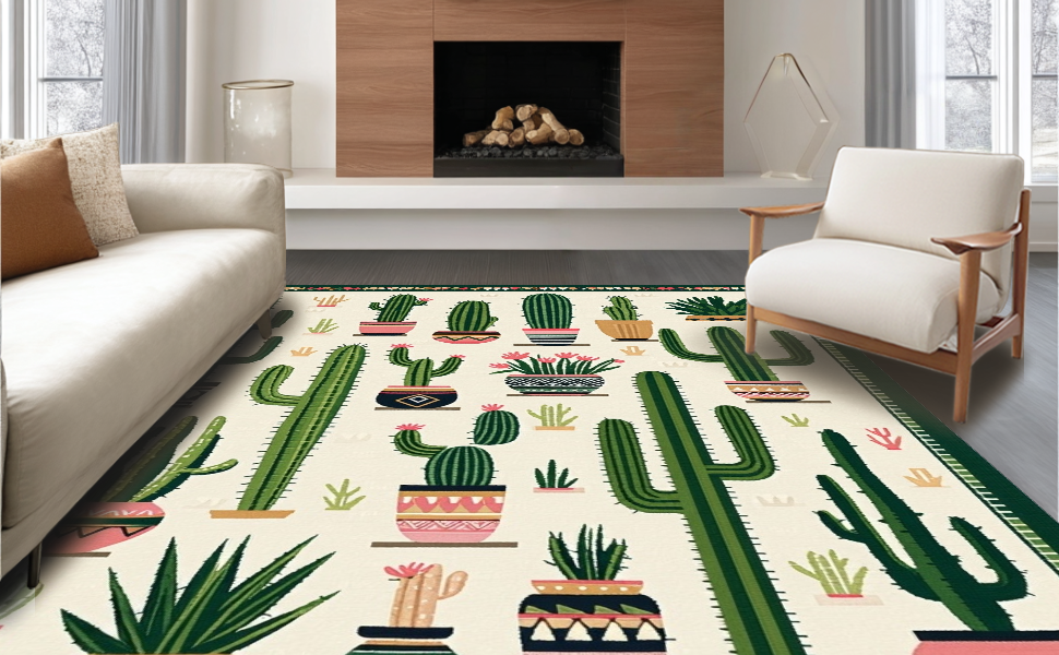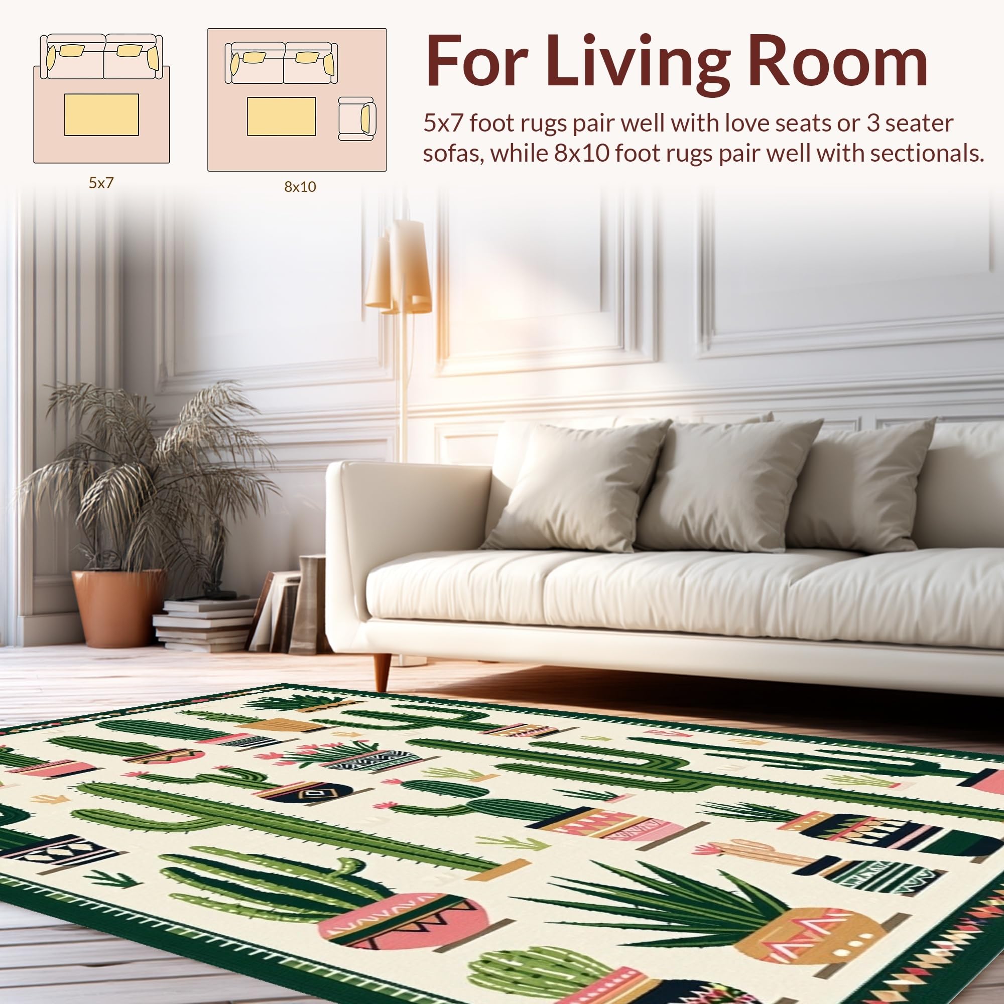 Ultra Soft Area Rug, Non Slip, Stain Resistant, Washable Area Rugs for Living Room, Bedroom, Colorful Summery Desert Motif(Ivory) Overview: