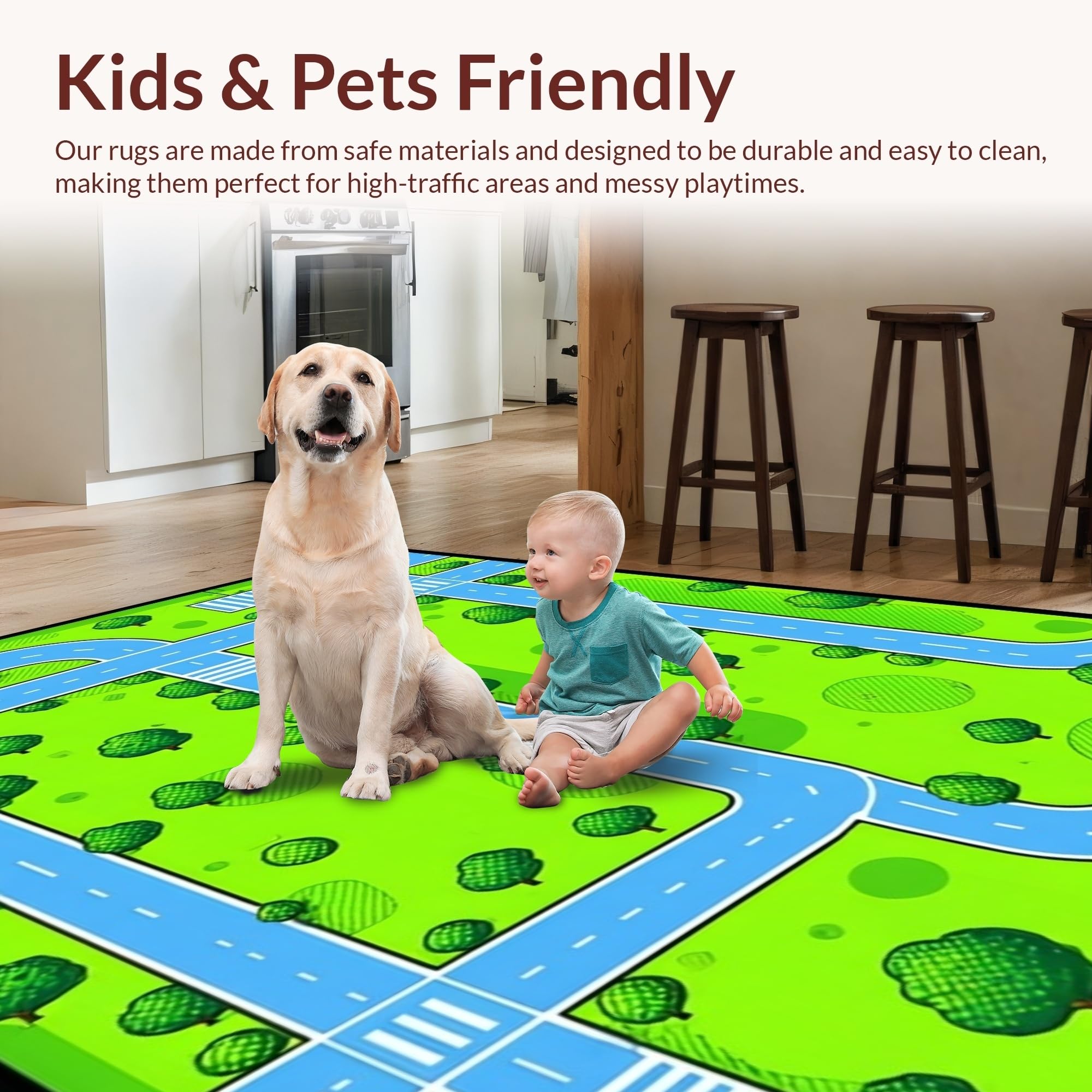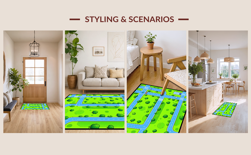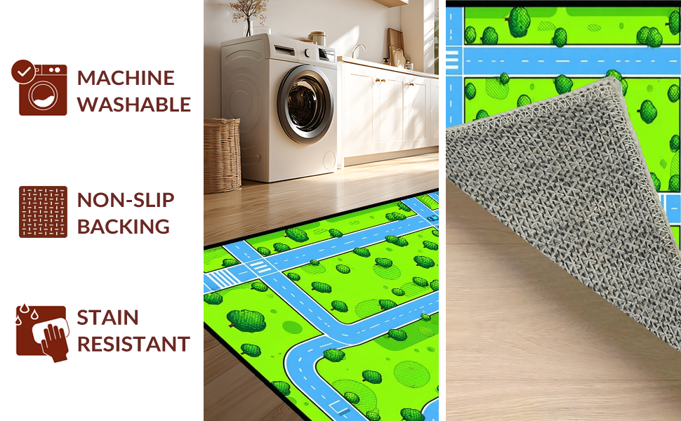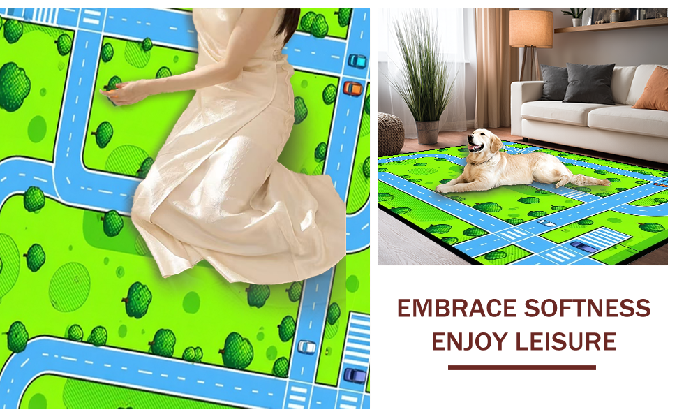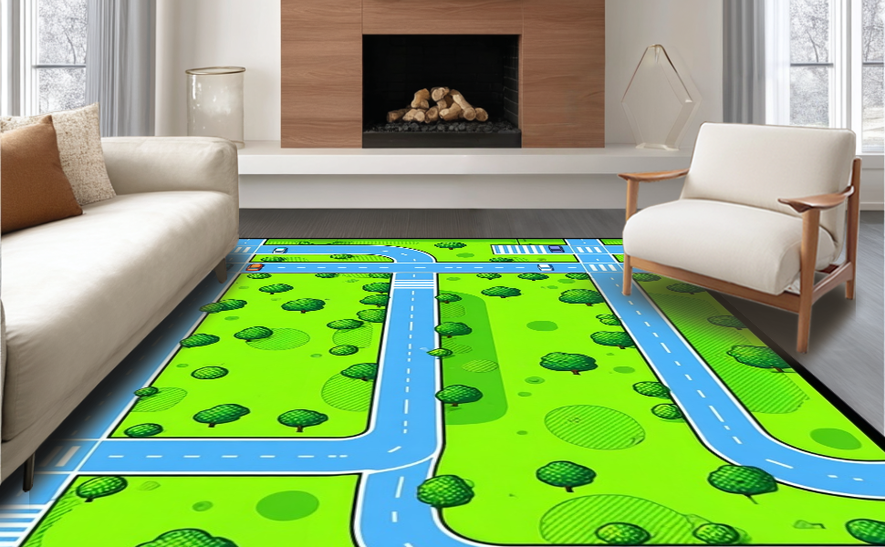 Ultra Soft Area Rug, Non Slip, Stain Resistant, Washable Area Rugs for Living Room, Bedroom, Colorful Traffic Map Illustration(Green) Overview: