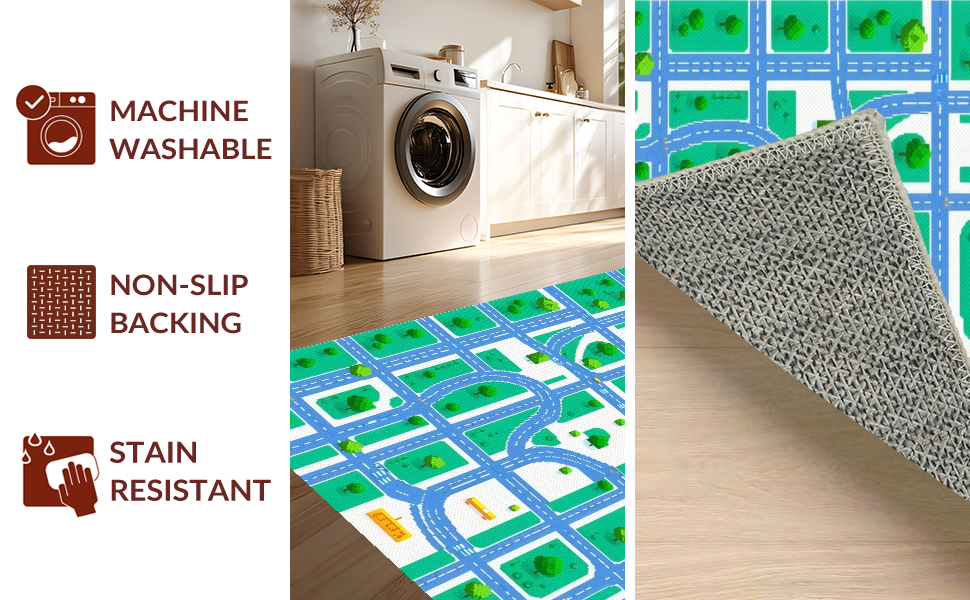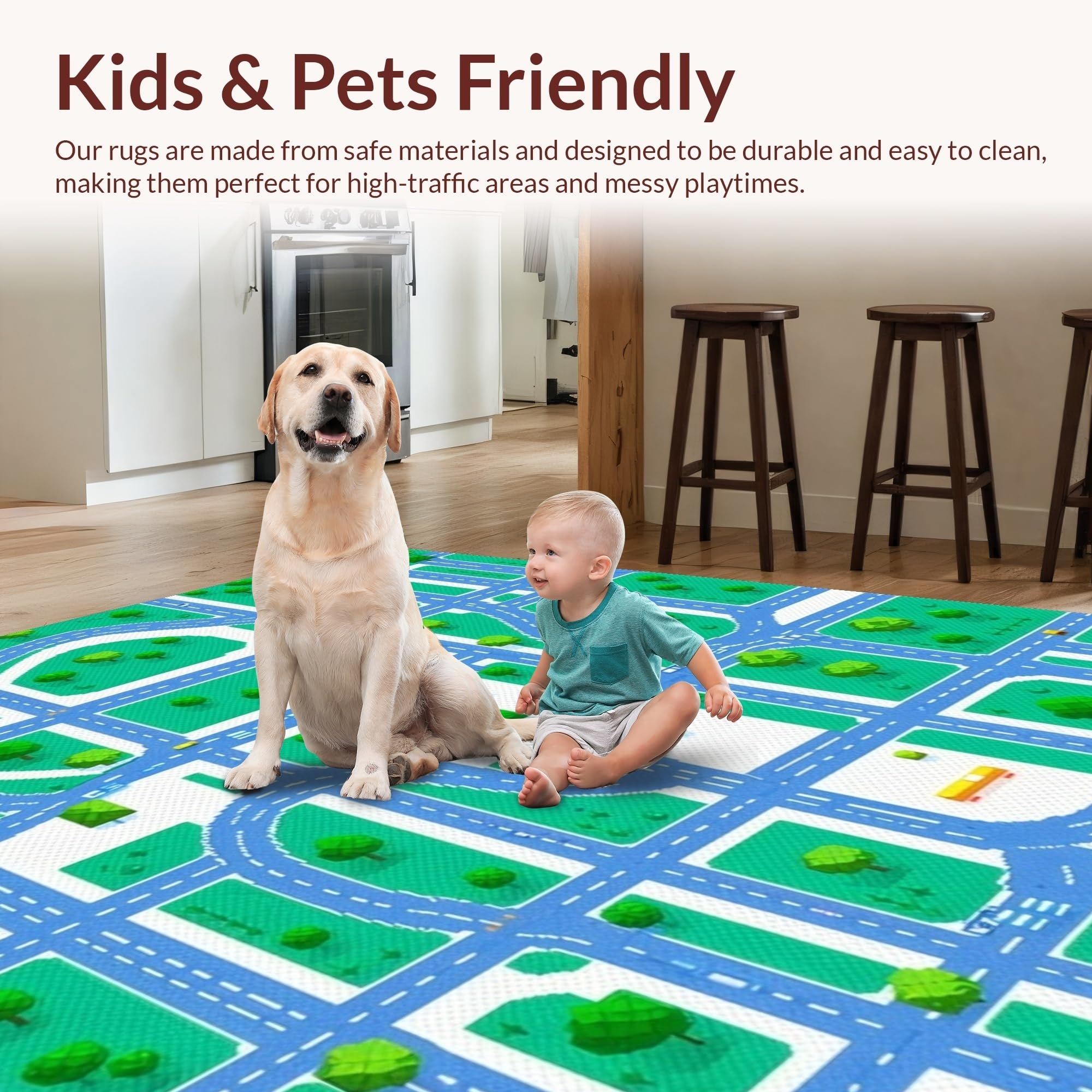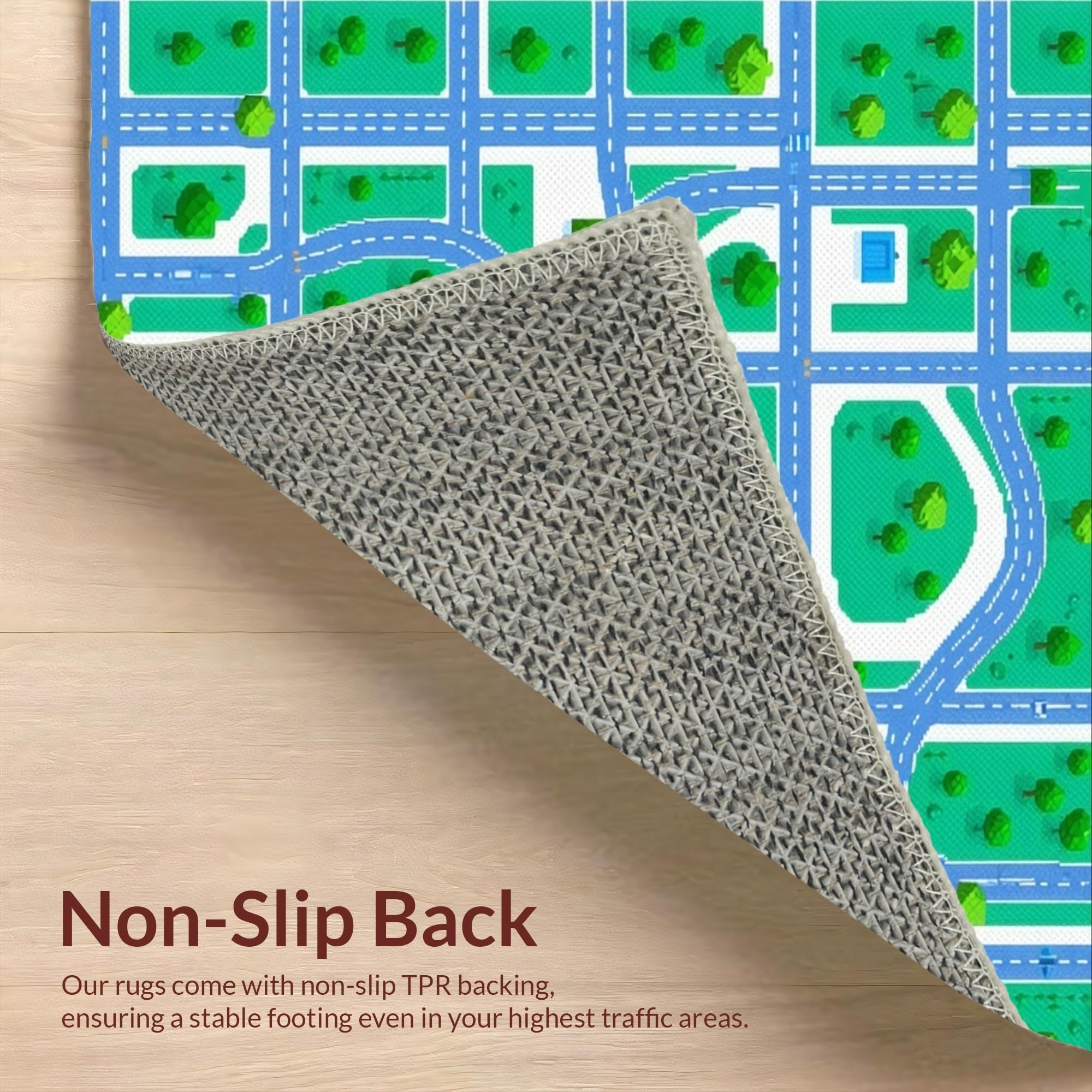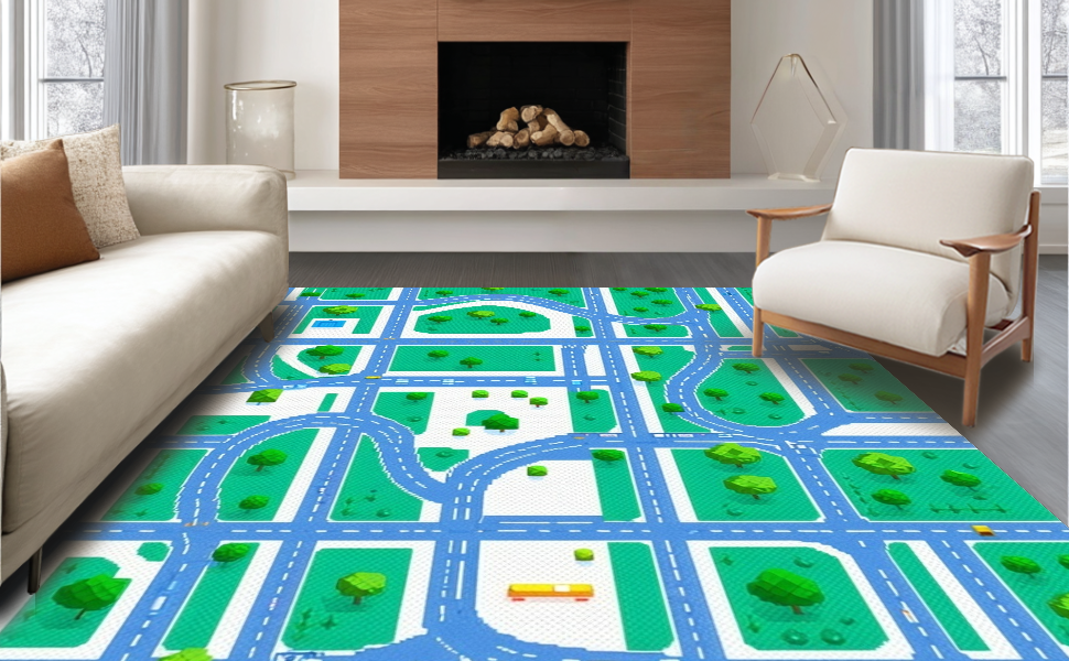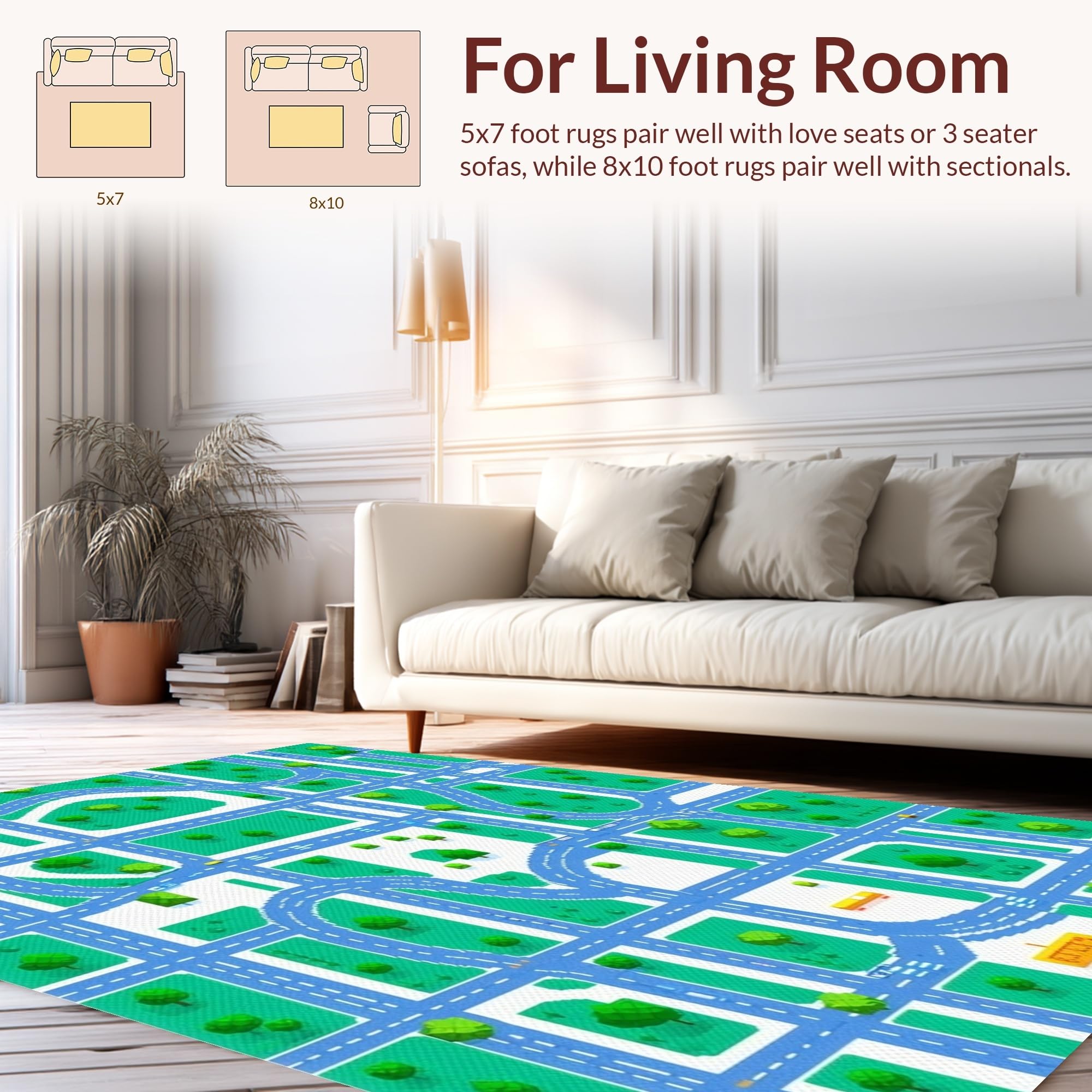 Ultra Soft Area Rug, Non Slip, Stain Resistant, Washable Area Rugs for Living Room, Bedroom, Colorful Traffic-Themed Learning Rug(Blue) Overview: