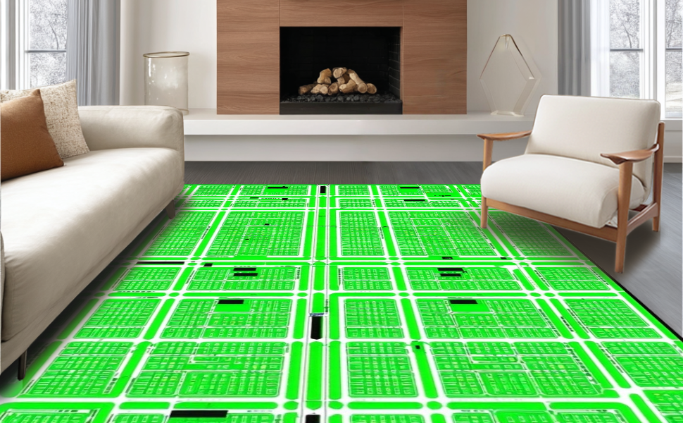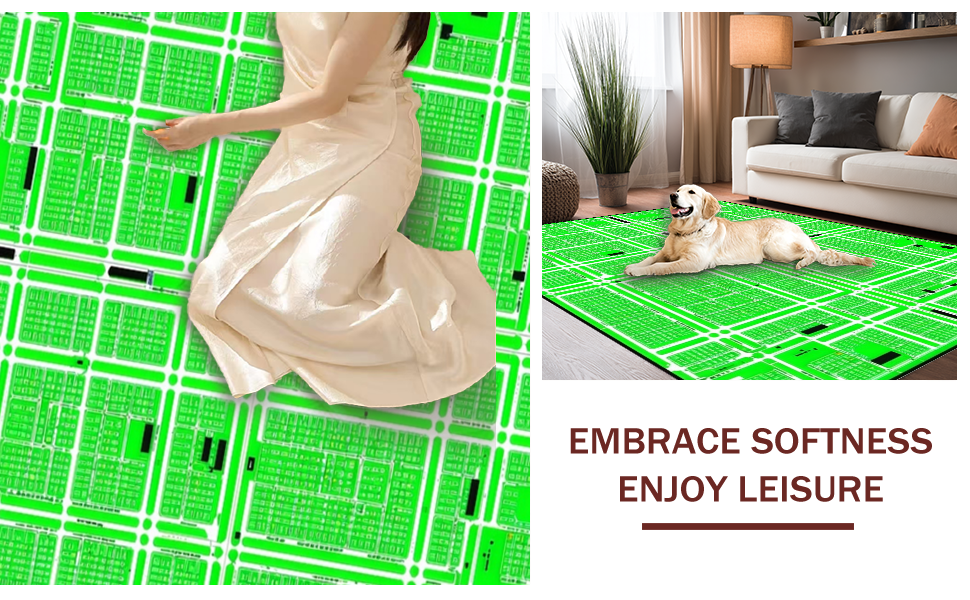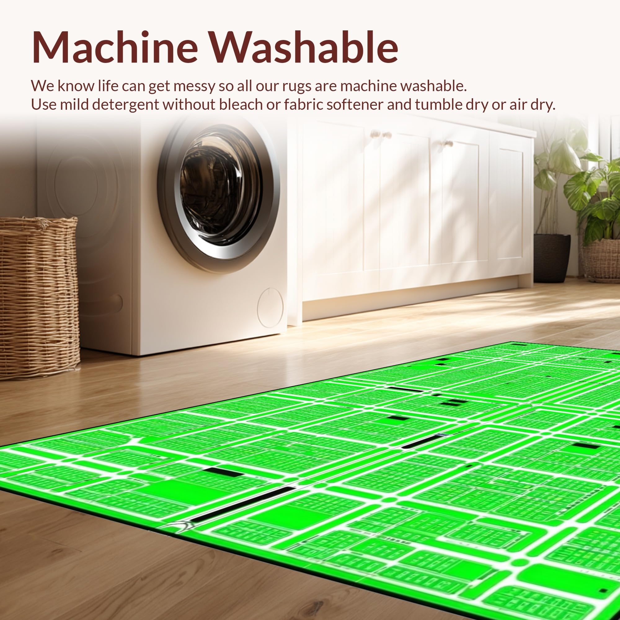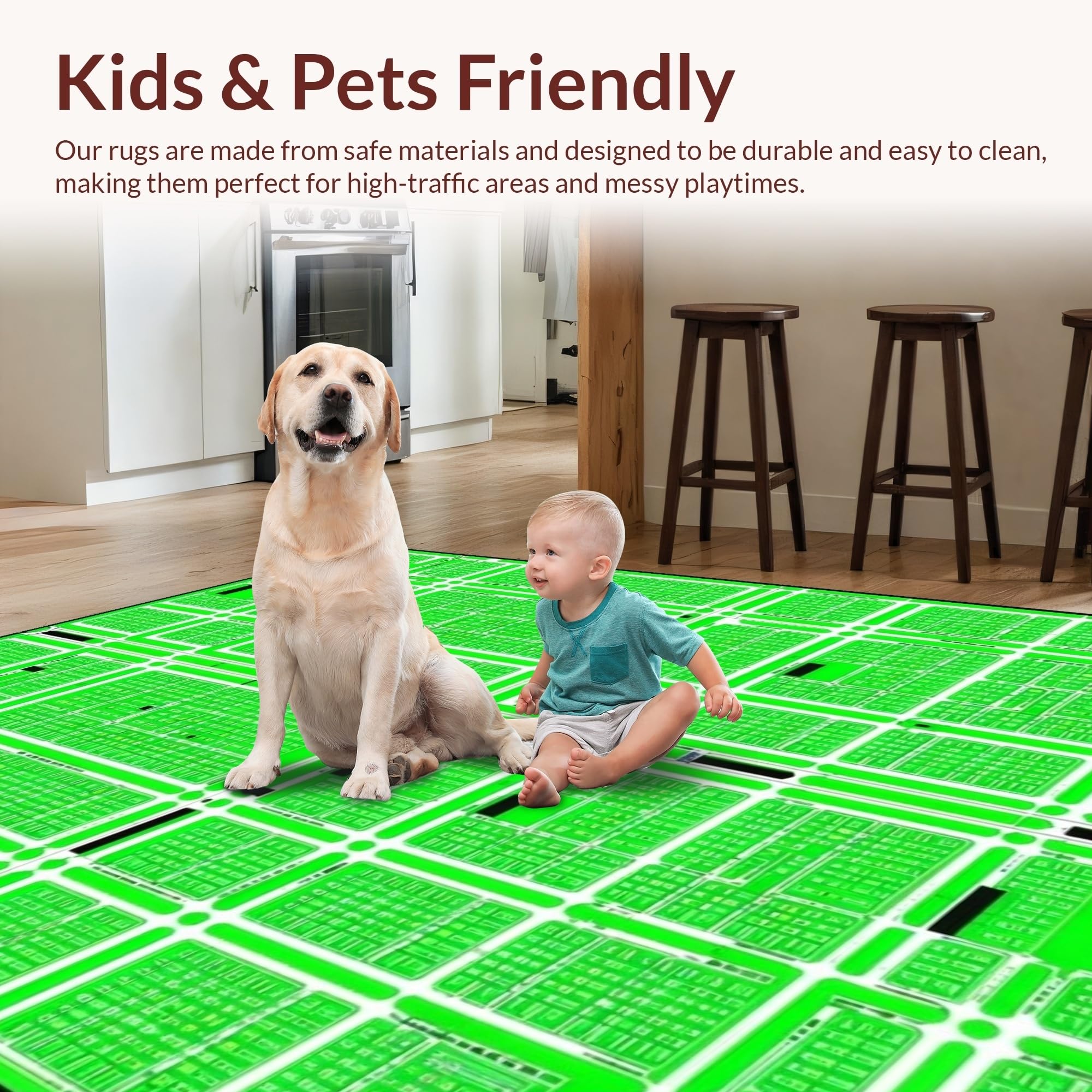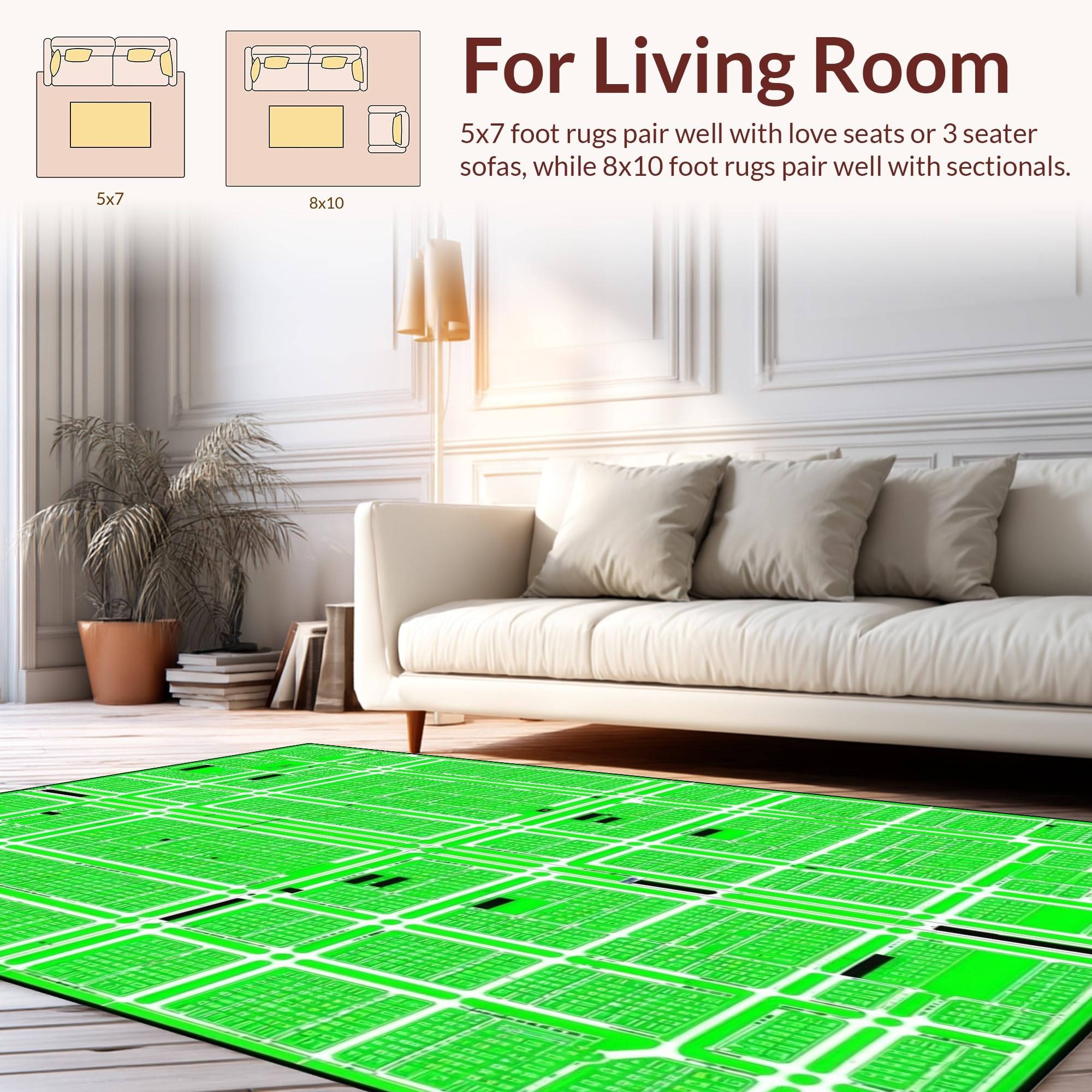 Ultra Soft Area Rug, Non Slip, Stain Resistant, Washable Area Rugs for Living Room, Bedroom, Colorful Urban Landscape Motif(Green) Overview: