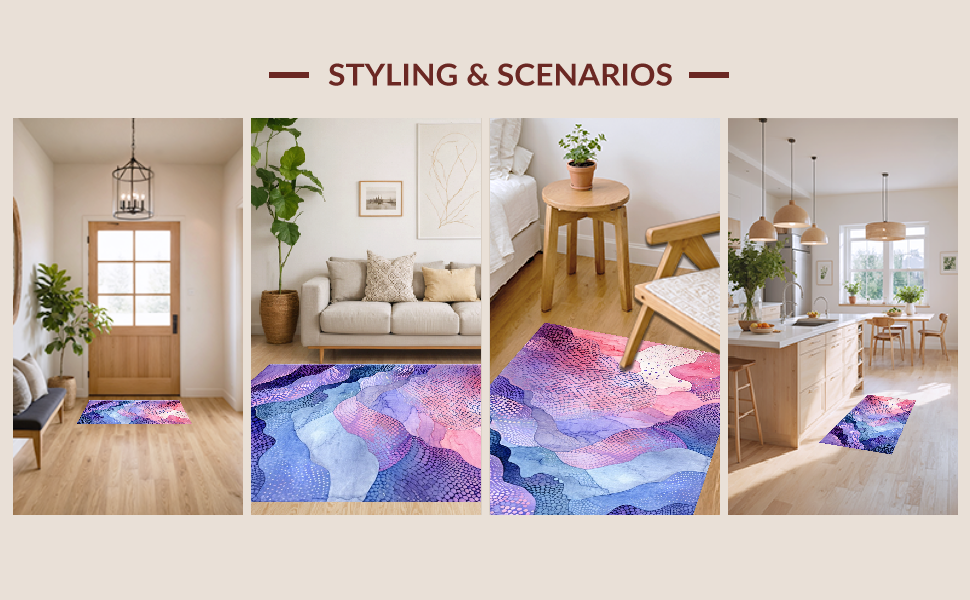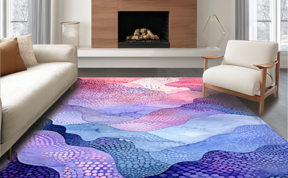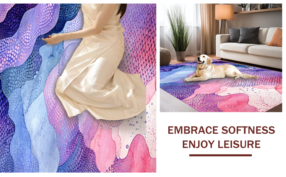 Ultra Soft Area Rug, Non Slip, Stain Resistant, Washable Area Rugs for Living Room, Bedroom, Colorful Watercolor Fishtail Motif(Purple) Overview: