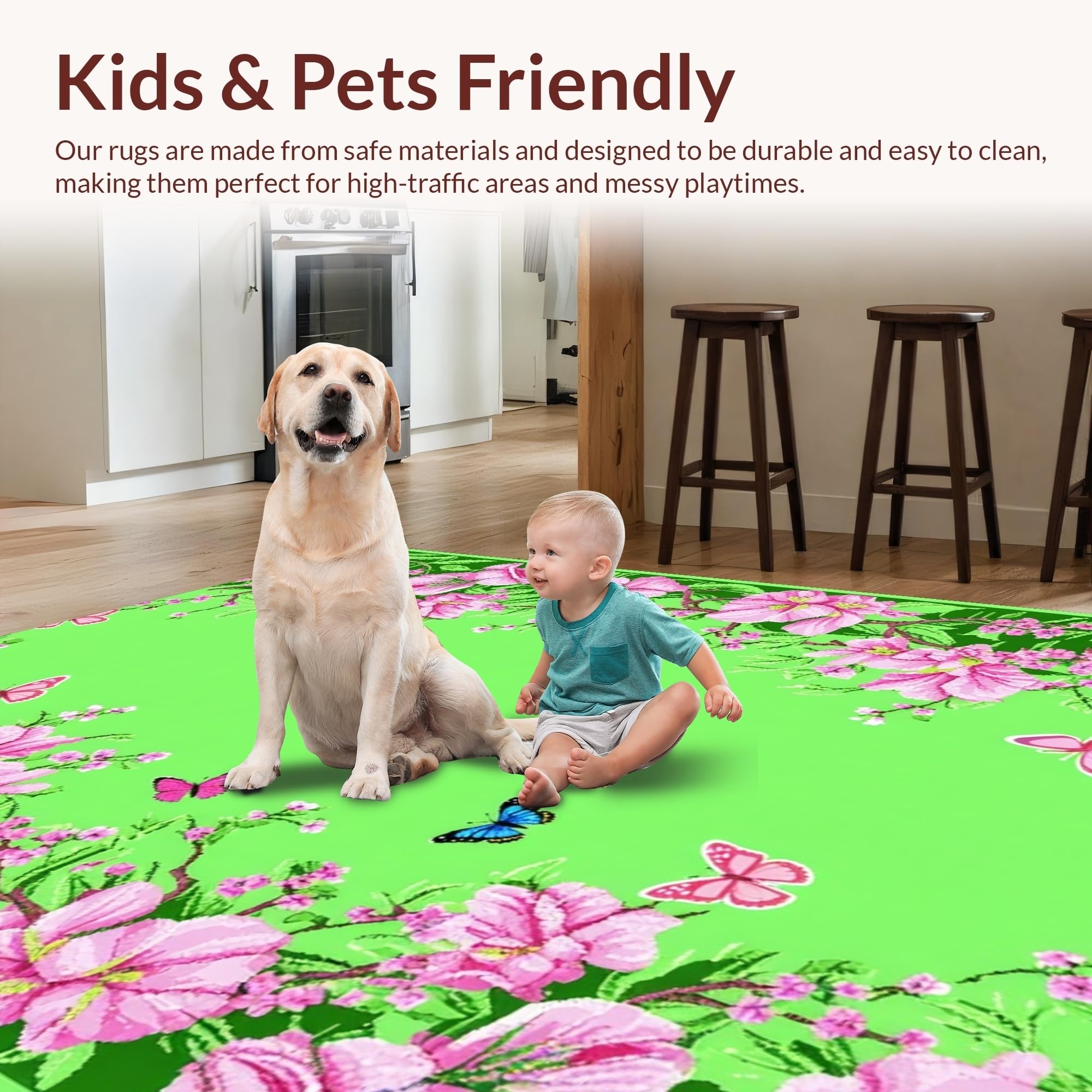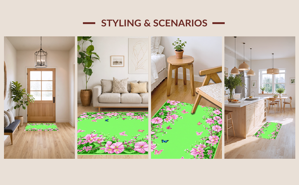 Ultra Soft Area Rug, Non Slip, Stain Resistant, Washable Area Rugs for Living Room, Bedroom, Colorful Whimsical Floral Composition(Green) Overview: