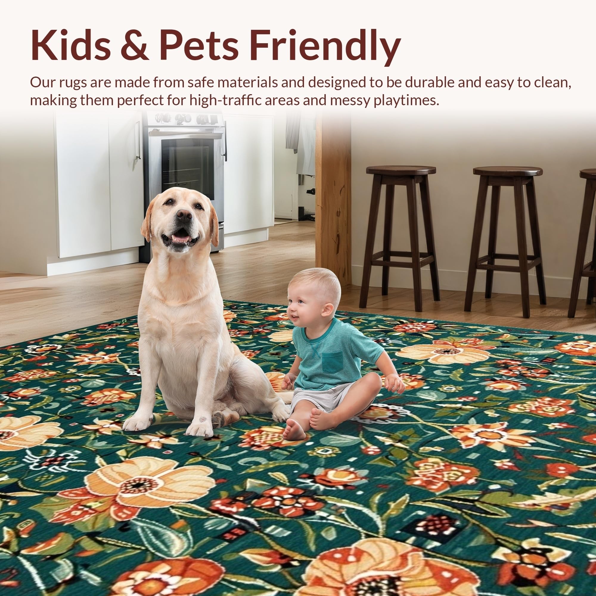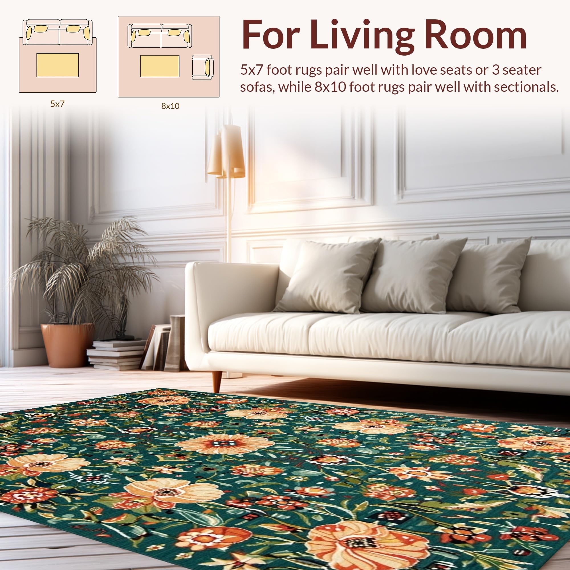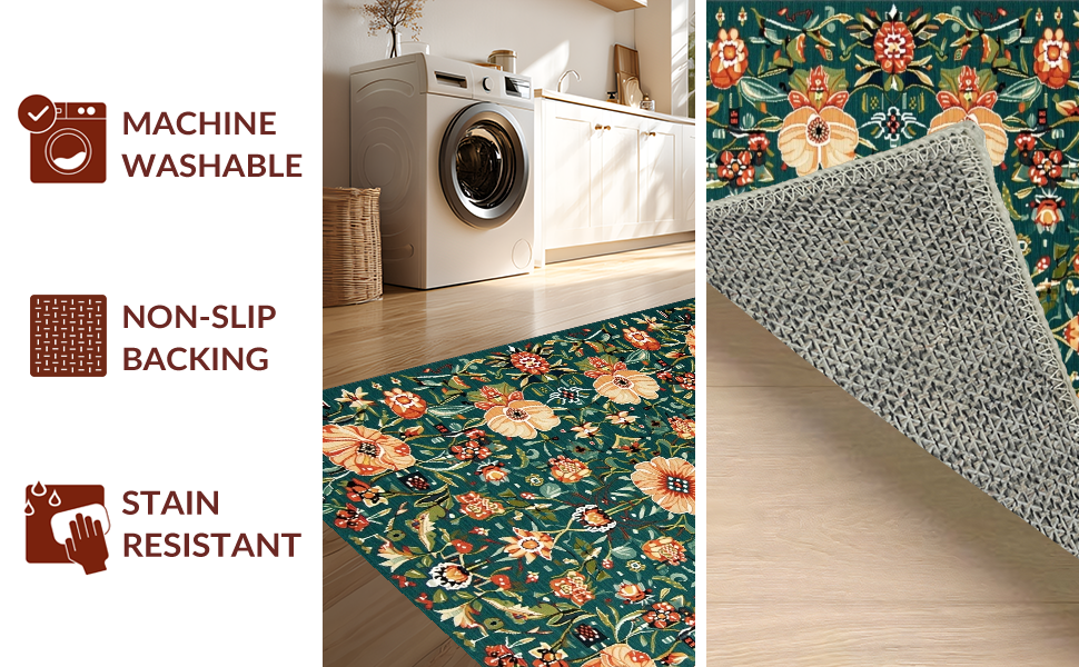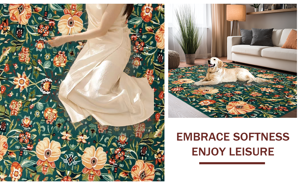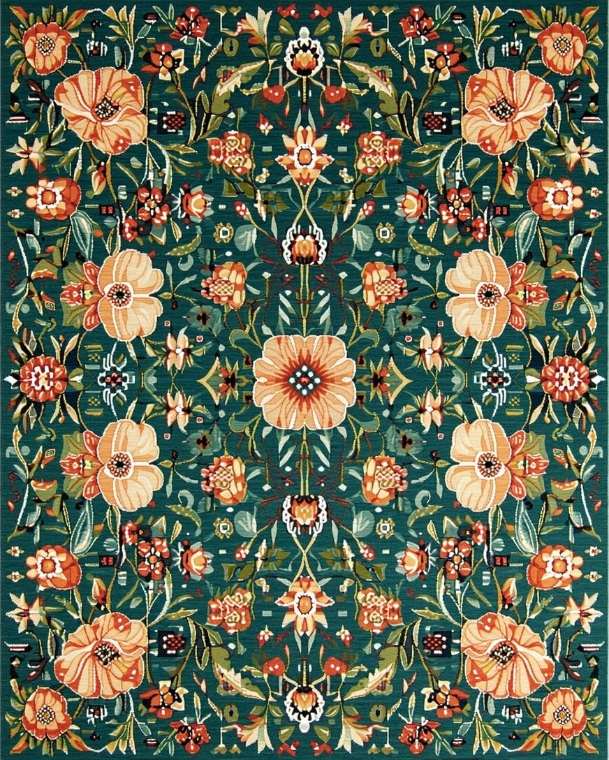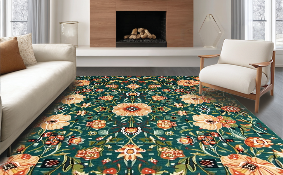 Ultra Soft Area Rug, Non Slip, Stain Resistant, Washable Area Rugs for Living Room, Bedroom, Colorful Whimsical Flower Arrangement(Green) Overview: