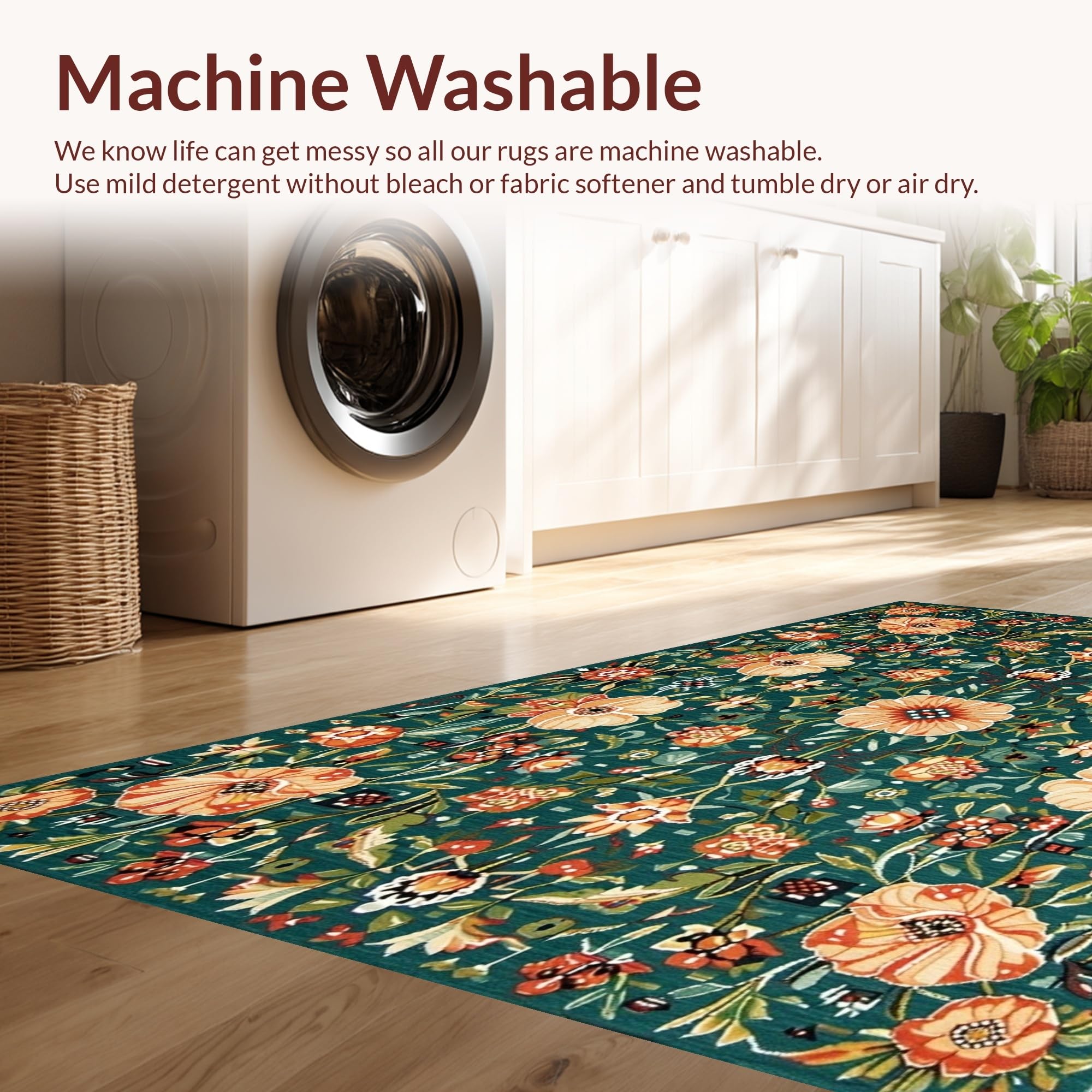 - Machine Washable: Our rugs can be easily thrown in the wash machine.
