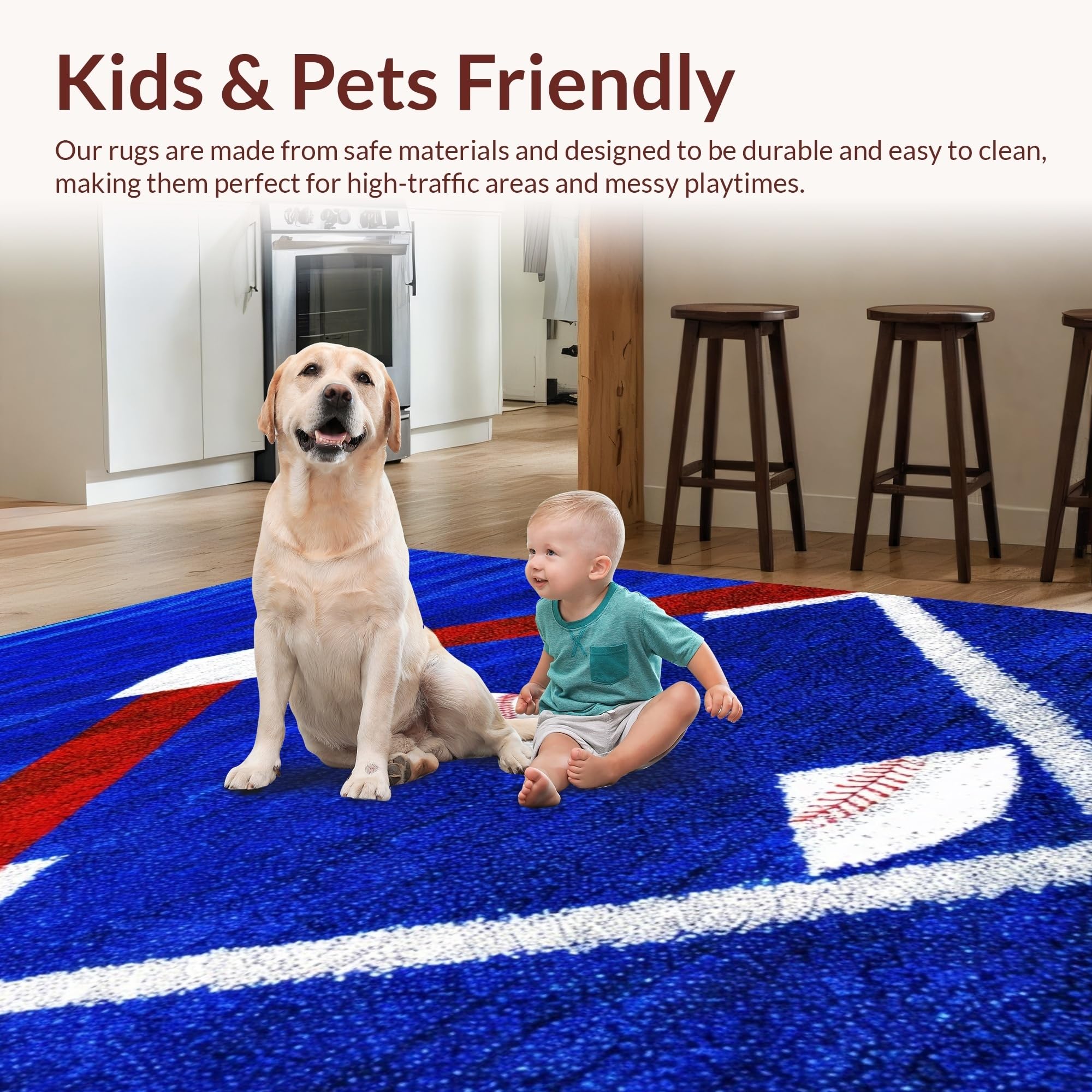 Ultra Soft Area Rug, Non Slip, Stain Resistant, Washable Area Rugs for Living Room, Bedroom, Colorful Whimsical Game-Inspired Artwork(Blue) Overview: