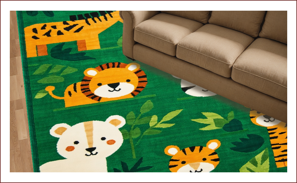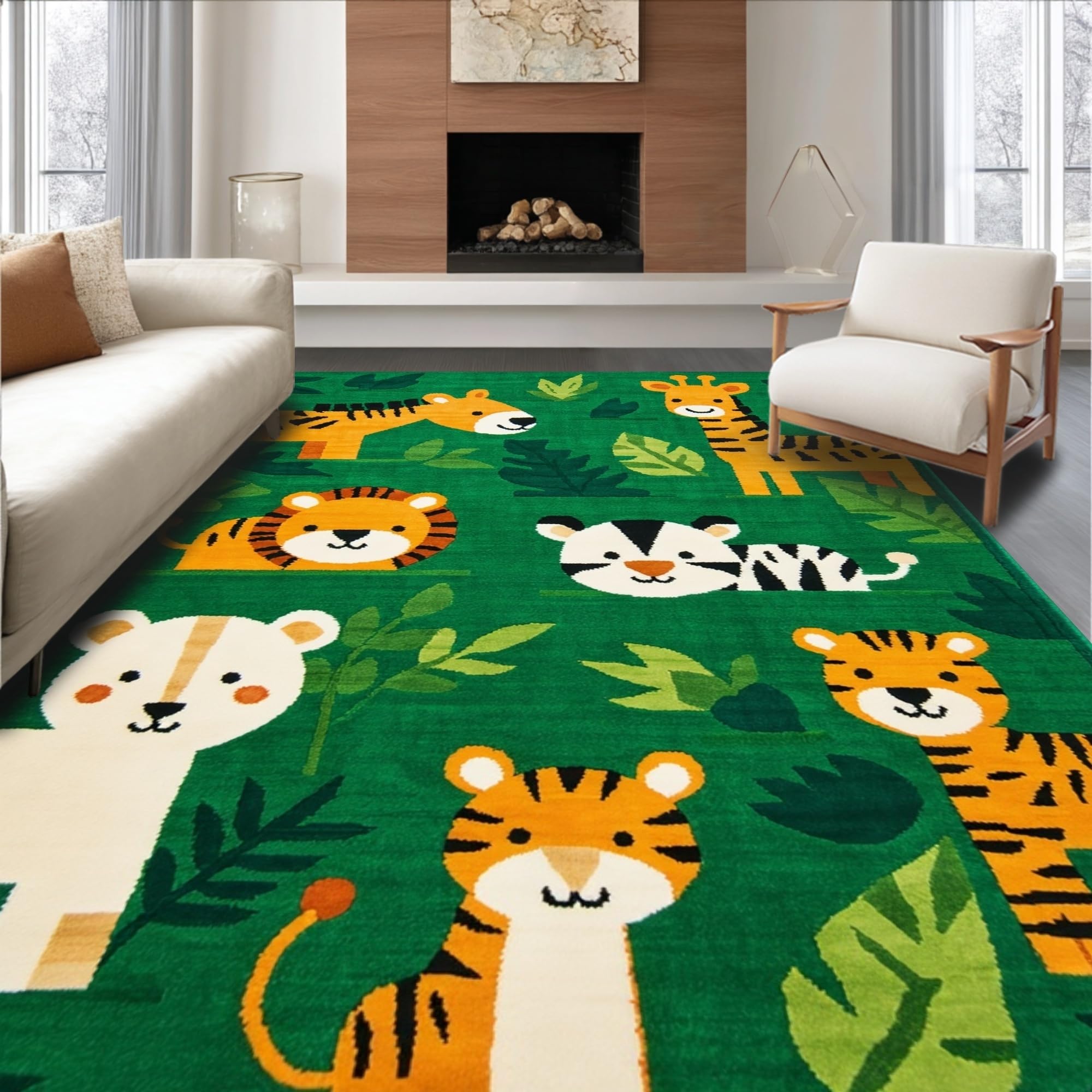 Ultra Soft Area Rug, Non Slip, Stain Resistant, Washable Area Rugs for Living Room, Bedroom, Colorful Whimsical Wildlife Design(Green) Overview: