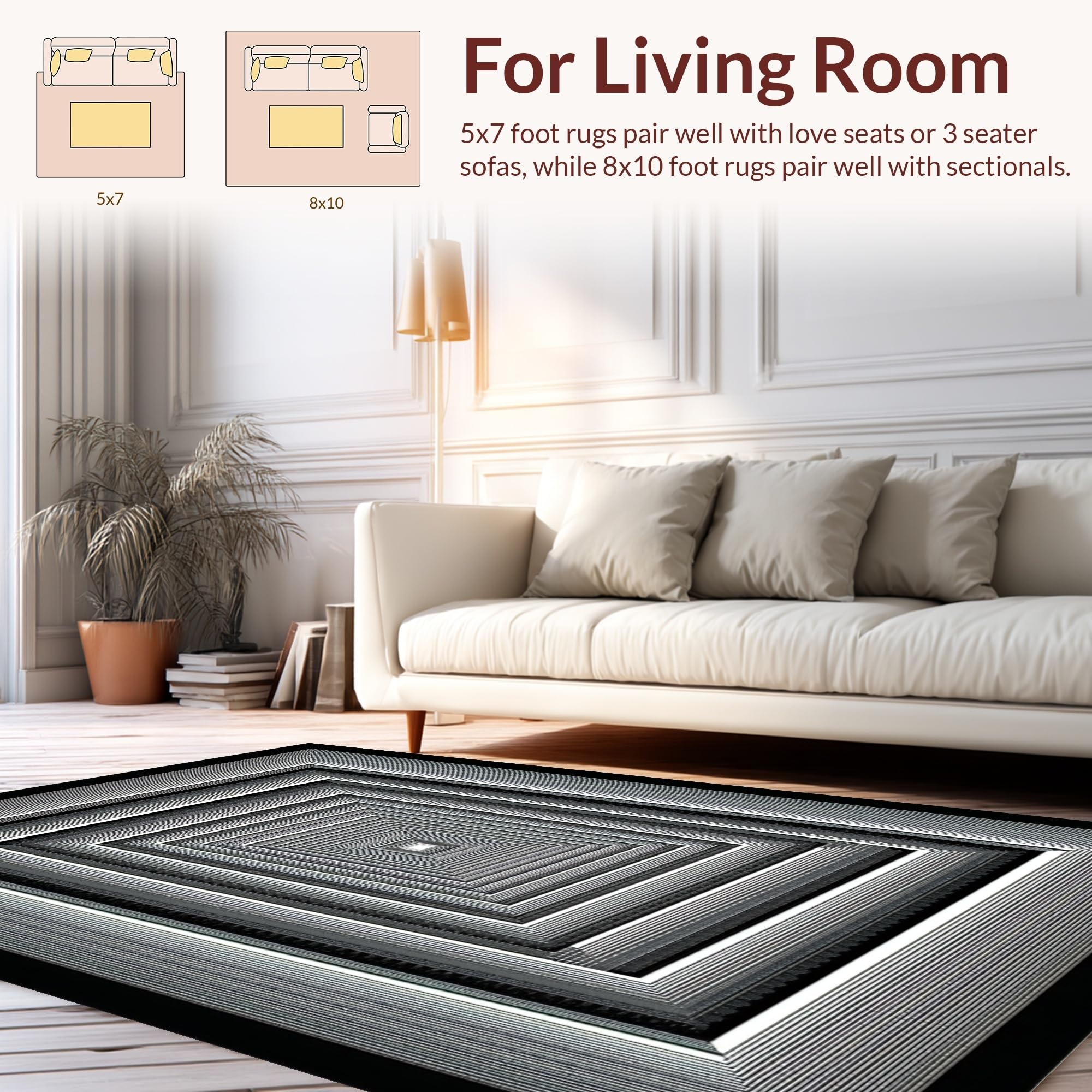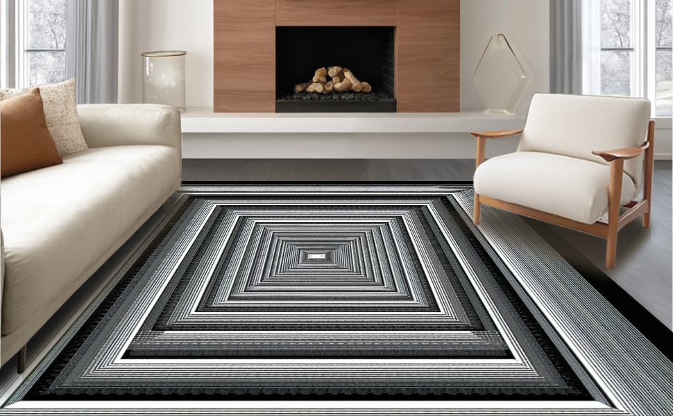 Ultra Soft Area Rug, Non Slip, Stain Resistant, Washable Area Rugs for Living Room, Bedroom, Contemporary 3D Geometric Floor Piece(Gray) Overview: