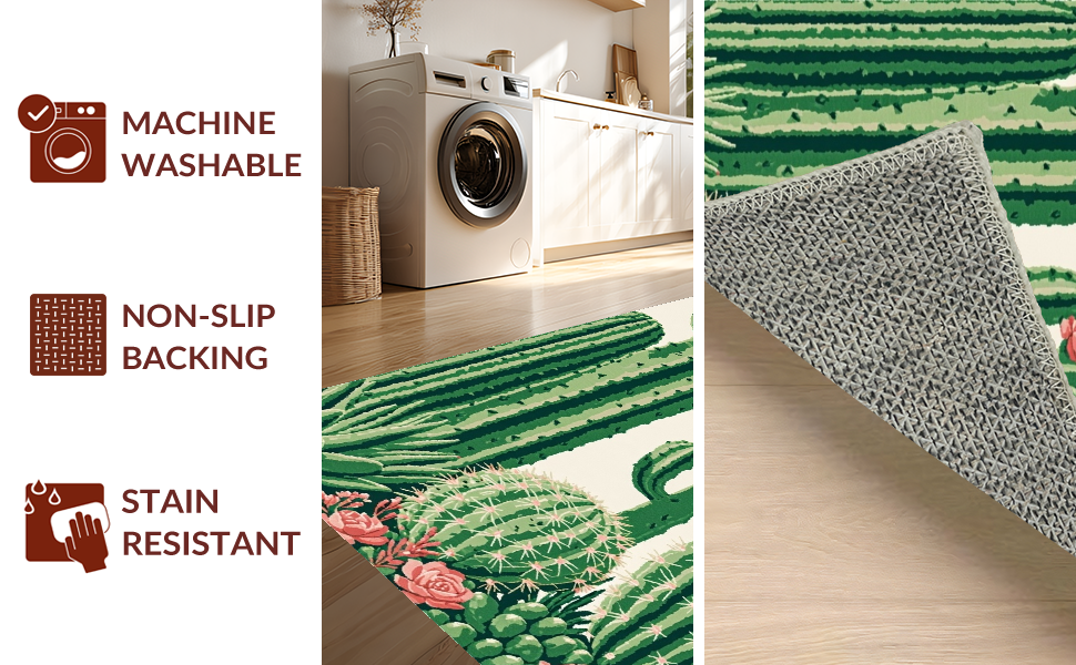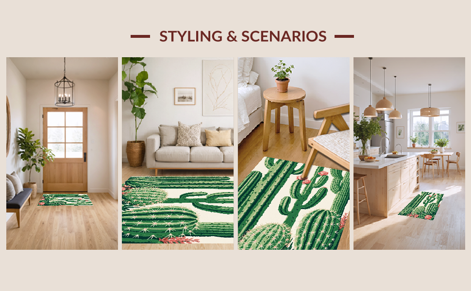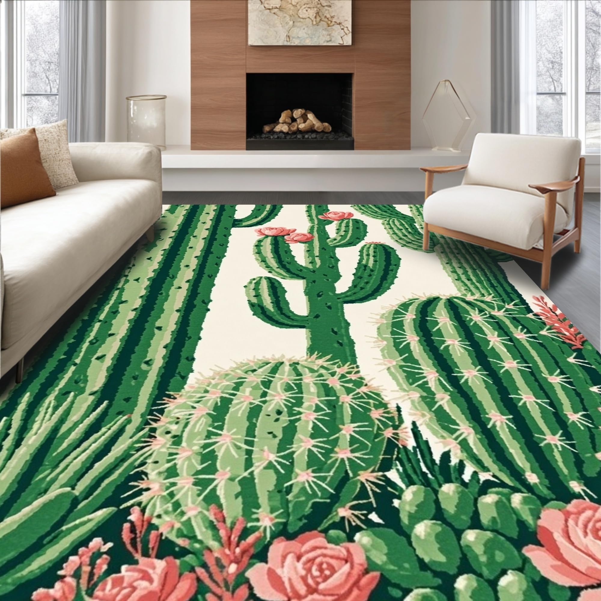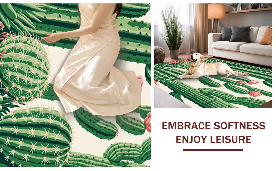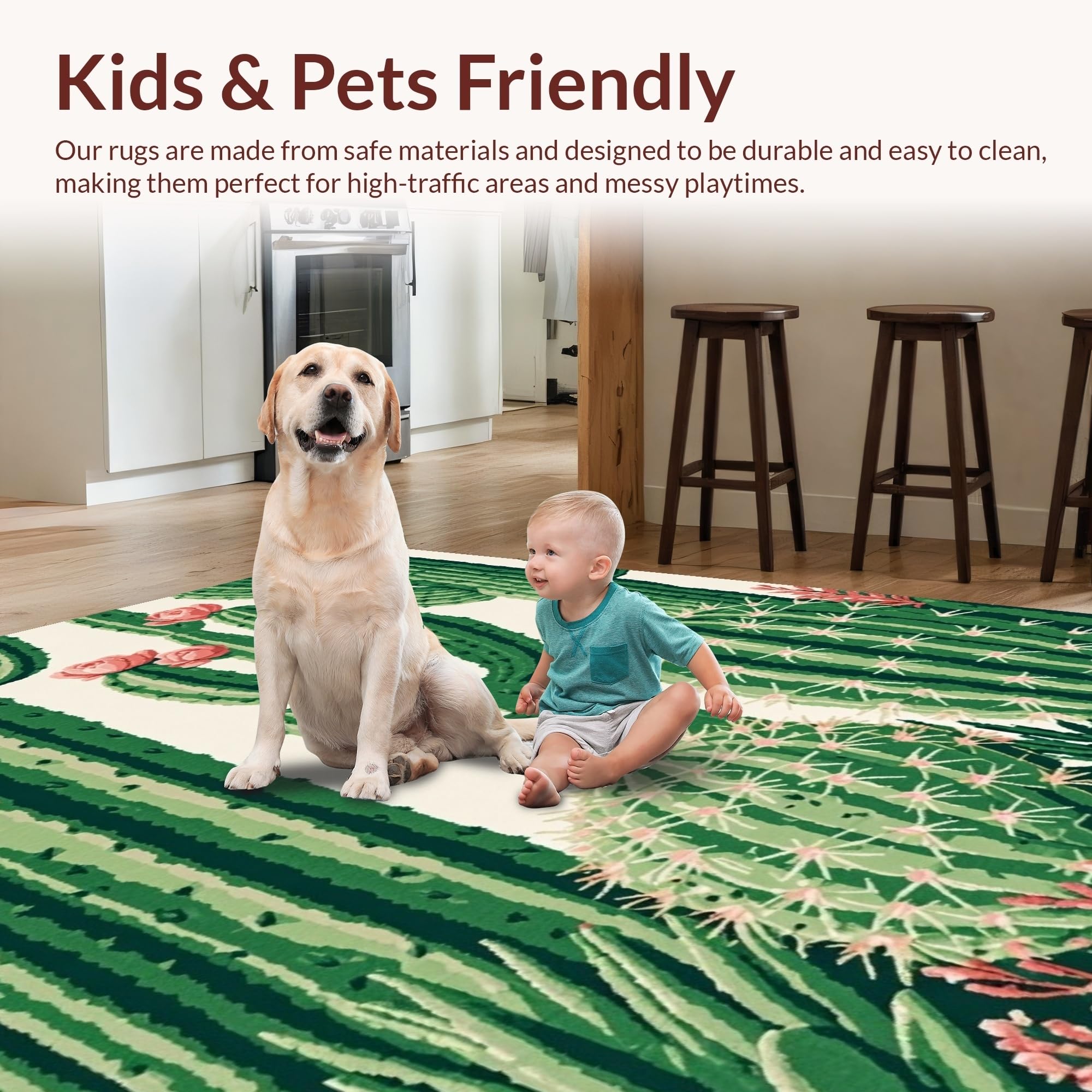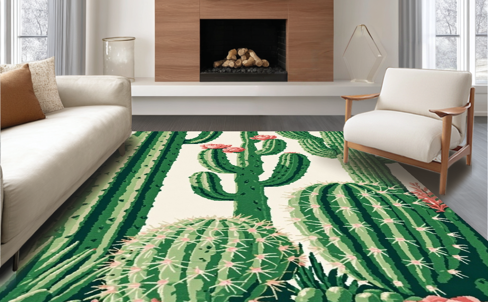 Ultra Soft Area Rug, Non Slip, Stain Resistant, Washable Area Rugs for Living Room, Bedroom, Contemporary Abstract Cactus Imagery(Green) Overview: