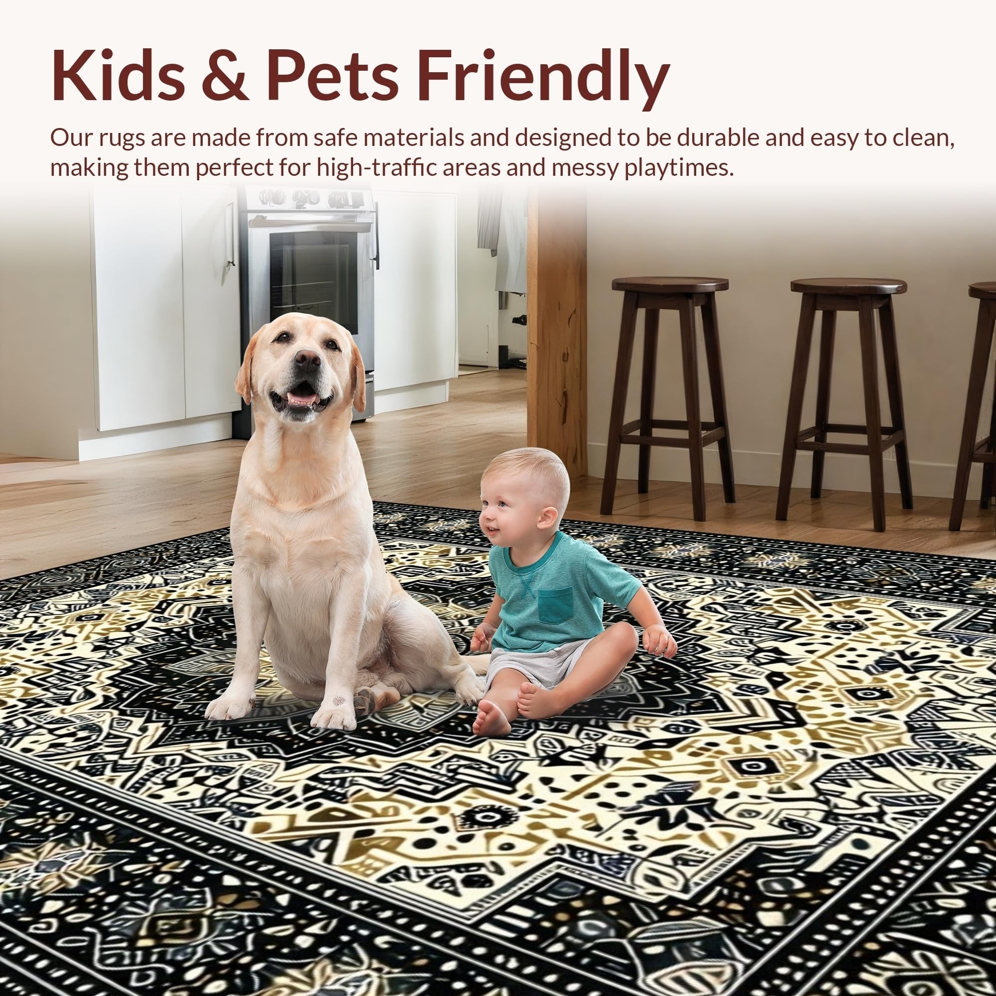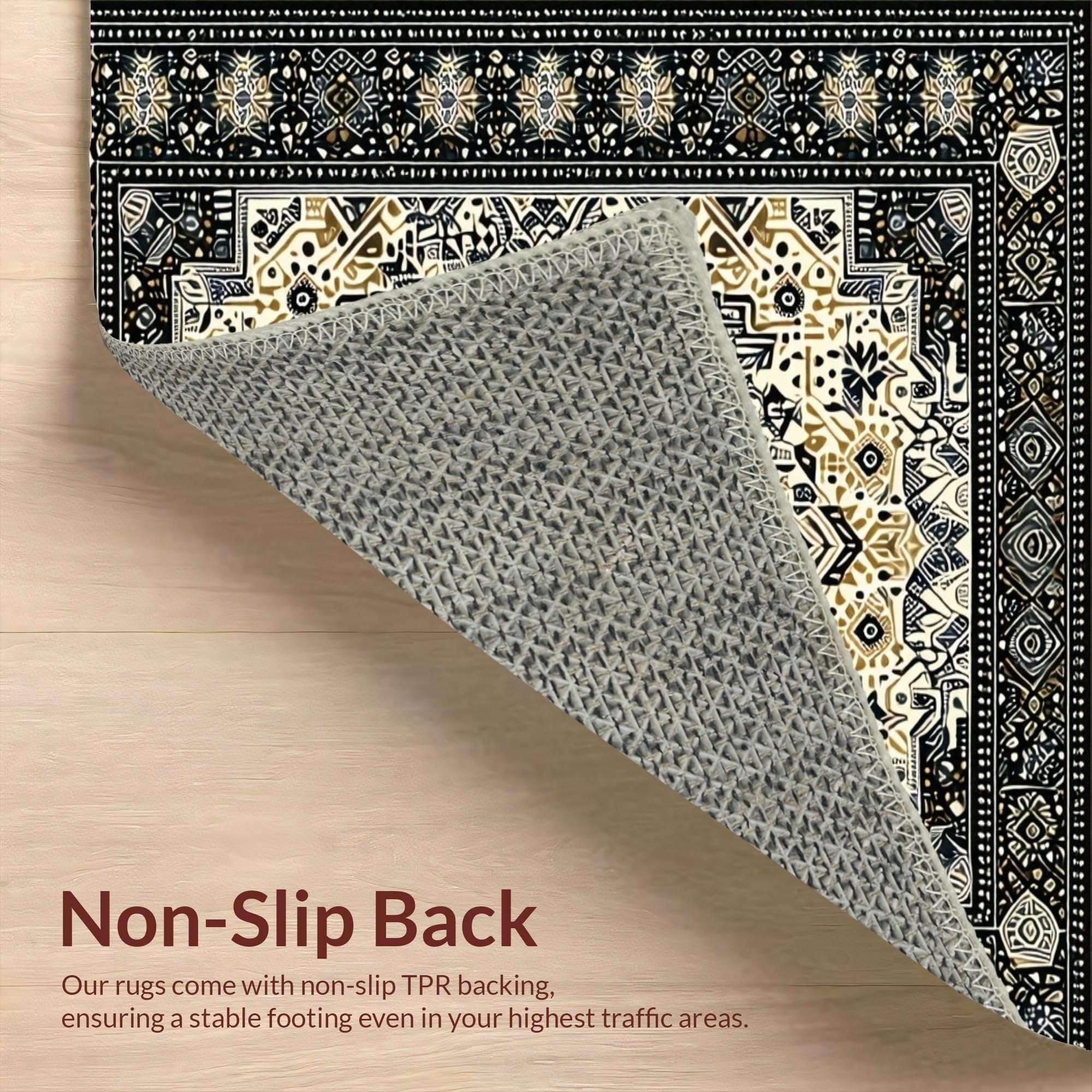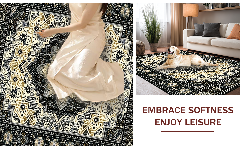 Ultra Soft Area Rug, Non Slip, Stain Resistant, Washable Area Rugs for Living Room, Bedroom, Contemporary Abstract Circular Art(Black) Overview: