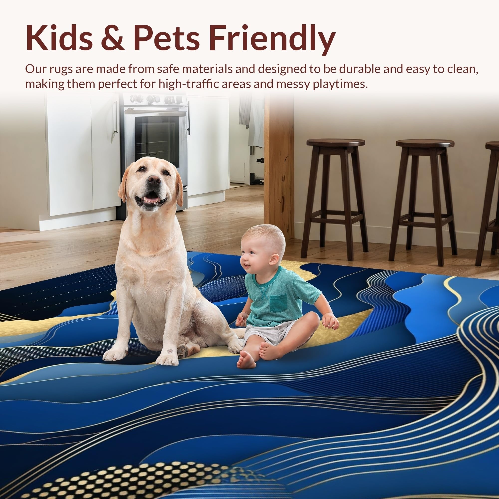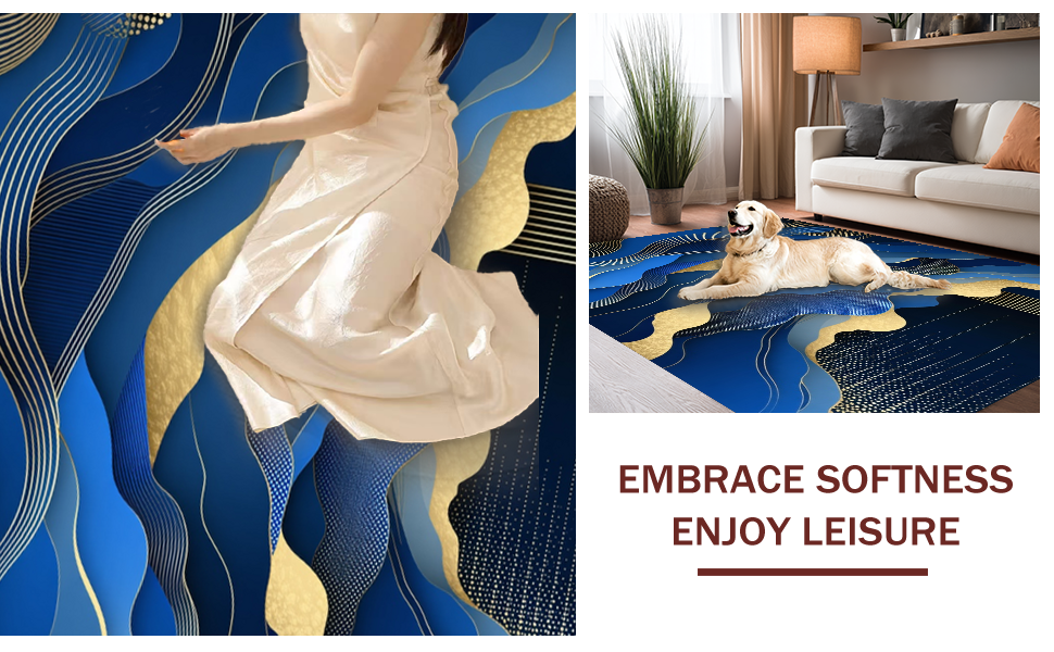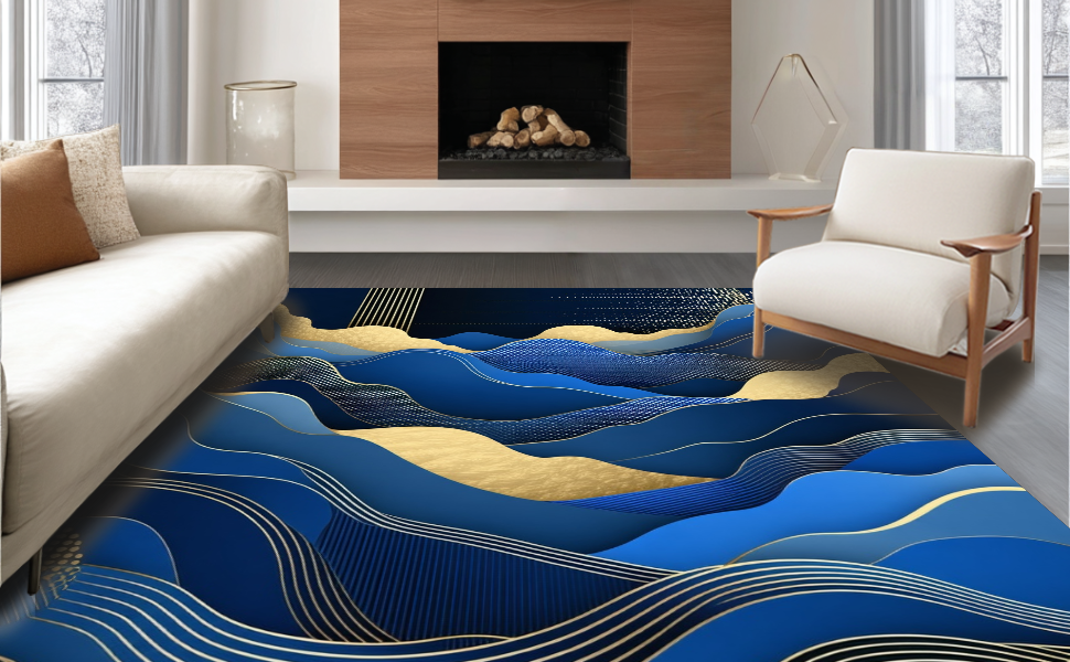 Ultra Soft Area Rug, Non Slip, Stain Resistant, Washable Area Rugs for Living Room, Bedroom, Contemporary Abstract Color Splash(Blue) Overview: