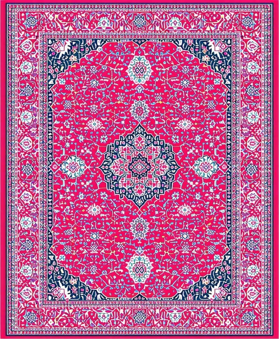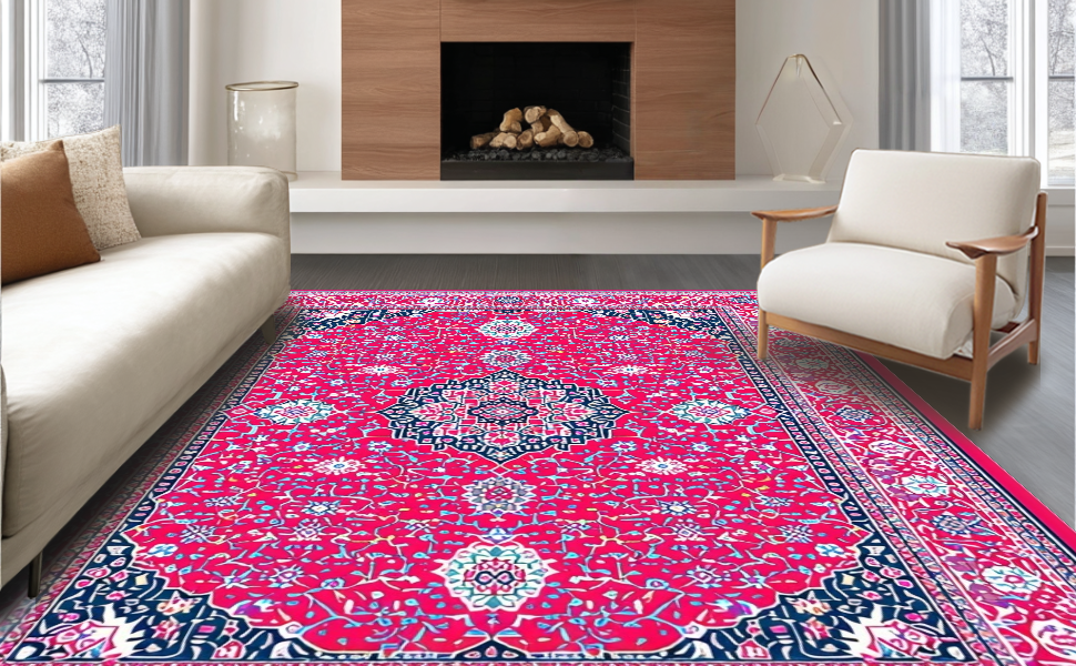 Ultra Soft Area Rug, Non Slip, Stain Resistant, Washable Area Rugs for Living Room, Bedroom, Contemporary Abstract Colorful Design(Red) Overview: