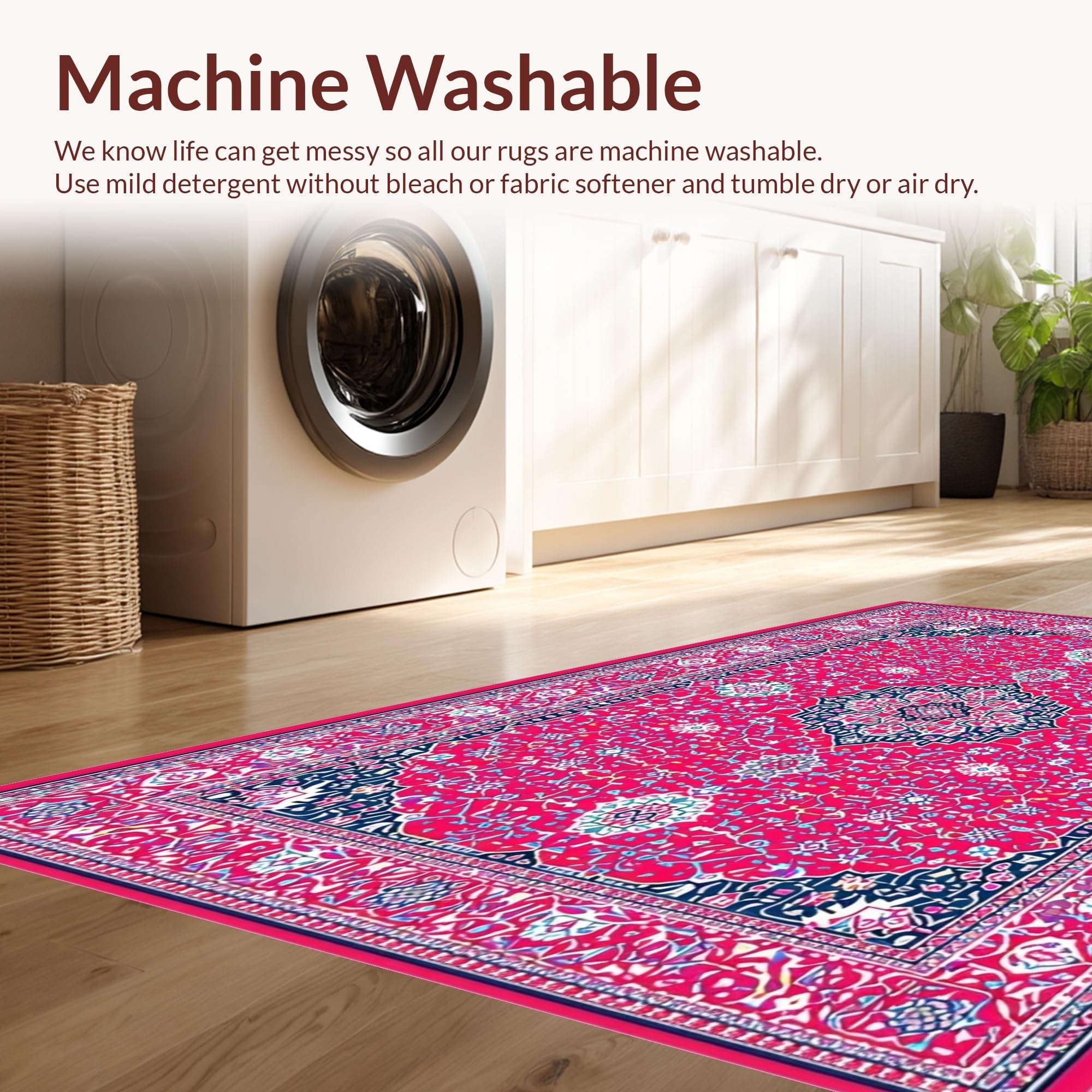 - Machine Washable: Our rugs can be easily thrown in the wash machine.