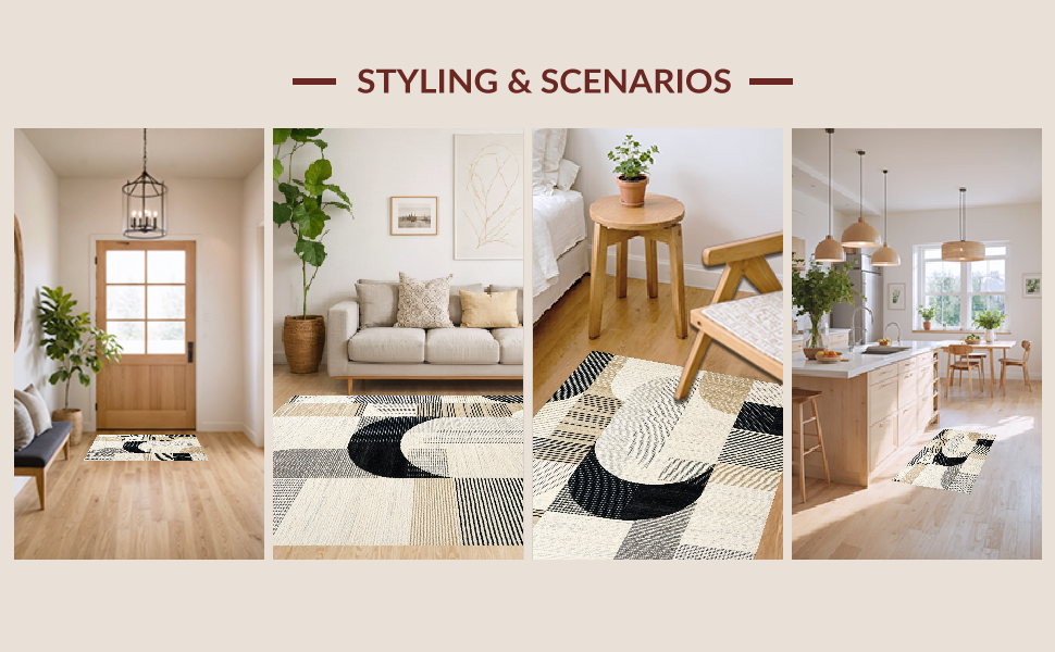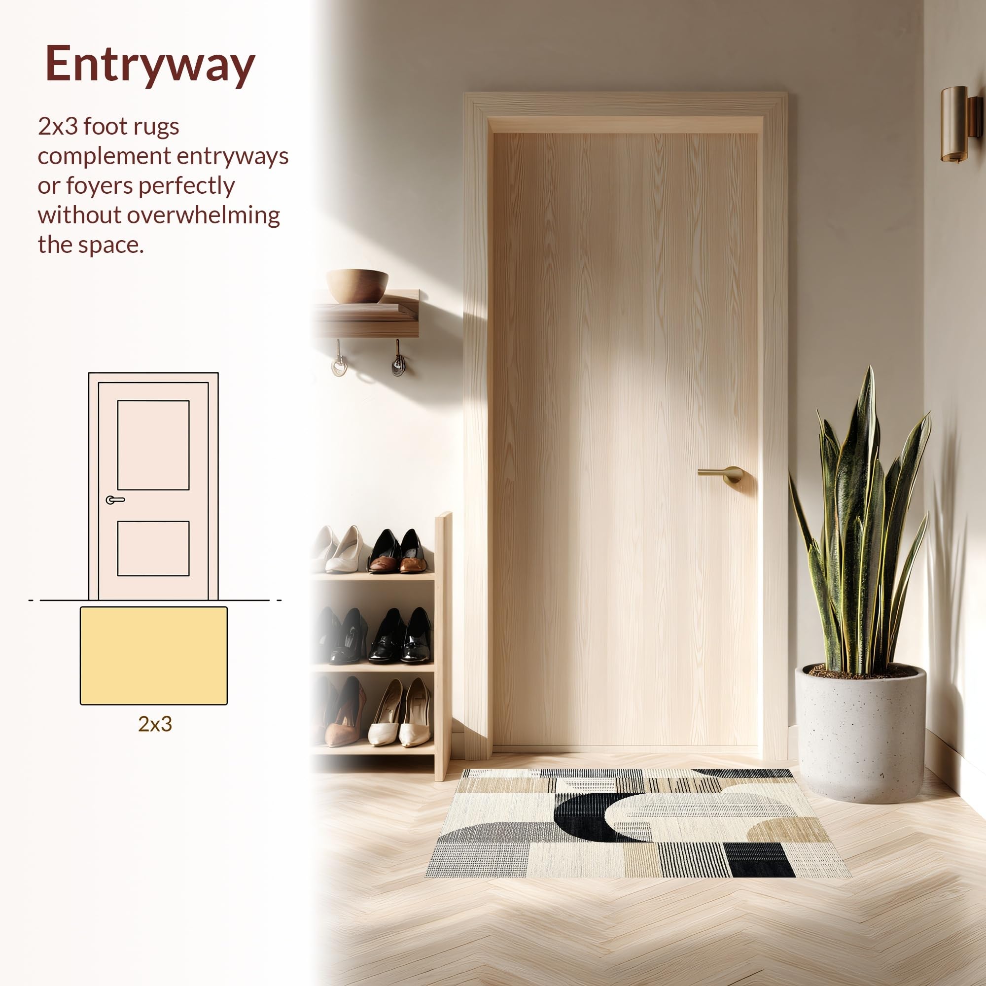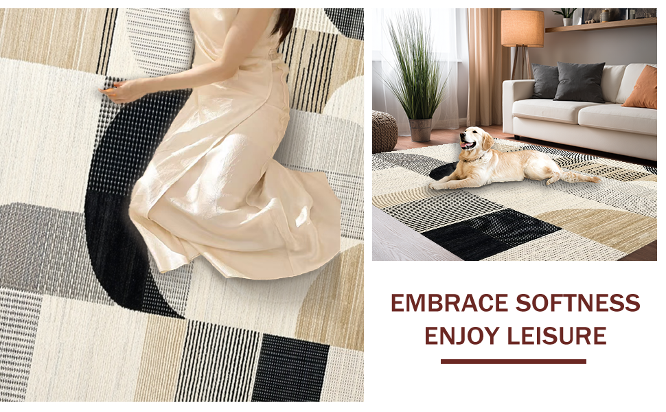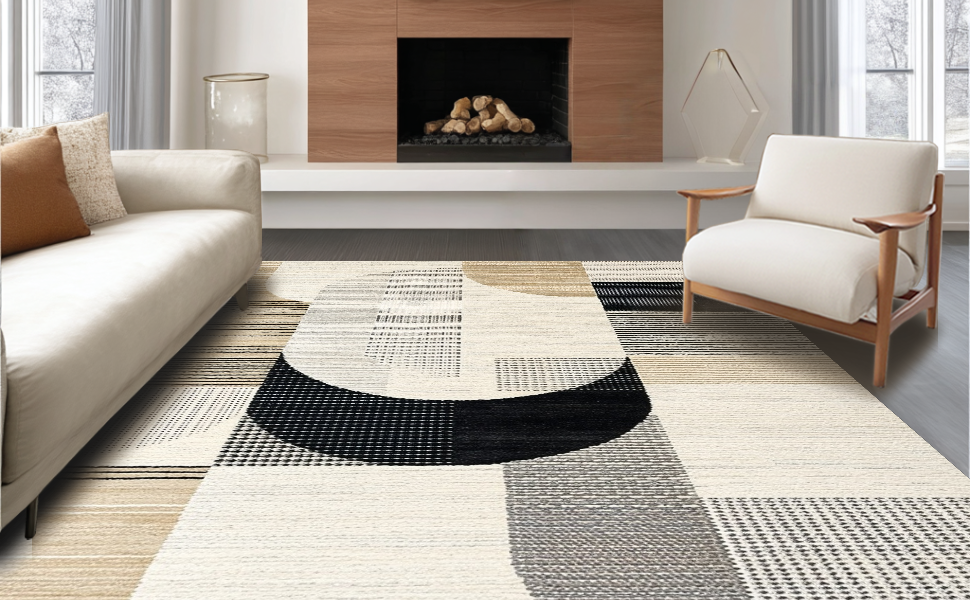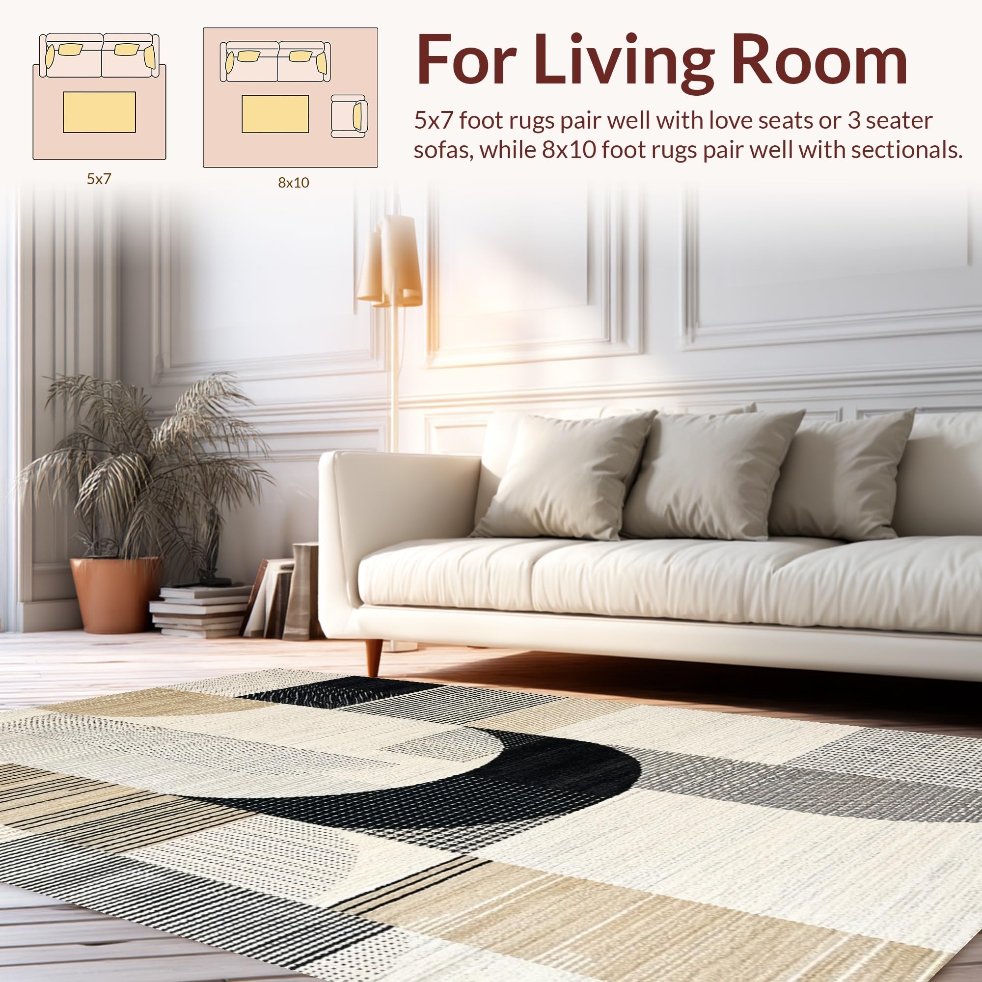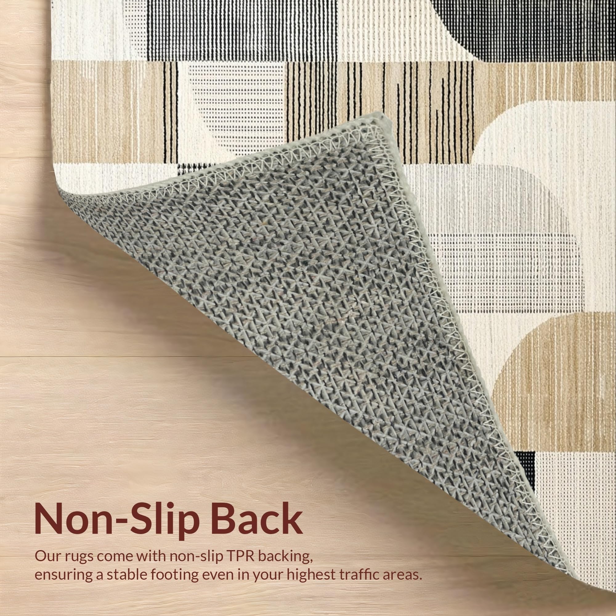 Ultra Soft Area Rug, Non Slip, Stain Resistant, Washable Area Rugs for Living Room, Bedroom, Contemporary Abstract Curvilinear Aesthetic(Beige) Overview: