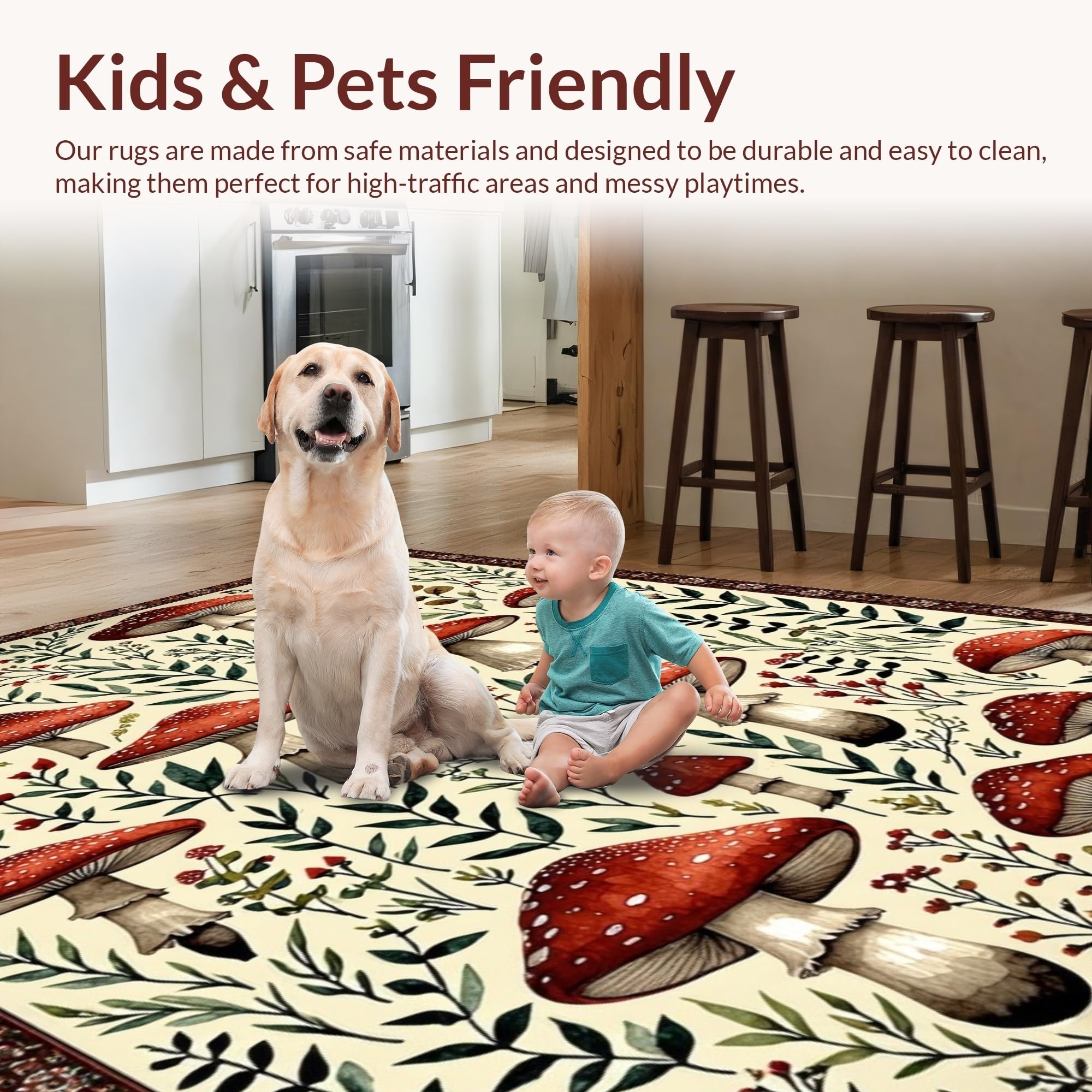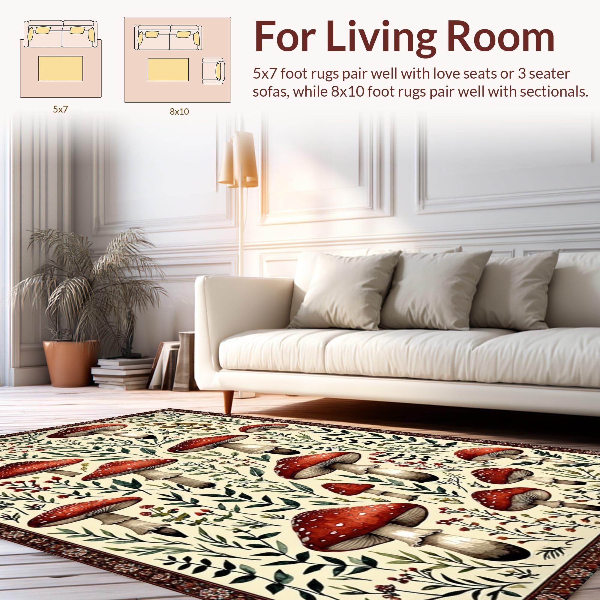 Ultra Soft Area Rug, Non Slip, Stain Resistant, Washable Area Rugs for Living Room, Bedroom, Contemporary Abstract Flora Theme(Beige) Overview:
