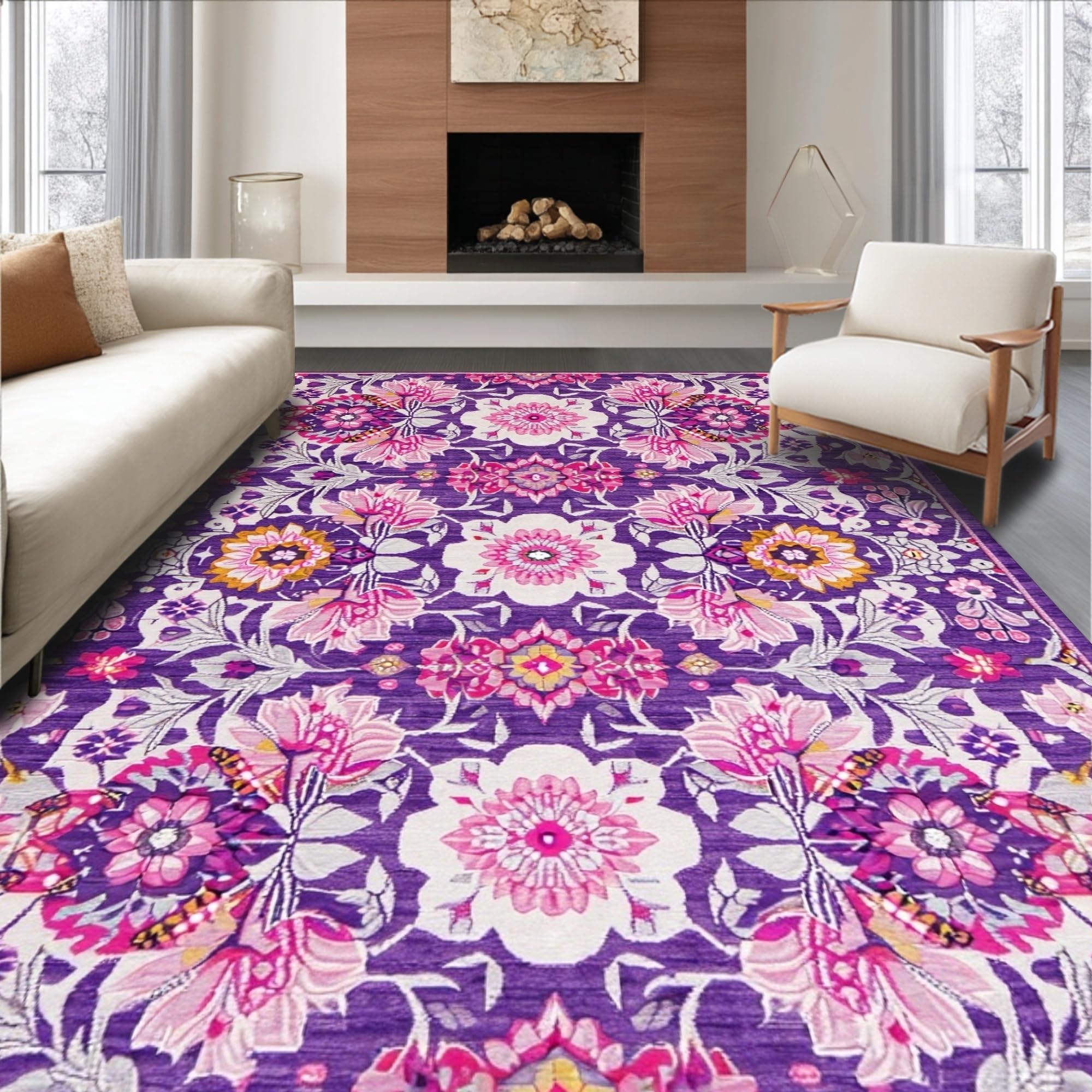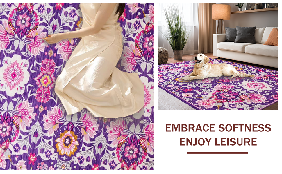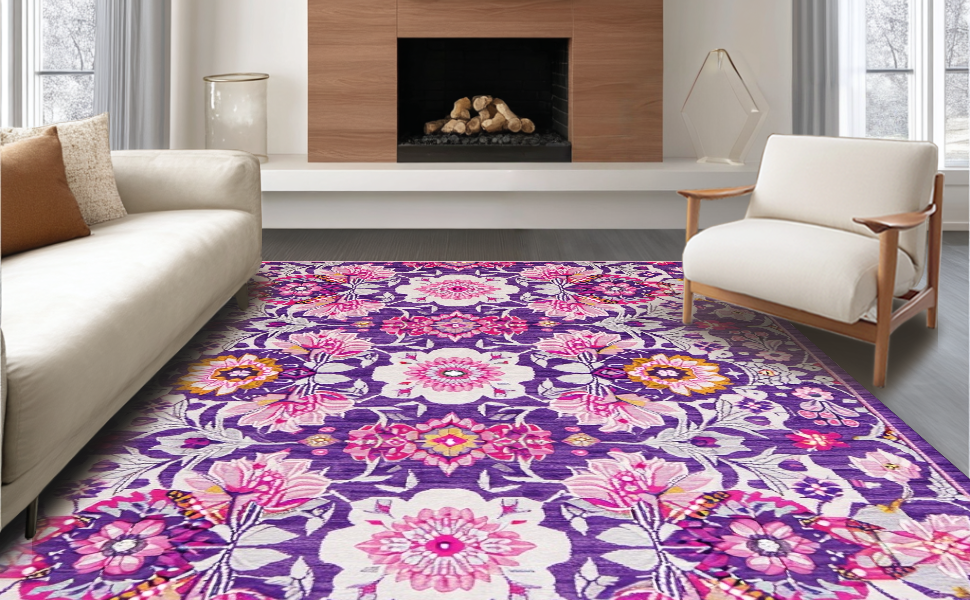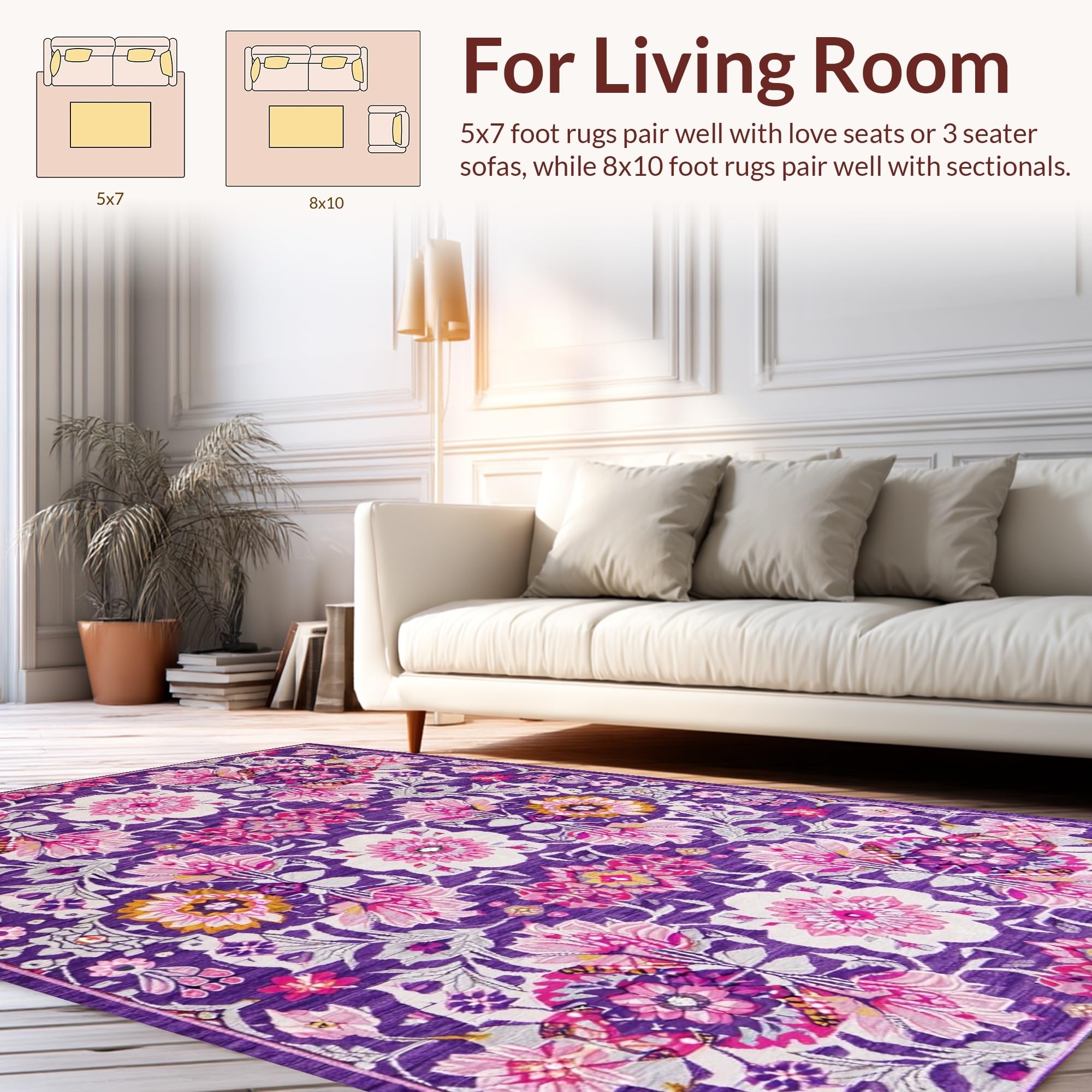 Ultra Soft Area Rug, Non Slip, Stain Resistant, Washable Area Rugs for Living Room, Bedroom, Contemporary Abstract Floral Composition(Purple) Overview: