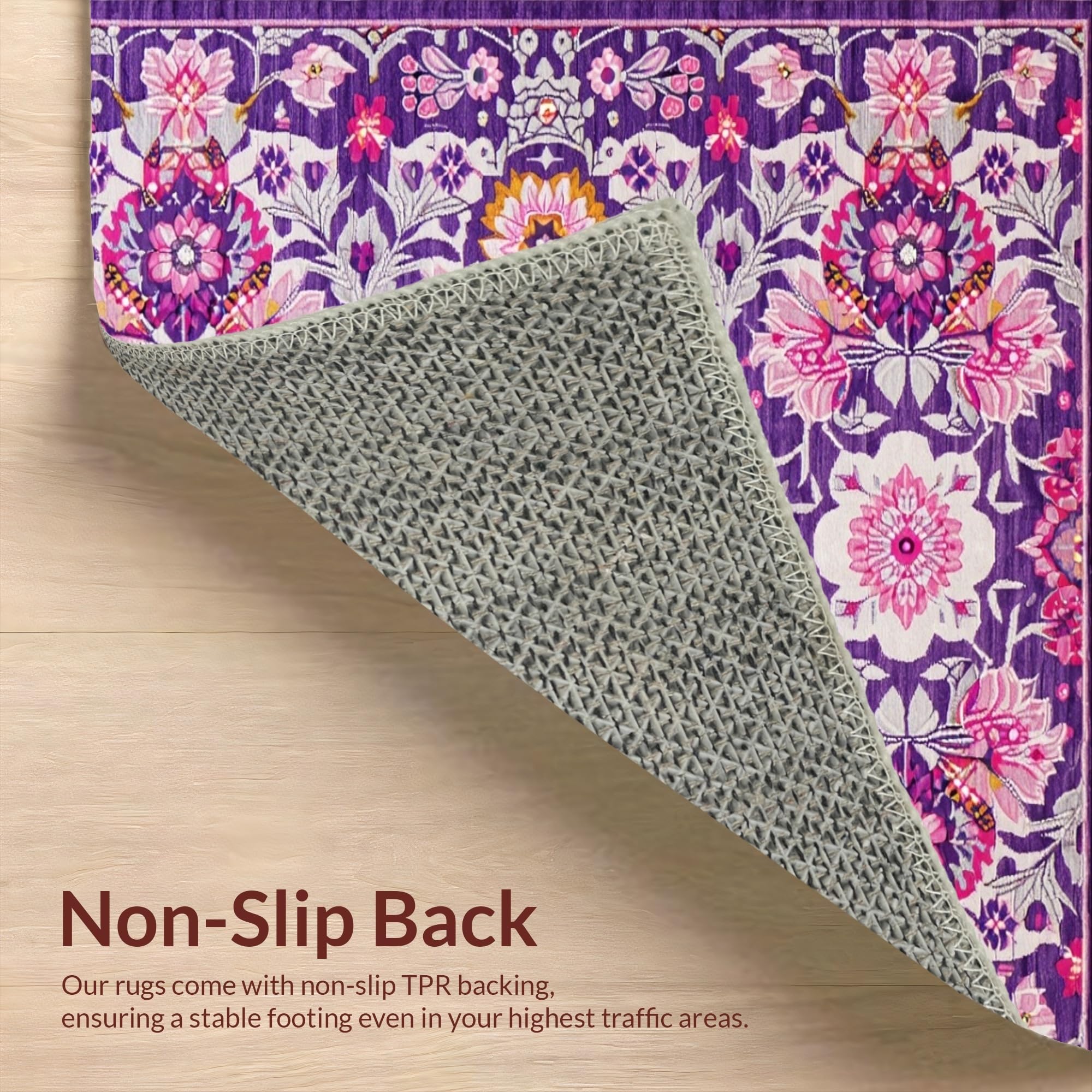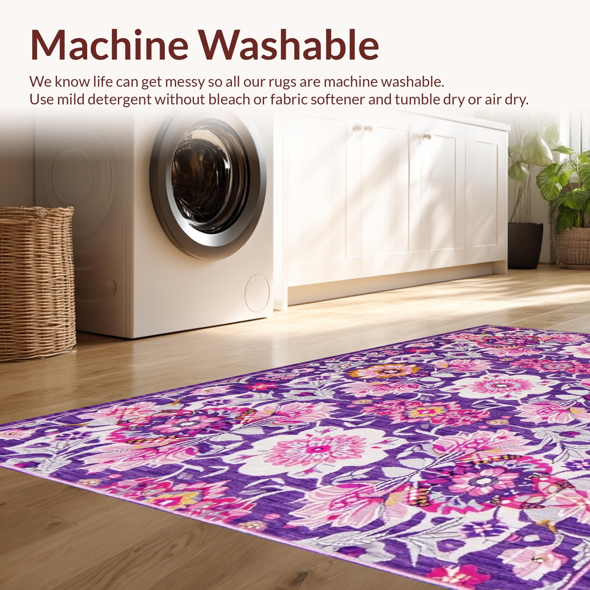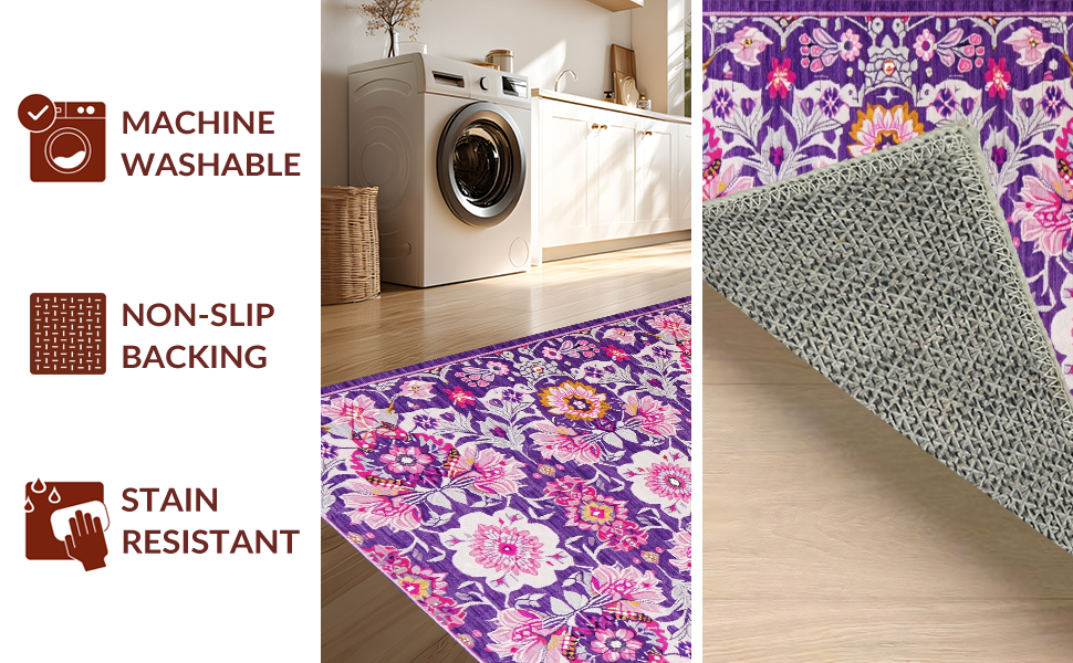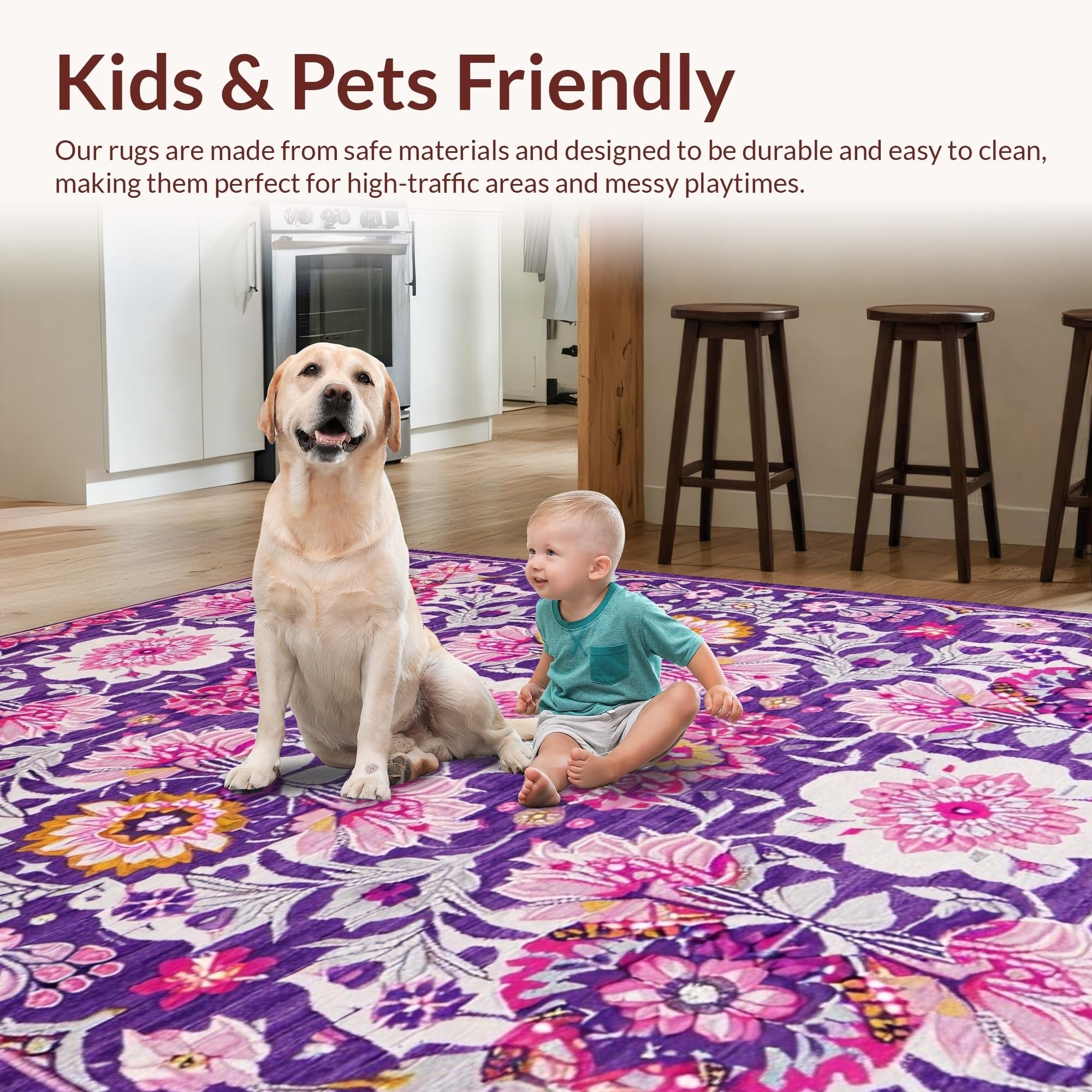 Ultra Soft Area Rug, Non Slip, Stain Resistant, Washable Area Rugs for Living Room, Bedroom, Contemporary Abstract Floral Composition(Purple) Overview: