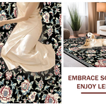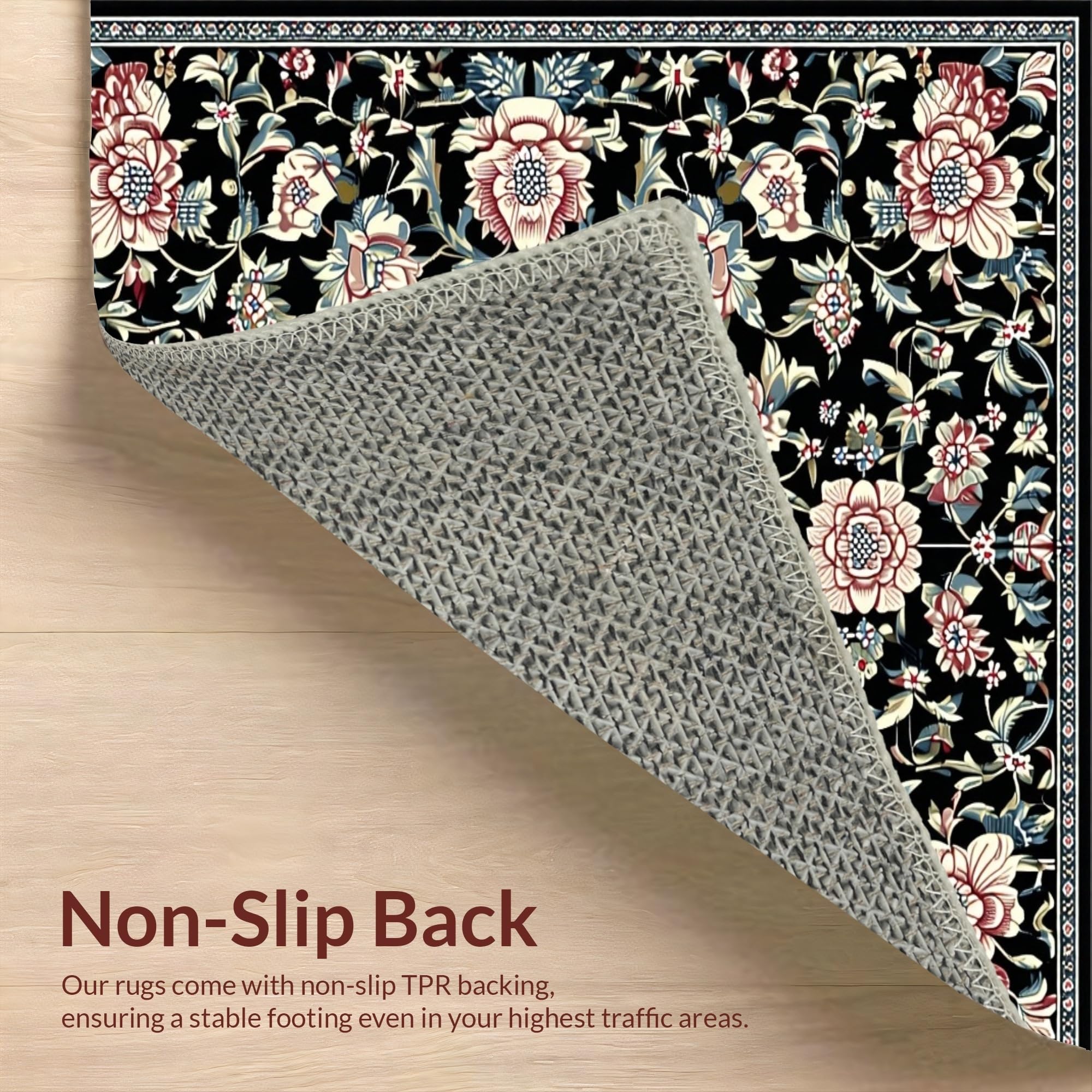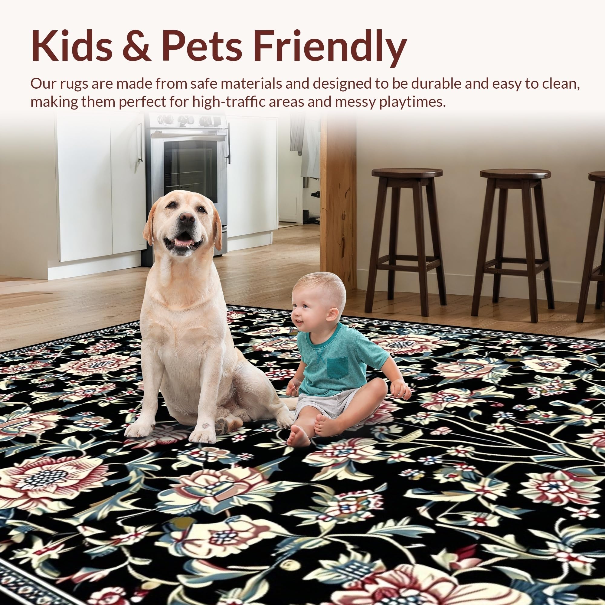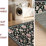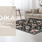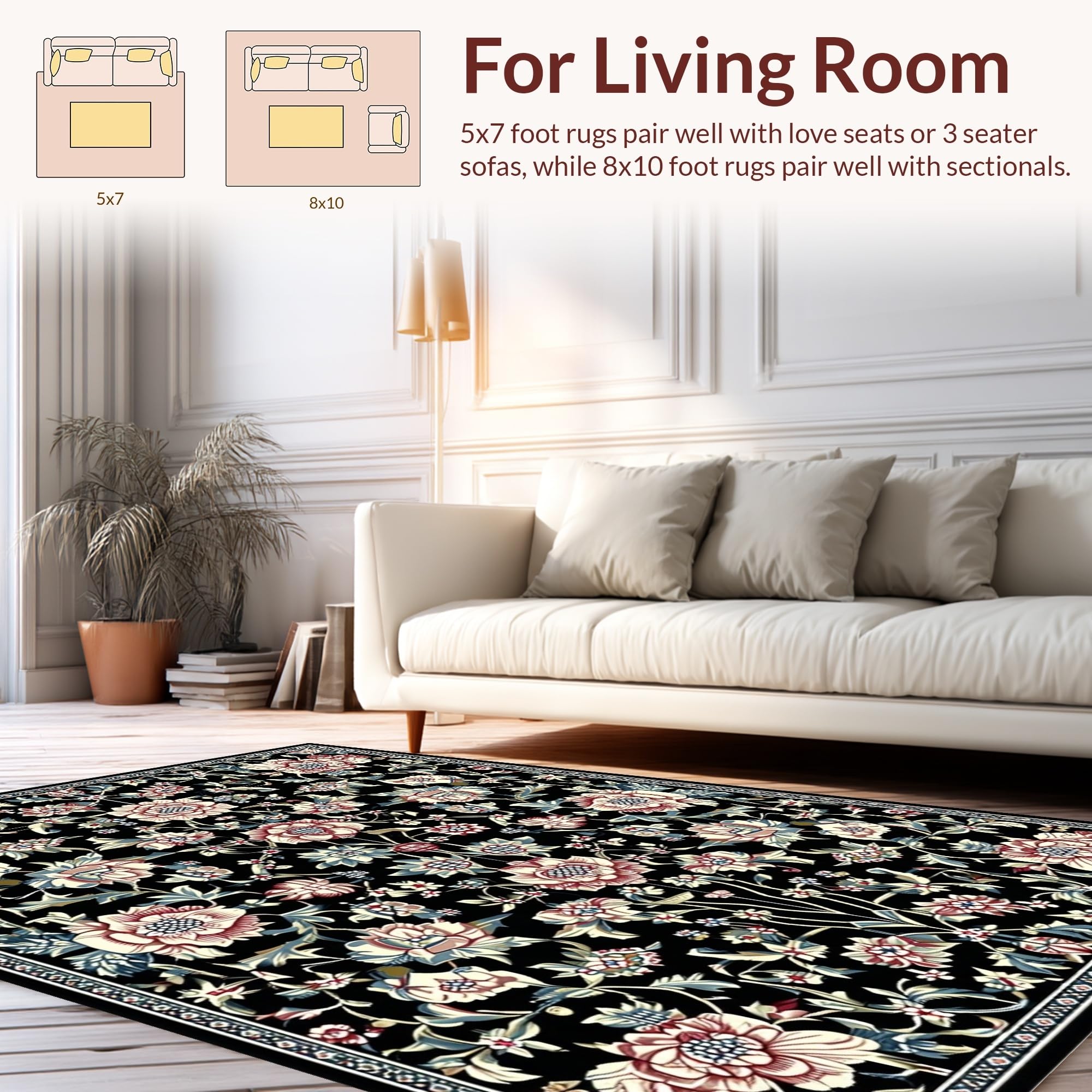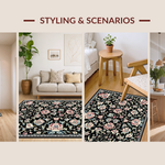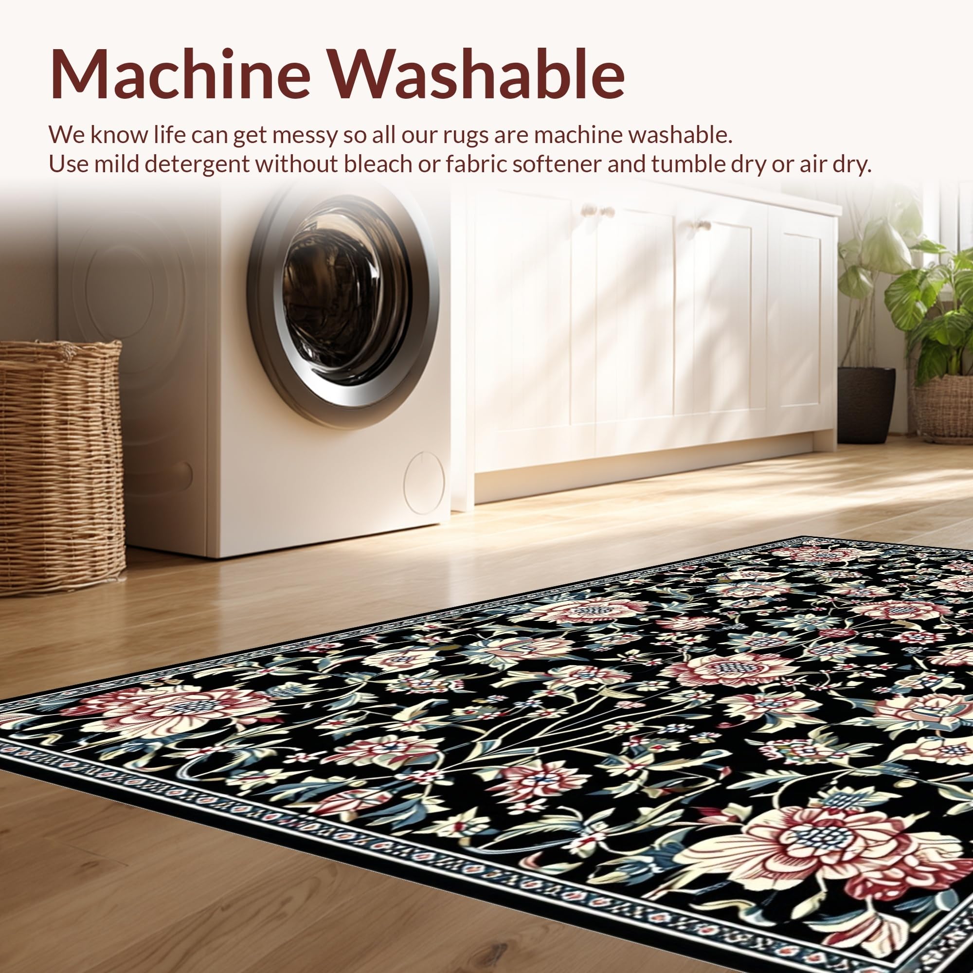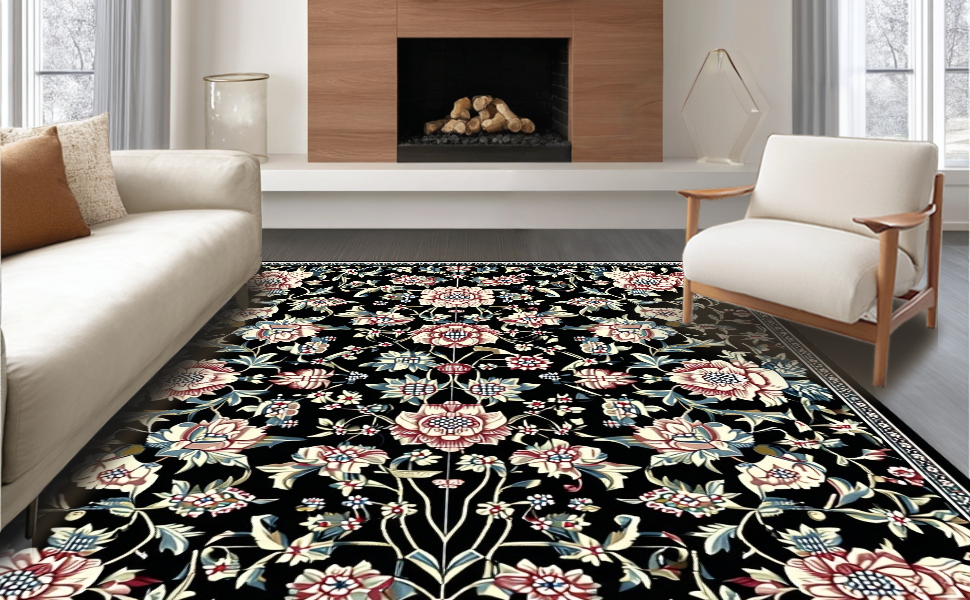 Ultra Soft Area Rug, Non Slip, Stain Resistant, Washable Area Rugs for Living Room, Bedroom, Contemporary Abstract Floral Design(Black) Overview: